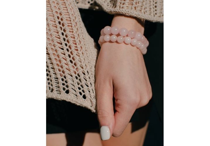браслет з натурального матеріалу на гумовій основі: (каміння: кварц), натуральні річкові перлини
