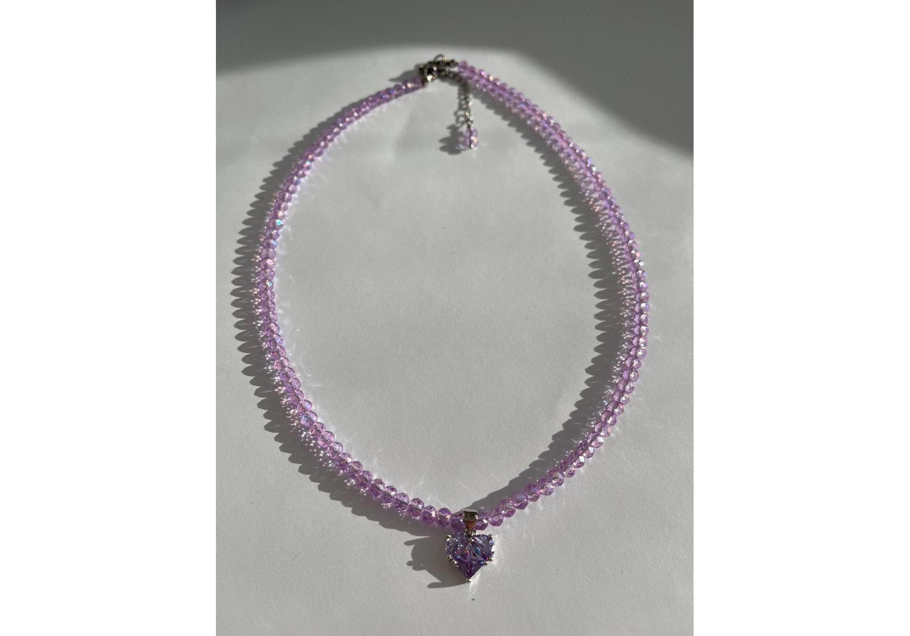 Колье из фиолетового ювелирного стекла в серебряном цвете с подвеской сердце Fayna jewelry