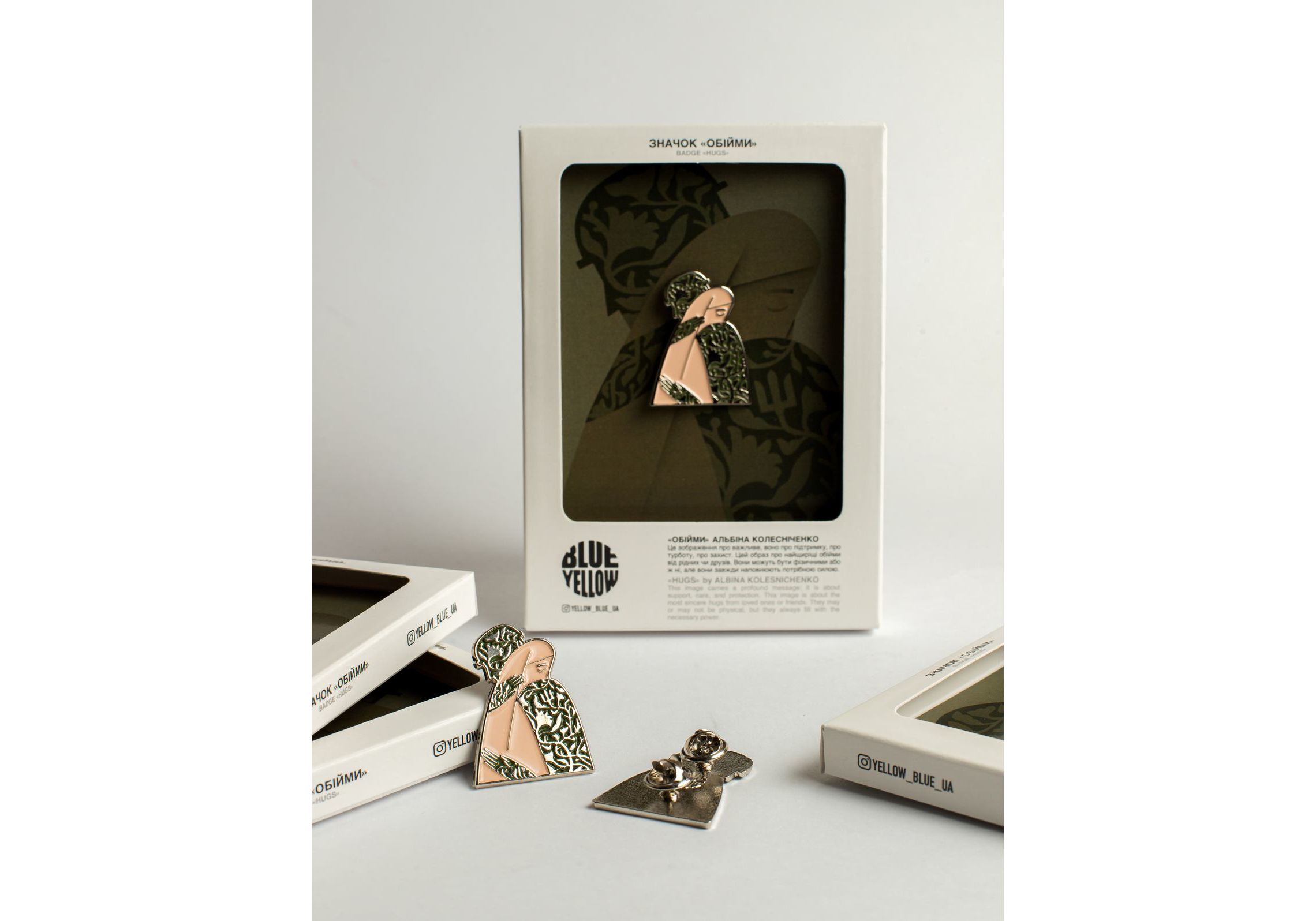 Значок за мотивами картини «ОБІЙМИ» АЛЬБІНИ КОЛЕСНІЧЕНКО Це зображення про важливе, воно про підтримку, про турботу, про захист. Цей образ про найщиріщі обійми від рідних чи друзів. Вони можуть бути фізичними або ж ні, але вони завжди наповнюють потрібною силою. Матеріал - латунь з елементами кольорової глазурі та кріпленням "метелик". Розмір виробу: 37mm