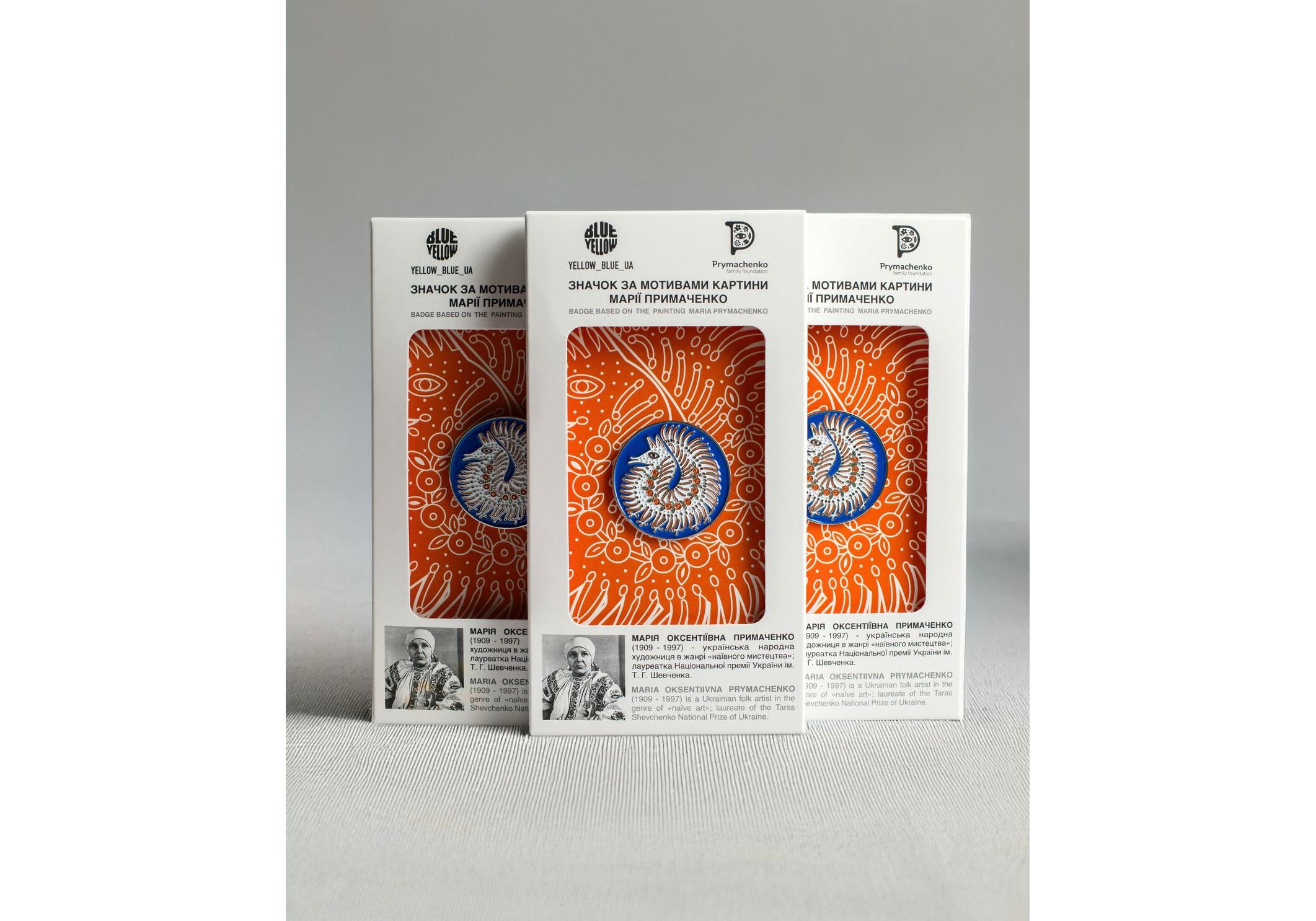 Лімітований металевий значок за мотивами розпису декоративної тарілки «ЗВІР-ПТАХ», створений в колаборації з фондом Марії Примаченко, відомої української художниці, пропонує унікальну можливість зануритися в її неповторний світ творчості. Значок вражає своєю естетикою та майстерністю виконання, відтворюючи яскраві мотиви природи та тварин, які стали невід'ємною частиною творчої спадщини Примаченко. Це витончений аксесуар, що надає можливість нести на собі шедевр однієї з найвизначніших художниць України. Матеріал - латунь з елементами кольорової глазурі та кріпленням "метелик". Розмір виробу: 37mm
