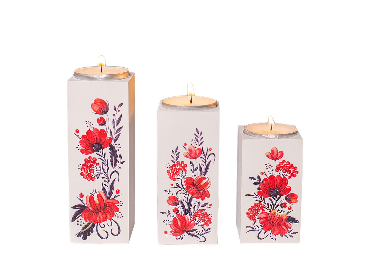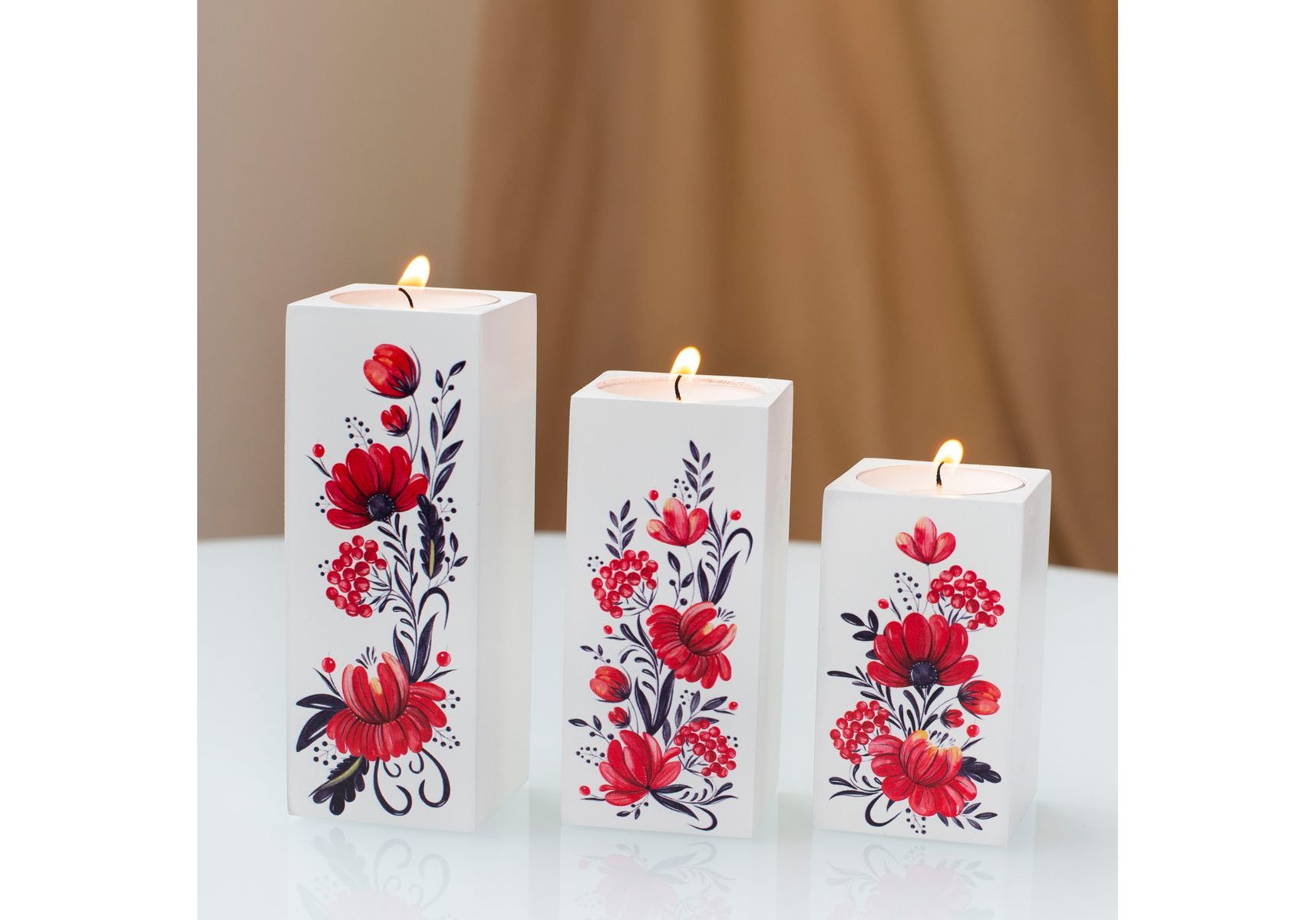Подсвечники из натурального дерева, набор 3 шт."Квіти" (білий колір) Wood Posters