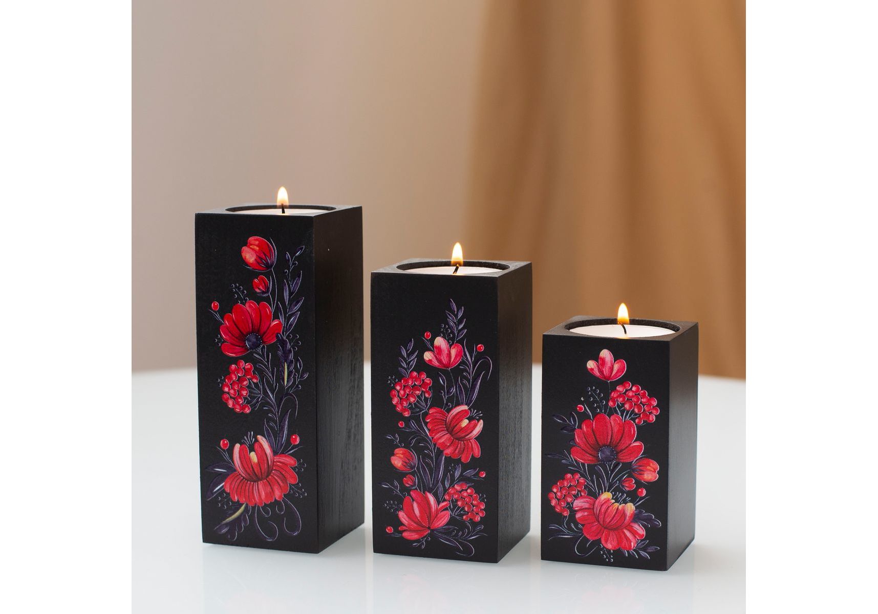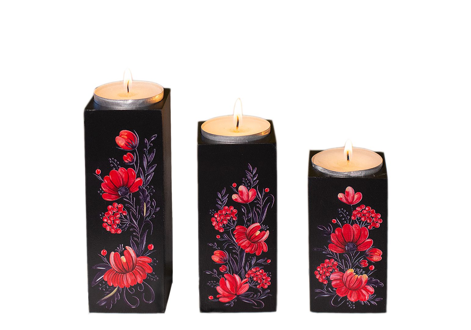 Подсвечники из натурального дерева, набор 3 шт. "Квіти" (чорний колір) Wood Posters
