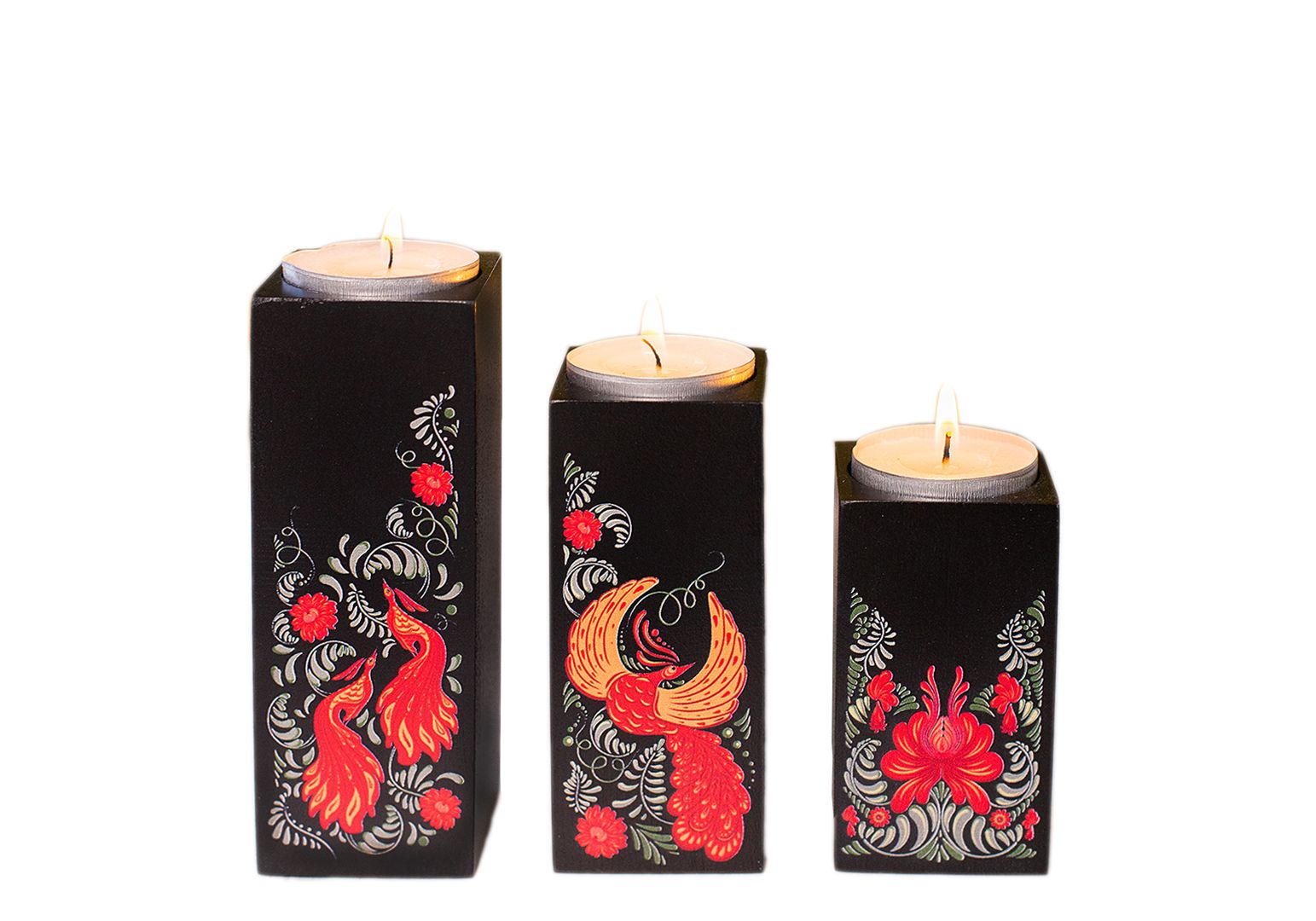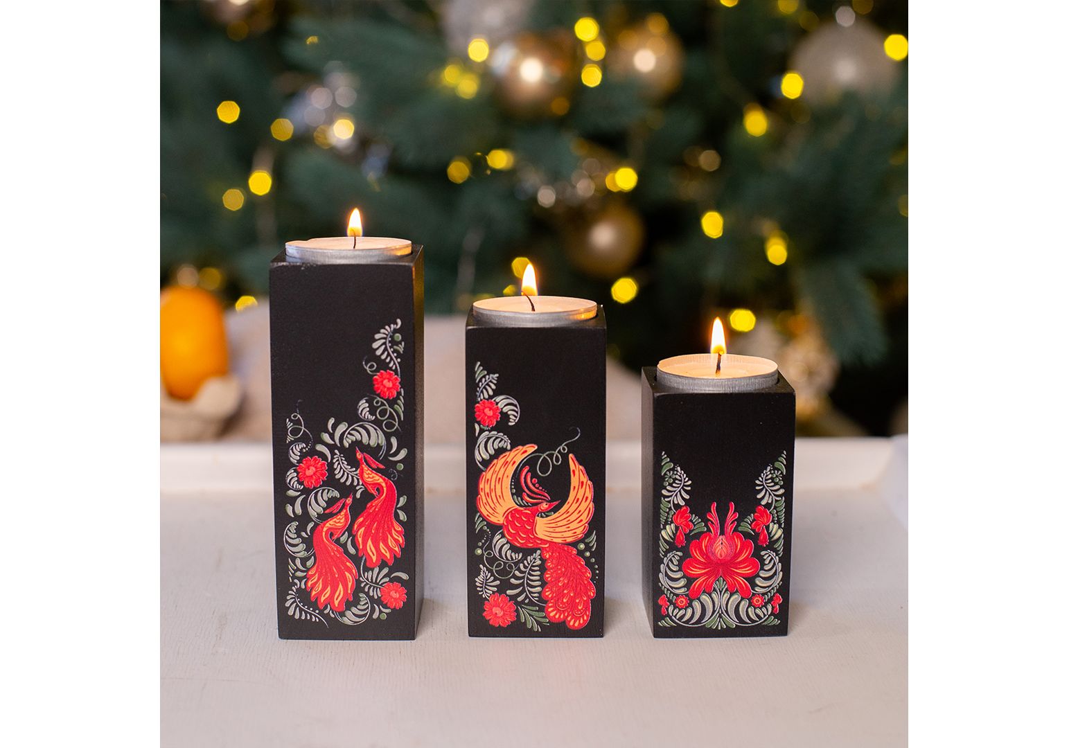 Подсвечники из натурального дерева, набoр 3 шт. "Птахи" (чорний колір) Wood Posters