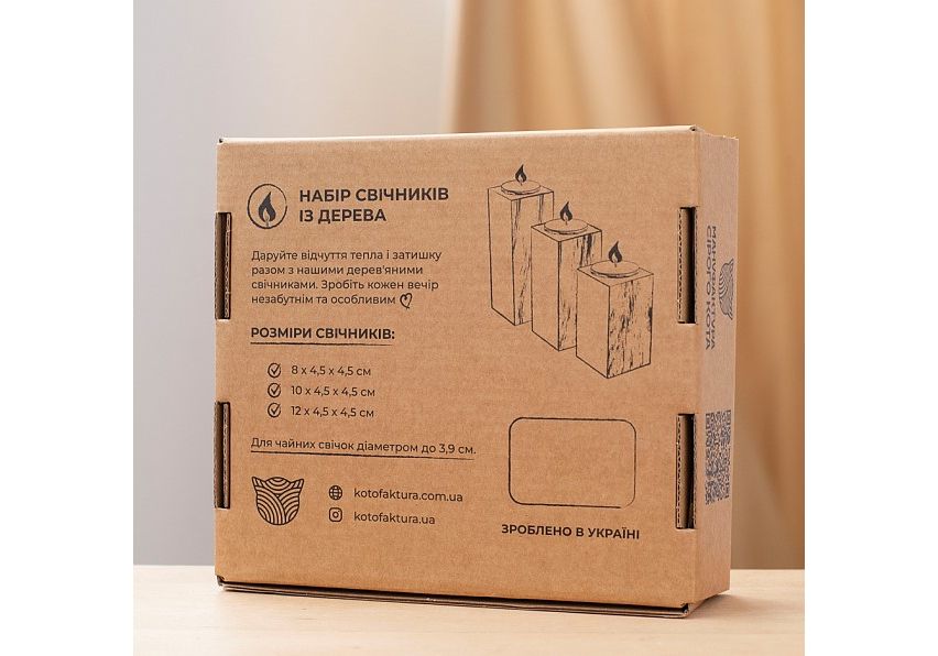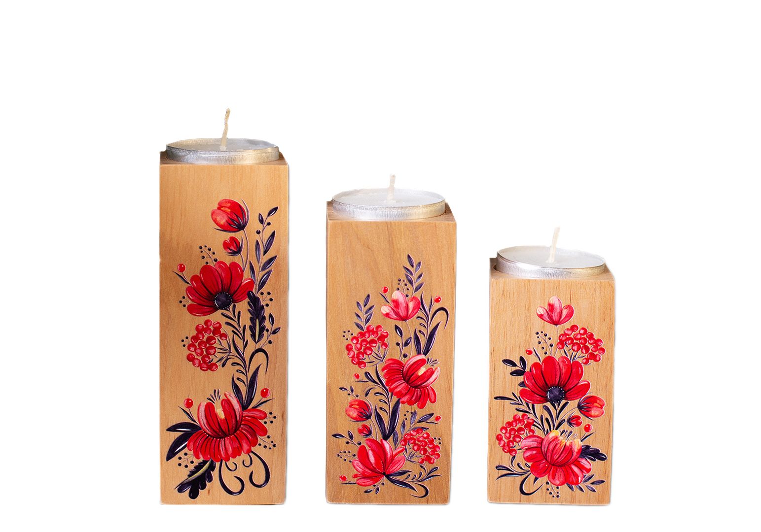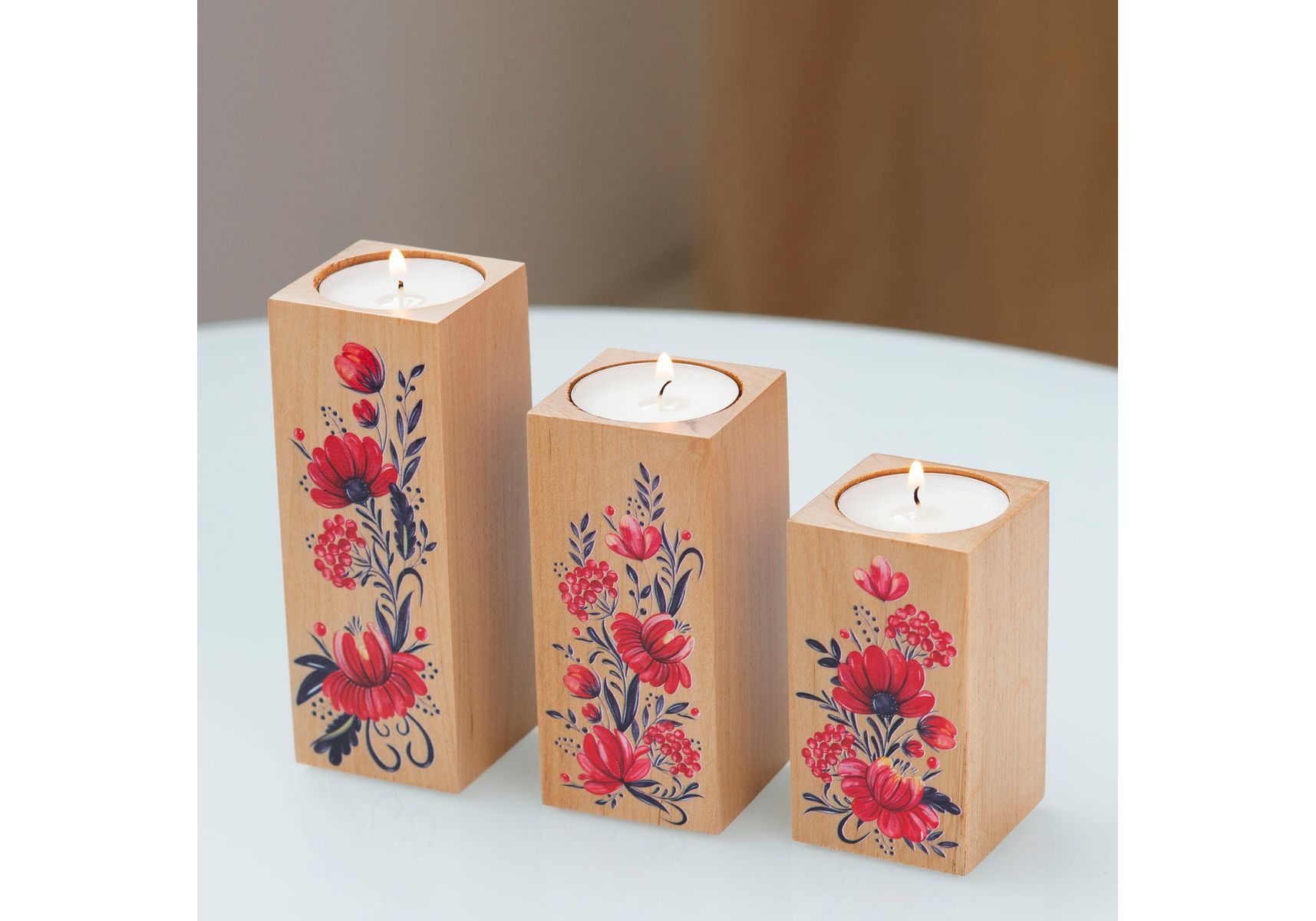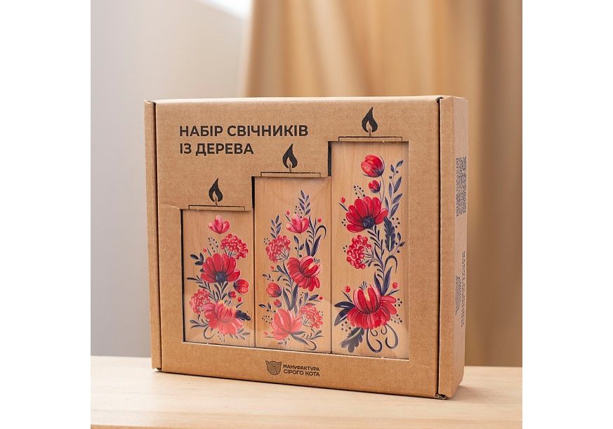 Пподсвечники из натурального дерева, набoр 3 шт. "Квіти" (натуральний колір) Wood Posters