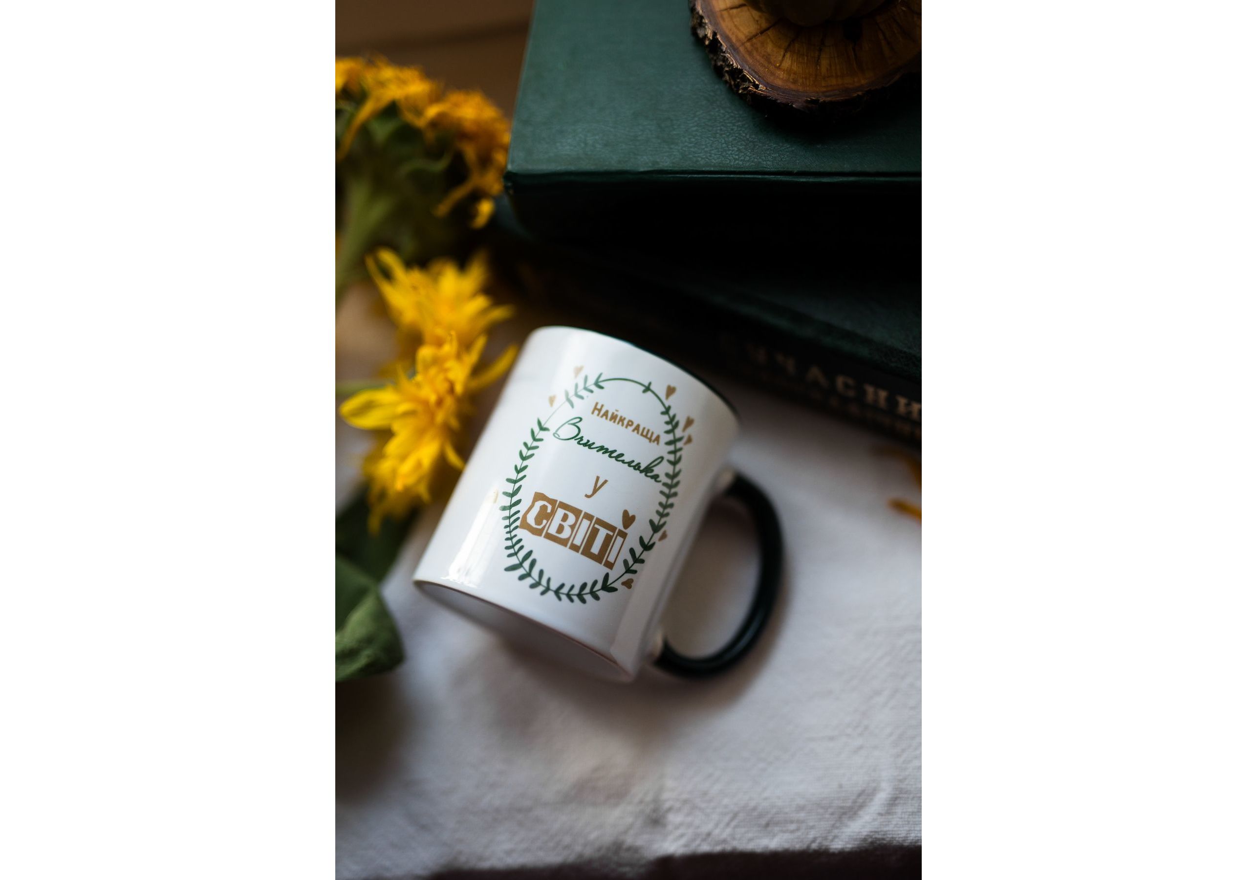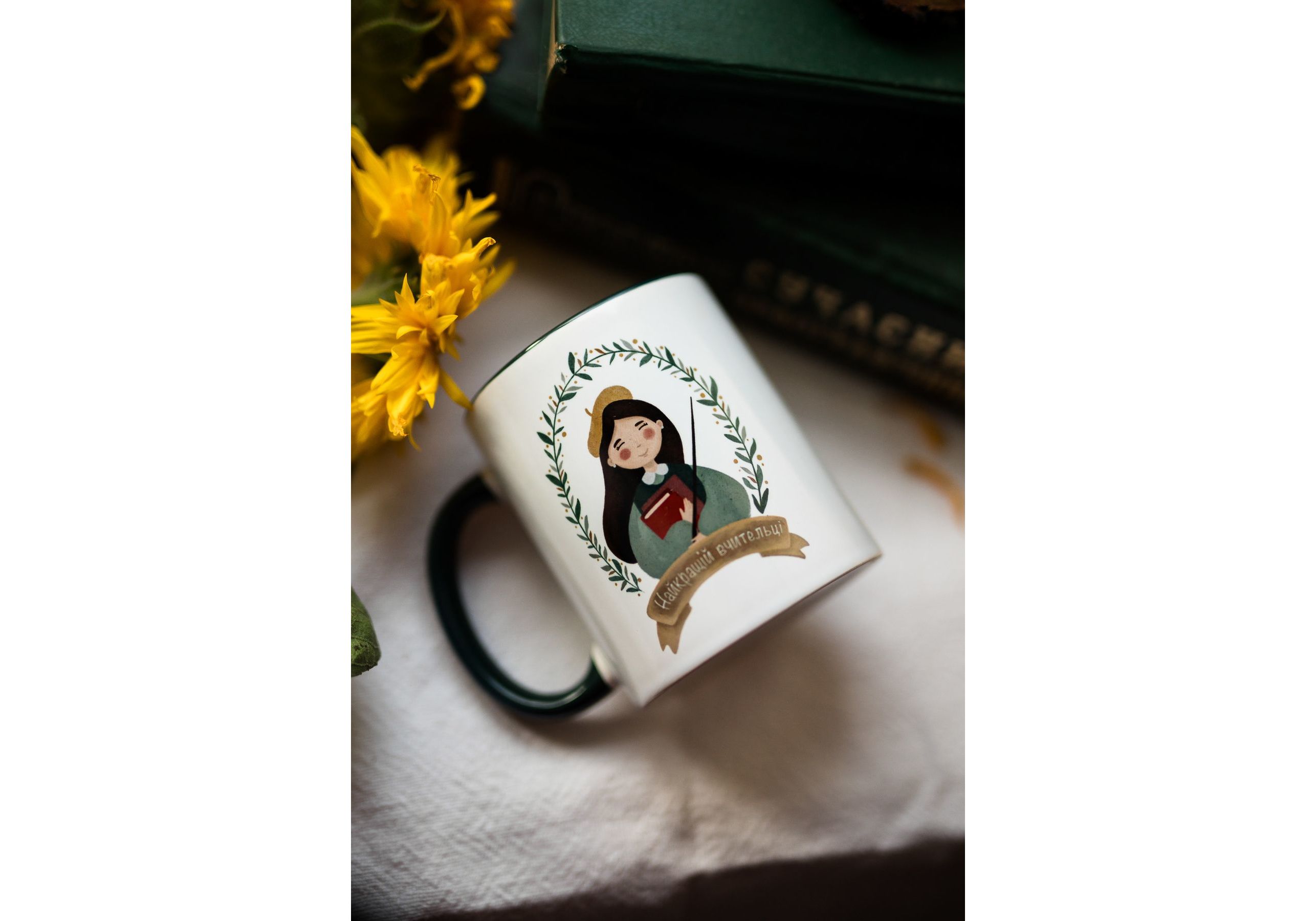 Керамичная чашка "Найкраща вчителька" зеленая Stella Sun Studio
