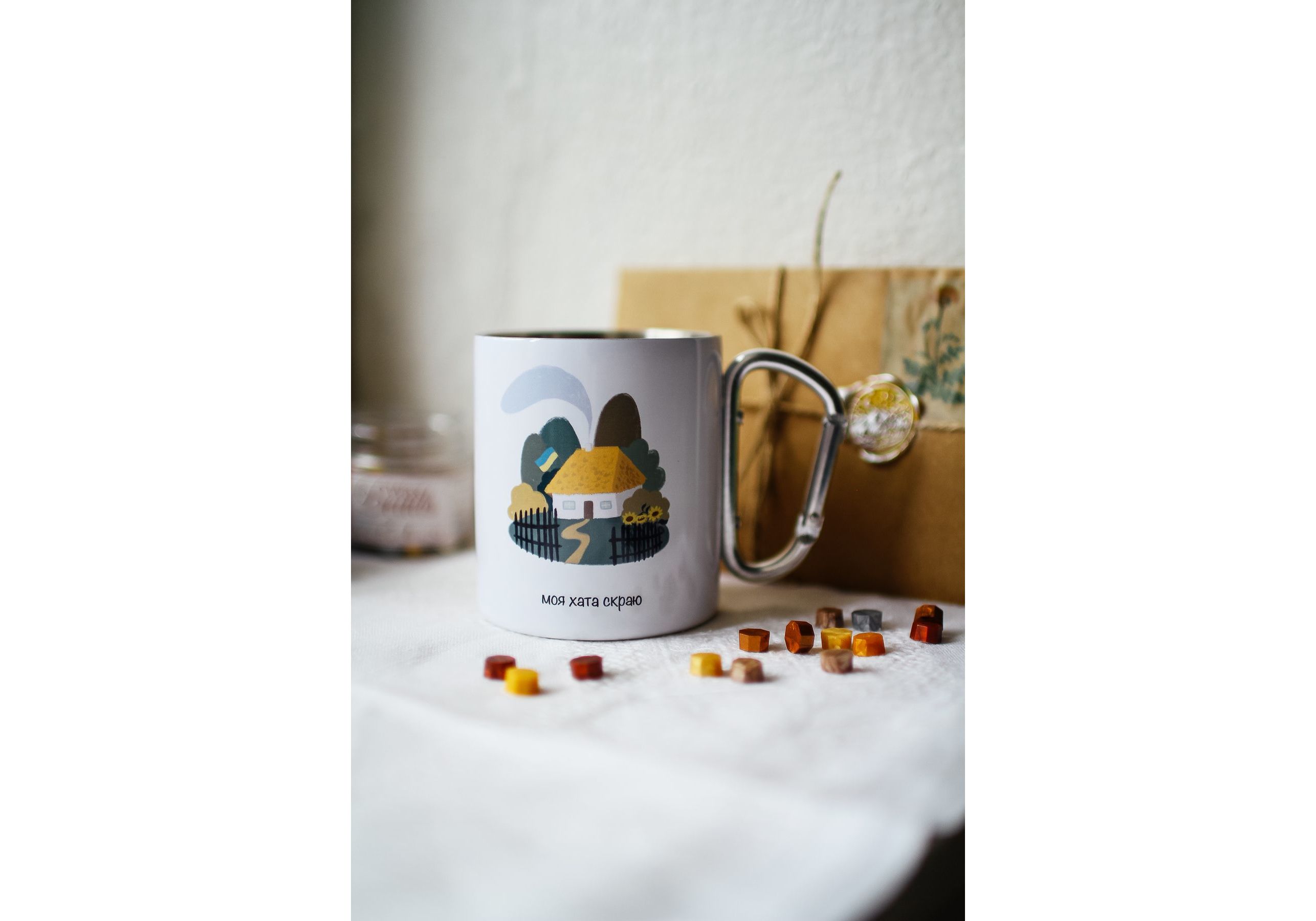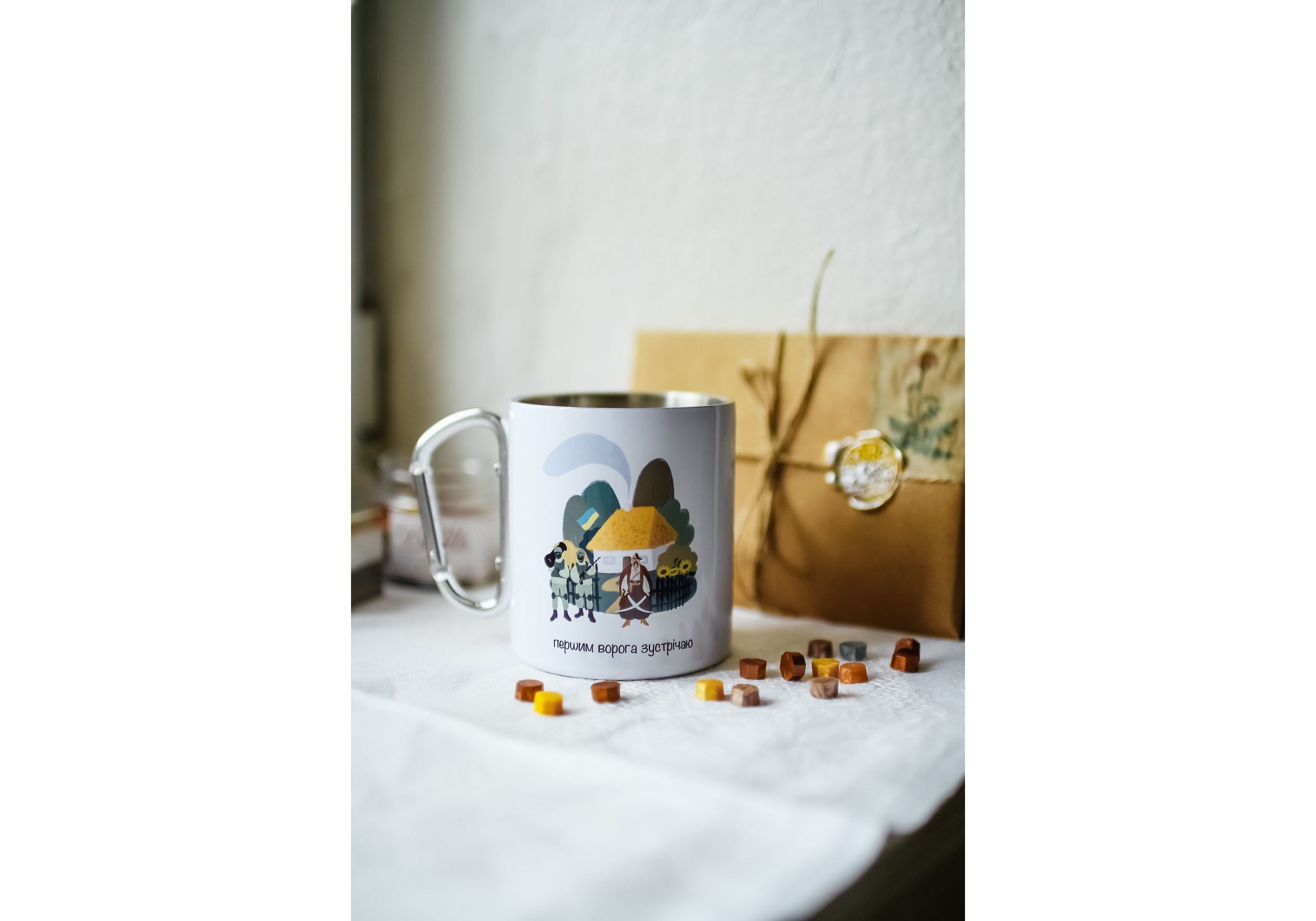 Металическая чашка с карабином "Моя хата скраю - першим ворога зустрічаю" Stella Sun Studio