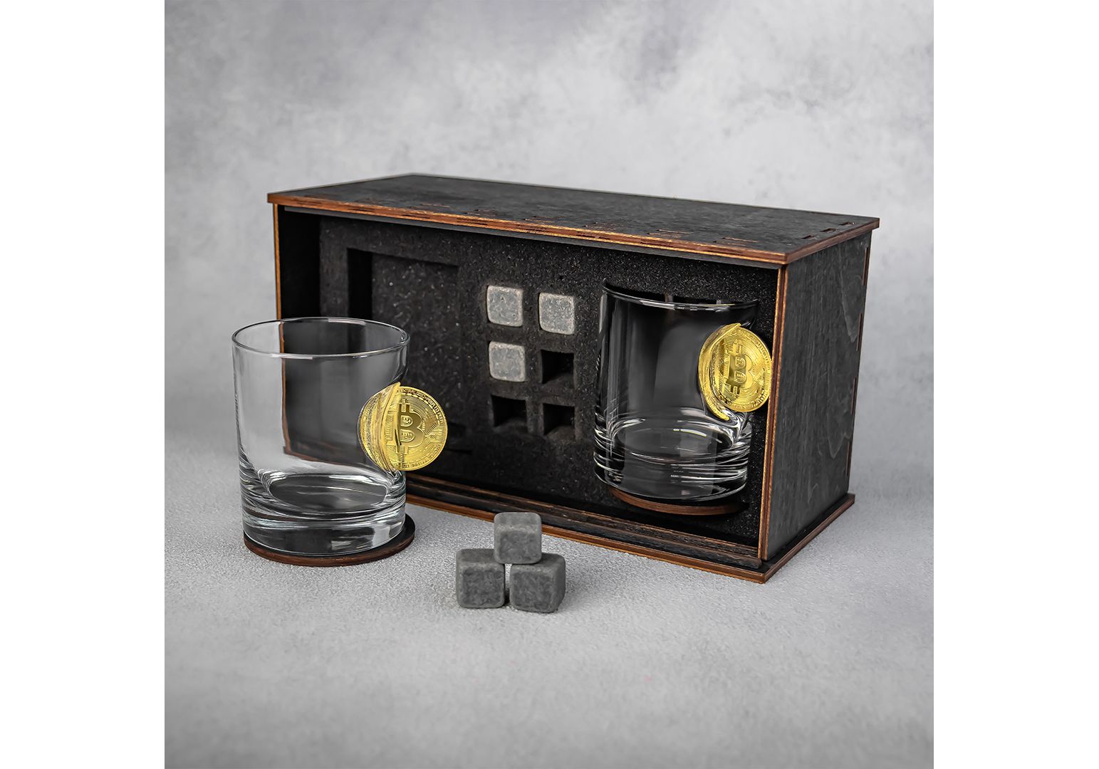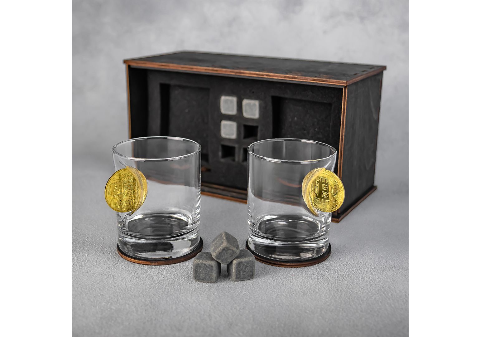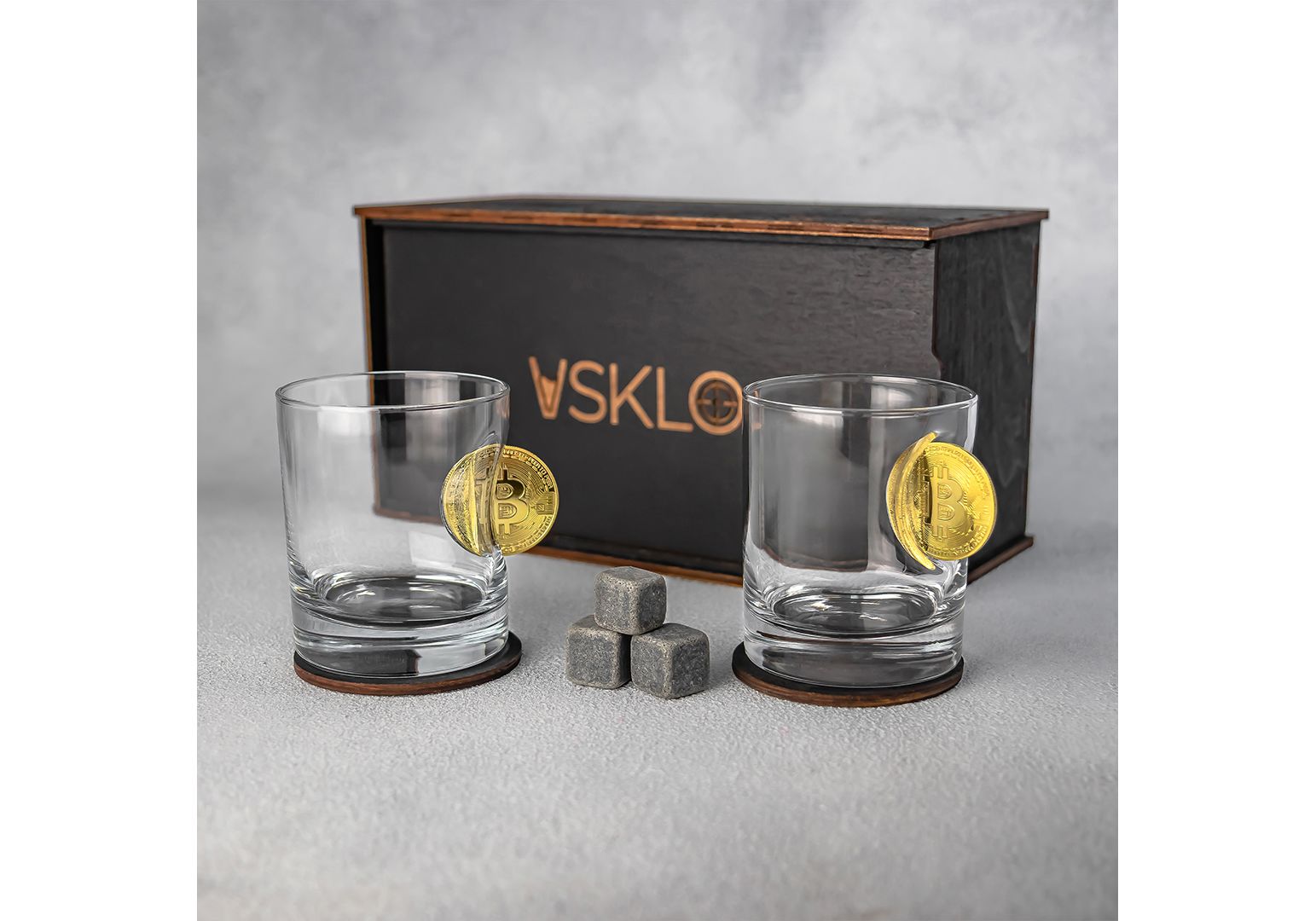 Набор стаканов виски с биткоинами VSKLO