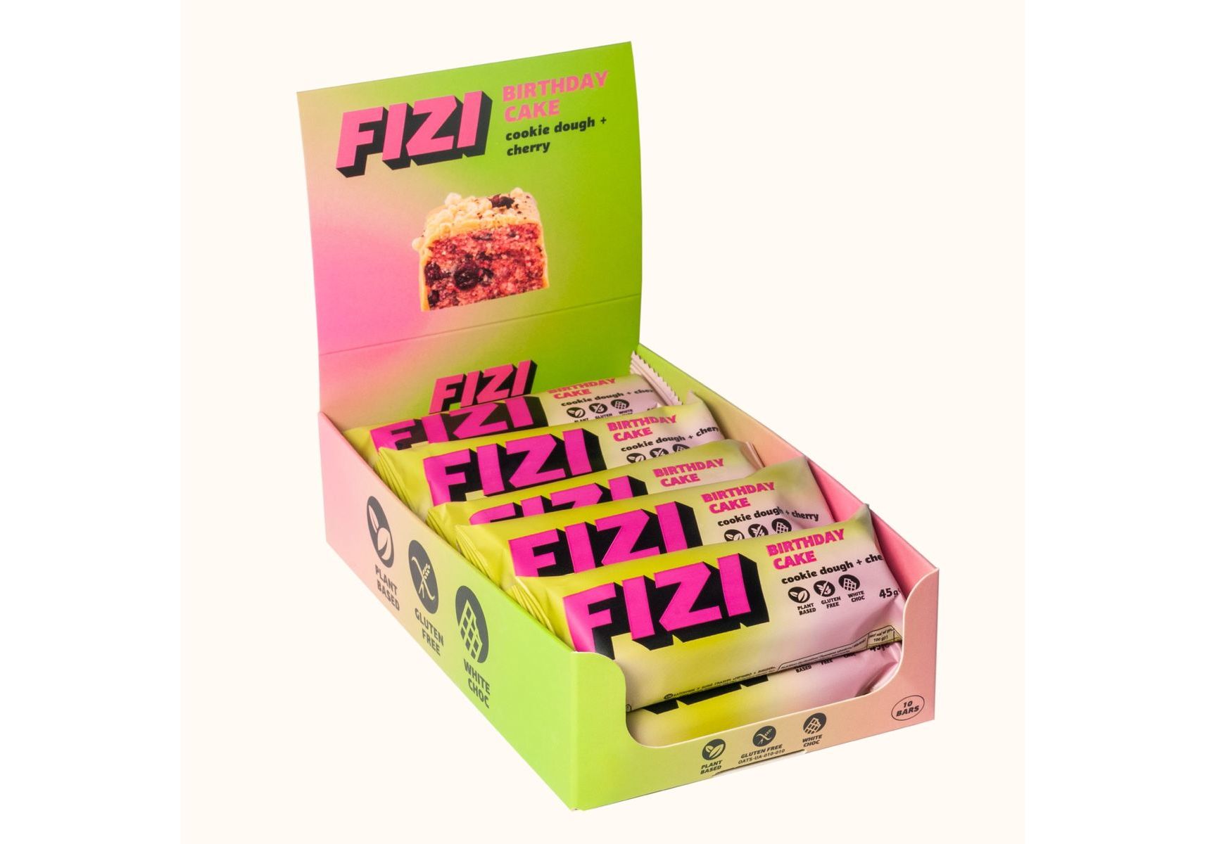 Батончик в белом шоколаде "Cherry + Cookie dough" Fizi