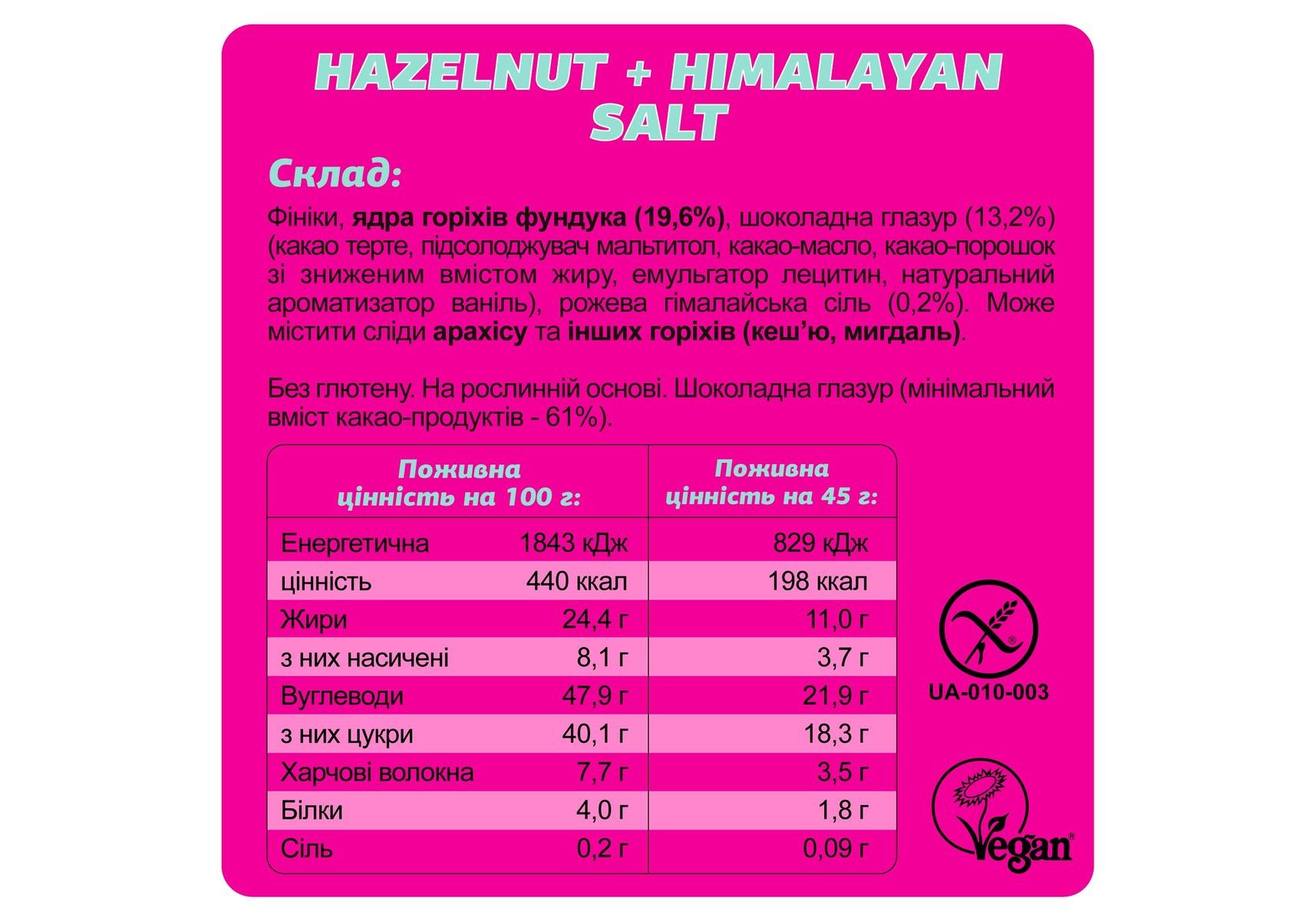 Батончик в шоколадной глазури "Hazelnut+himalayan salt" Fizi
