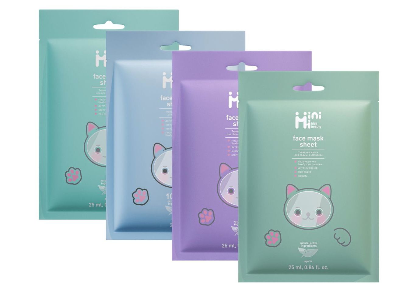 MiniMi Kids Beauty Mask Set 4в1 – мрія кожної дитини, яка хоче мати власний б’юті-набір, як у мами! У наборі 4 тканинні маски з різними ефектами: зволоження, живлення, сяйво та заспокоєння. Вони виготовлені з м’якого бамбукового волокна, мають дитячий розмір і гіпоалергенну формулу. Натуральні екстракти, вітаміни та заспокійливі компоненти дарують ніжній шкірі комфорт, свіжість та захист від подразнень. Це маленьке домашнє SPA, яке приносить користь і позитивні емоції.
