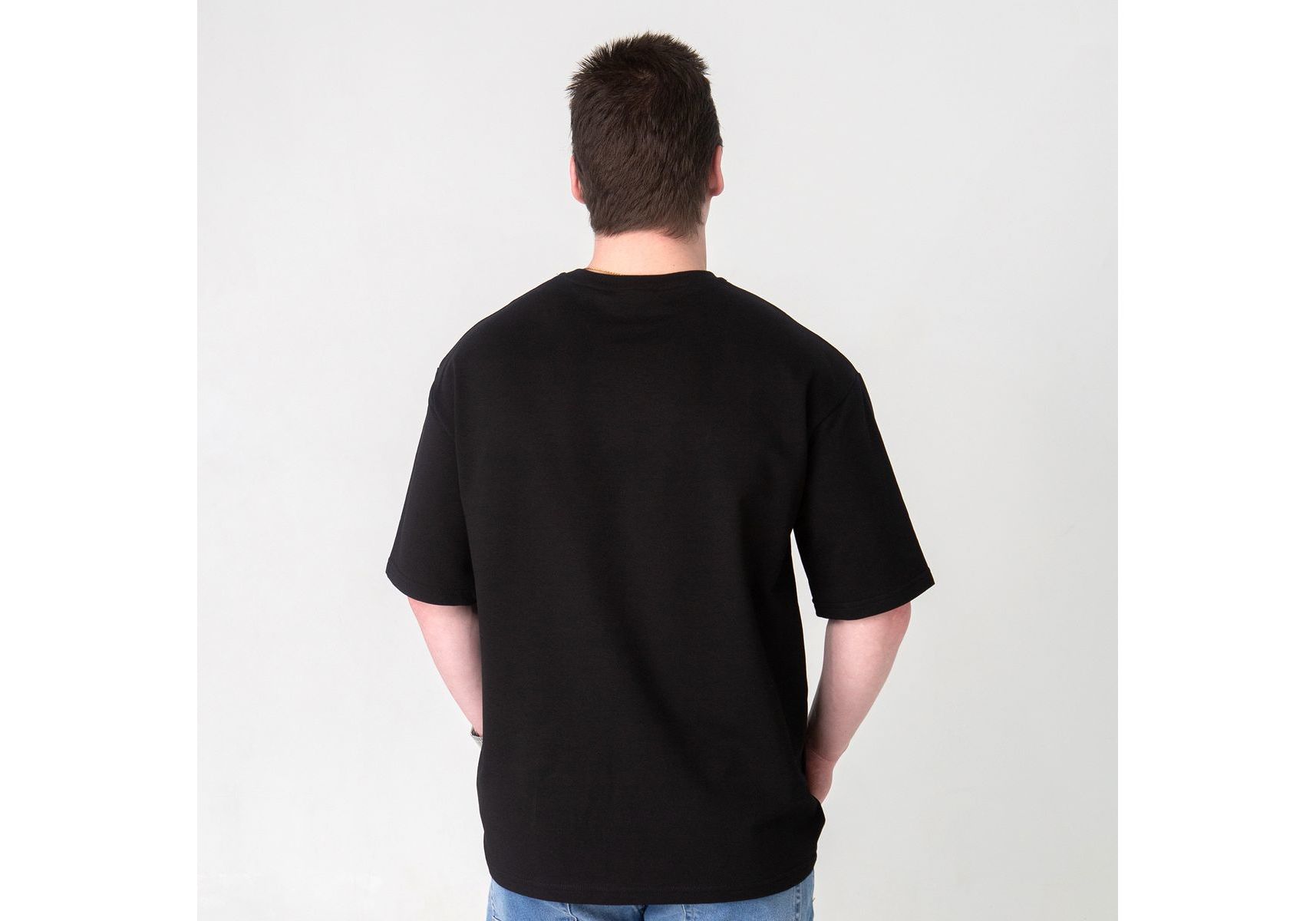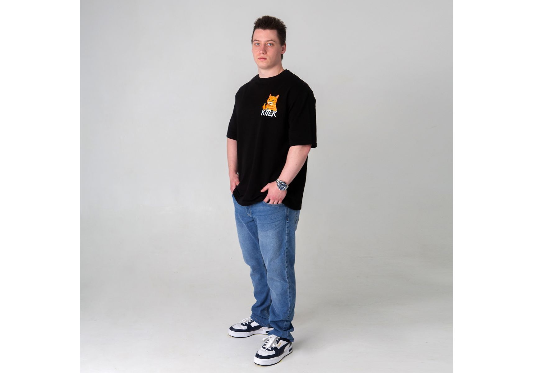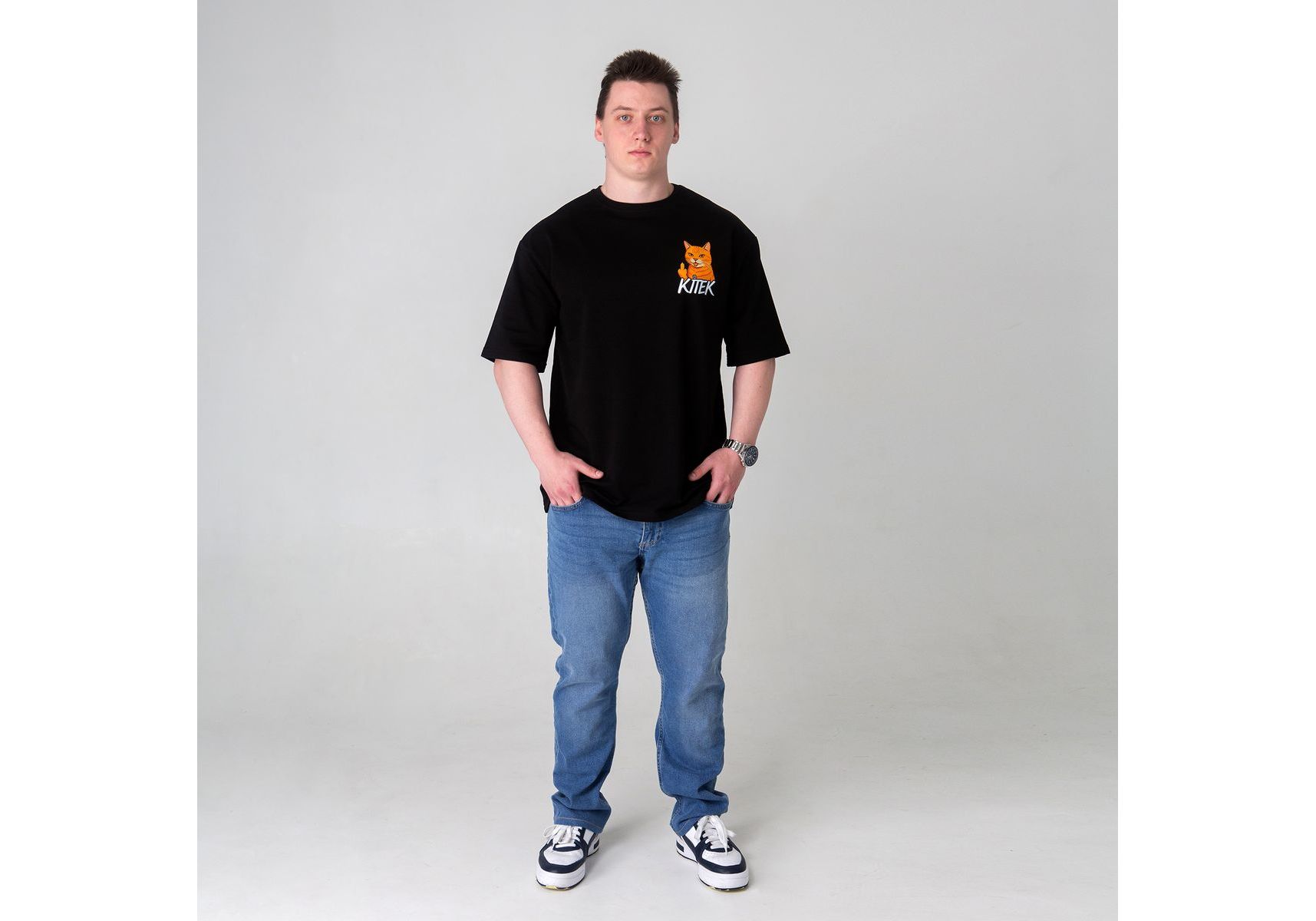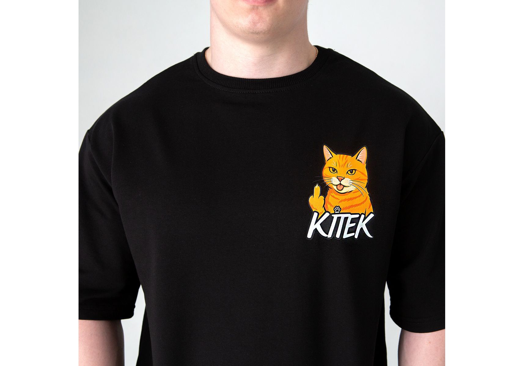 Футболка оверсайз с принтом кота Doberman (чорна) Kitek Wear