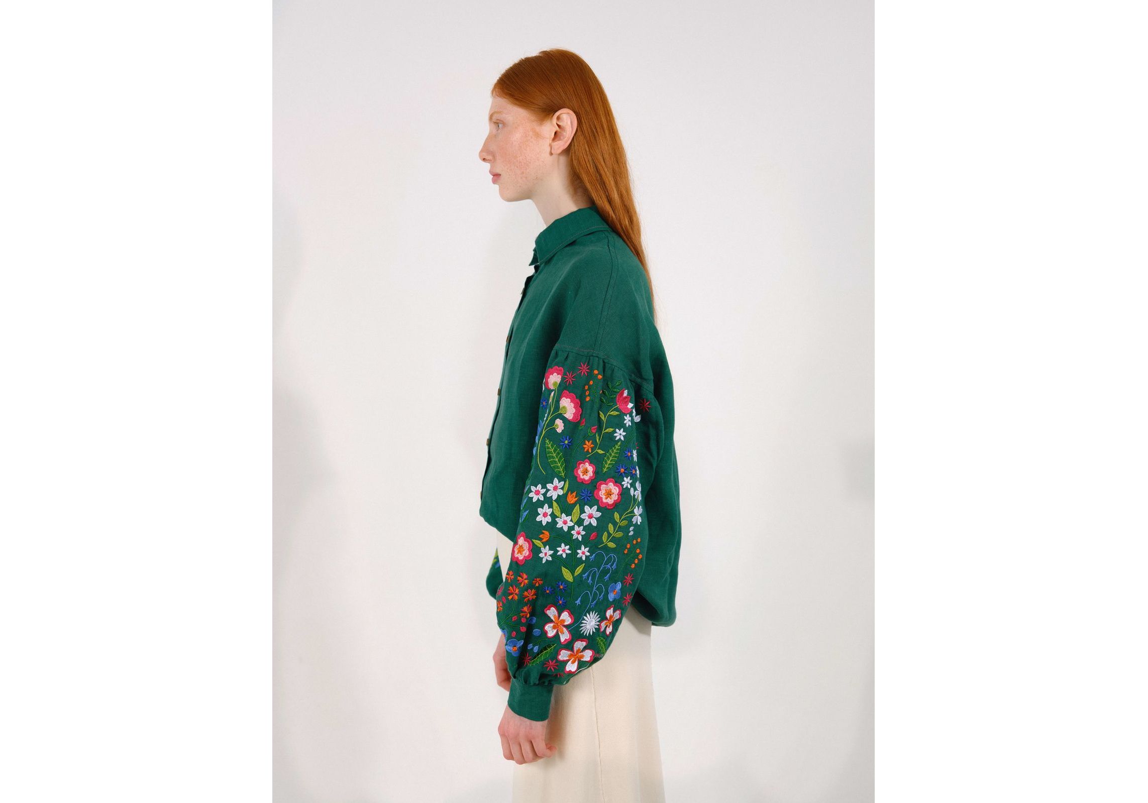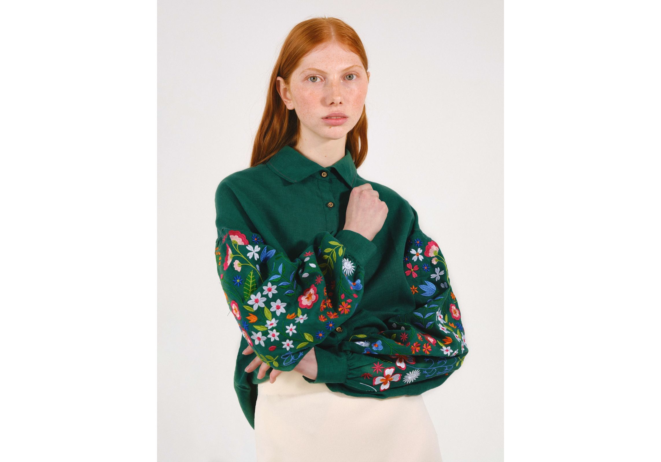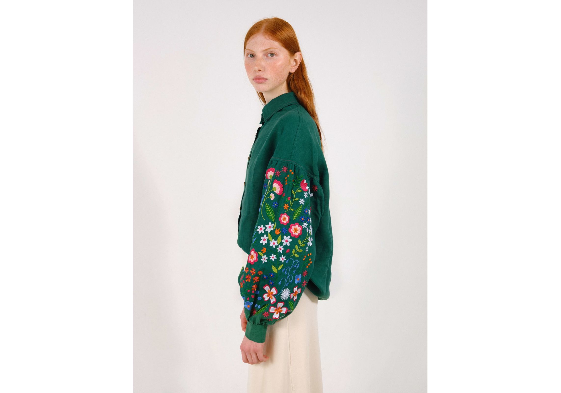 Зеленая рубашка с вышитыми полевыми цветами S Vyshyta