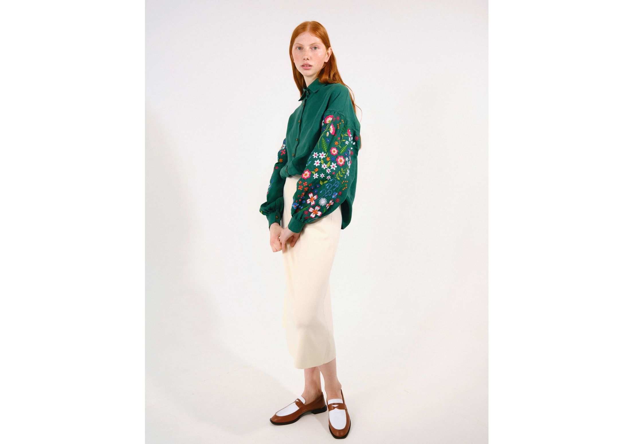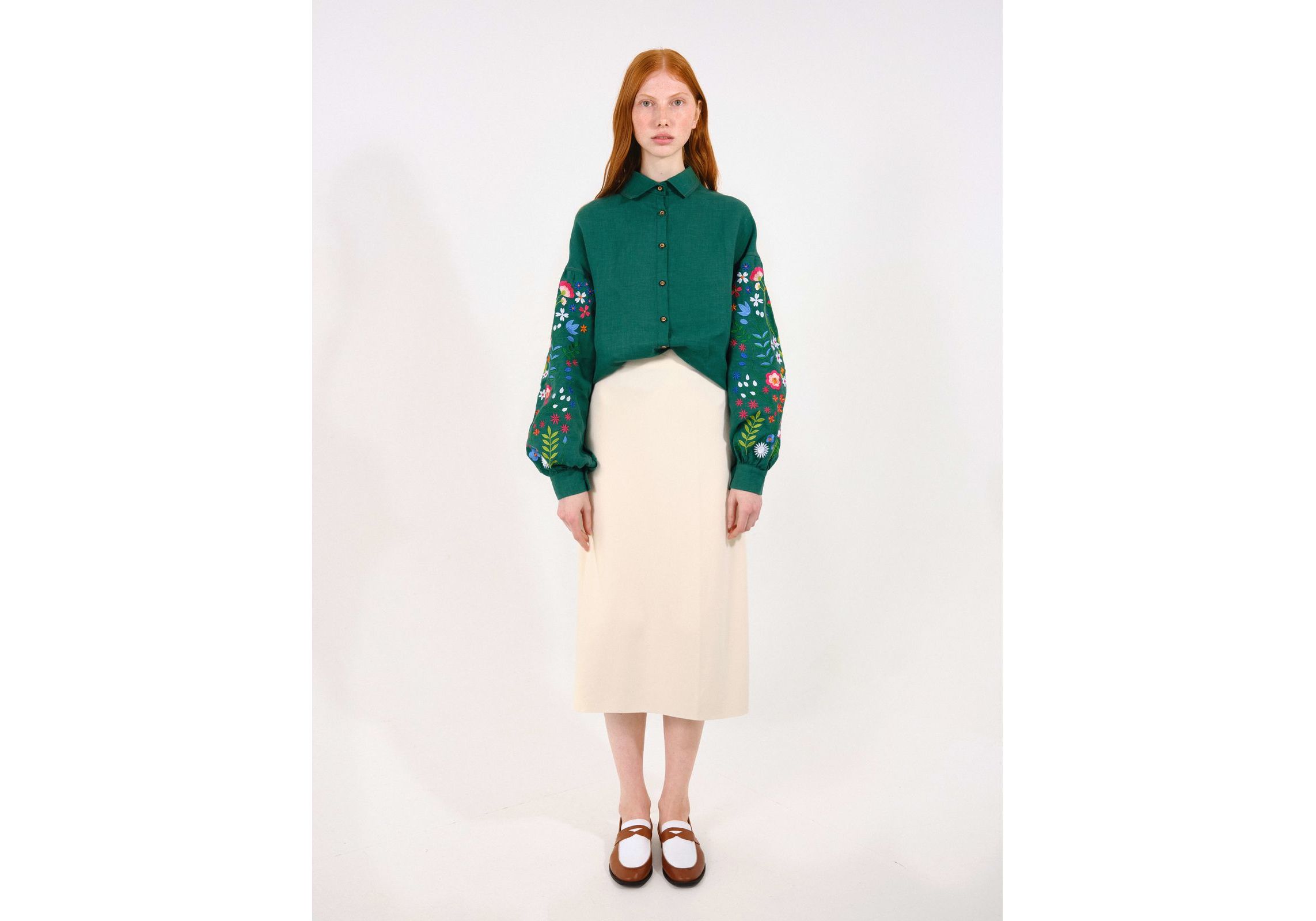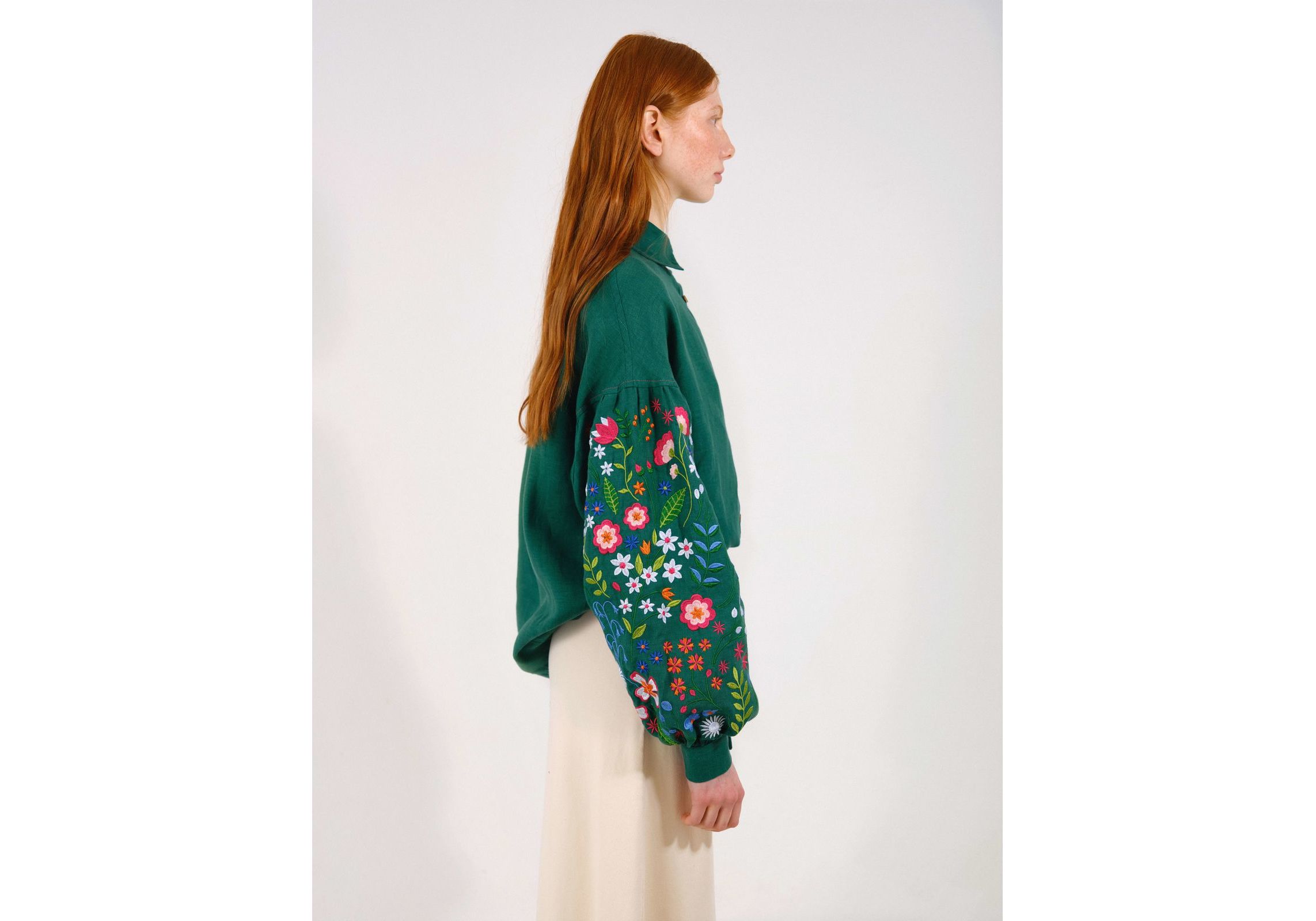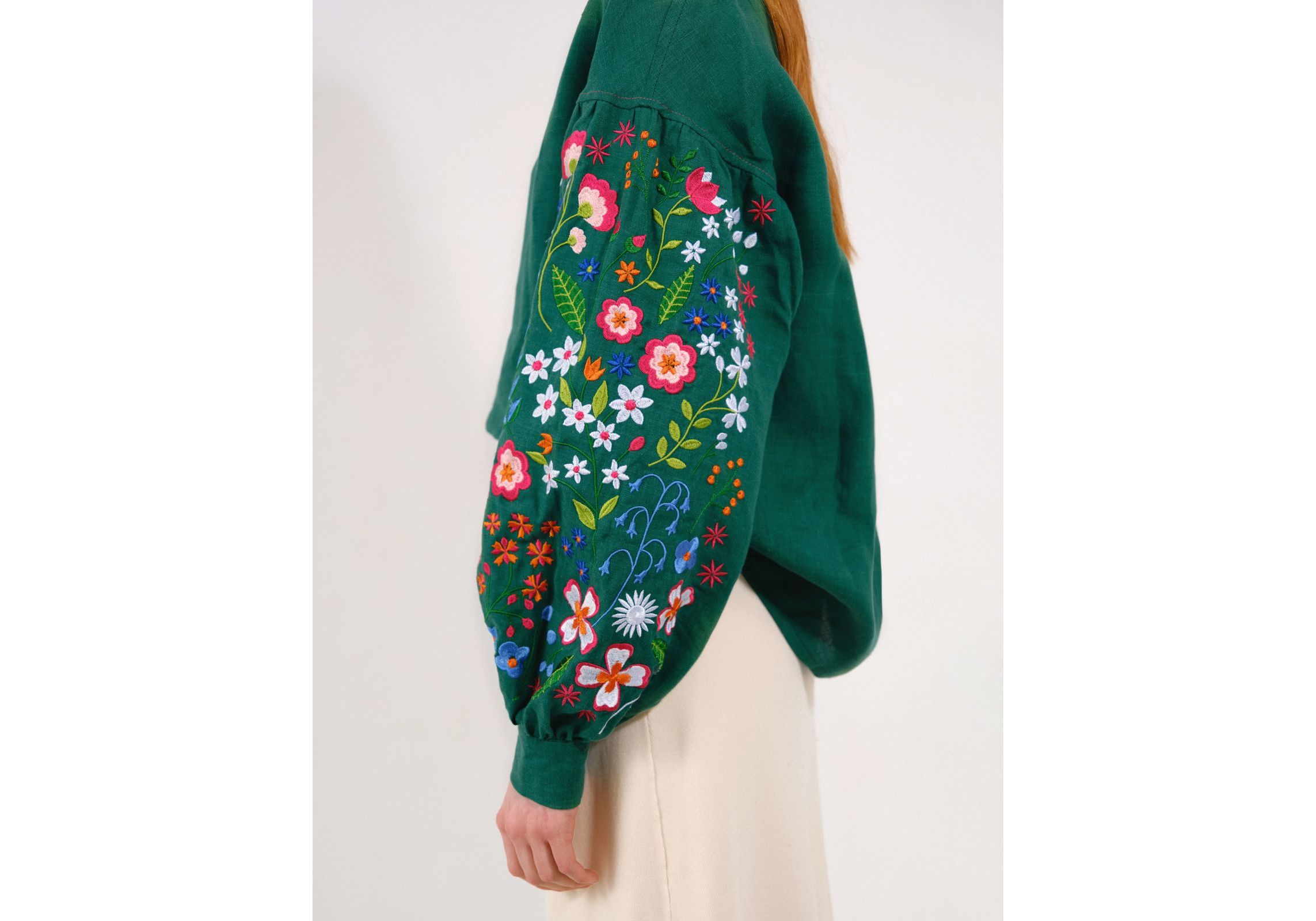 Зеленая рубашка с вышитыми полевыми цветами S Vyshyta