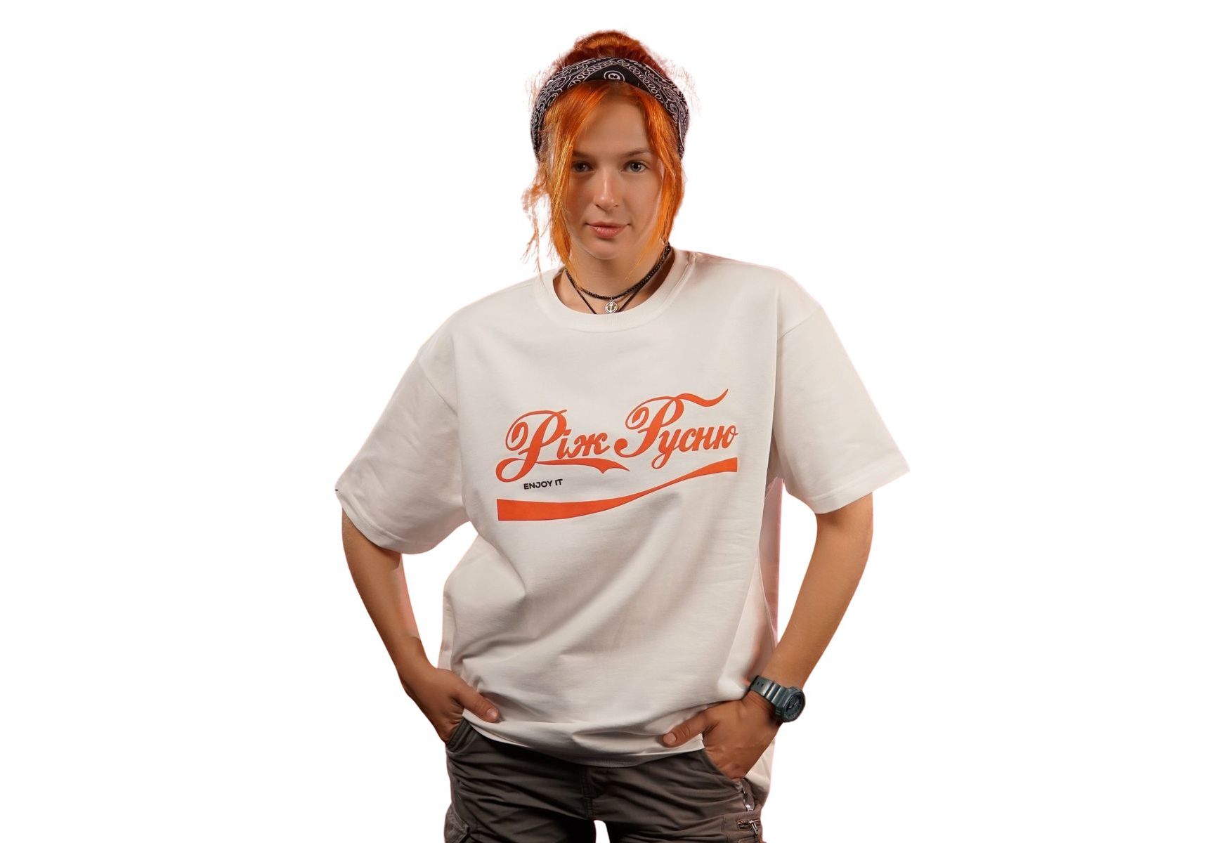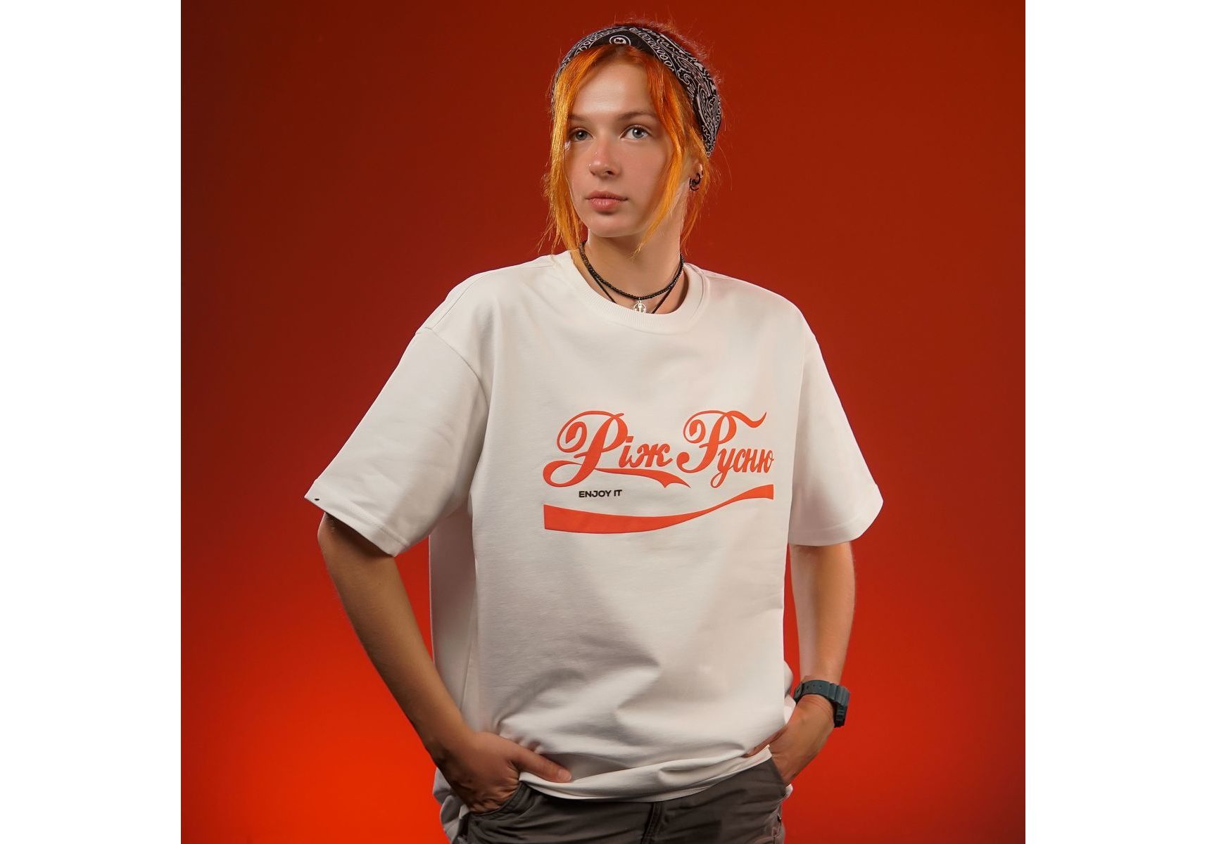 Oversize футболка Enjoy It "Ріж русню" Молочная Ісландія merch_shop