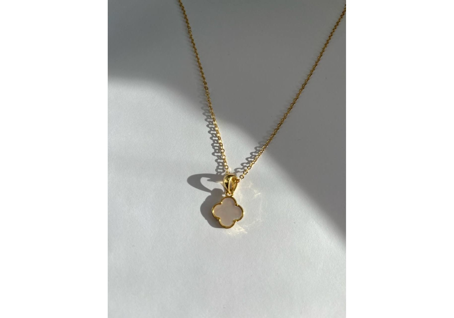 Ланцюжок з натуральною перламутровою підвіскою клевер в золотому кольорі Фурнітура - латунь покрита позолотою 18к Довжина ланцюжка- 47 см+ ланцюжок-подовжувач -5 см