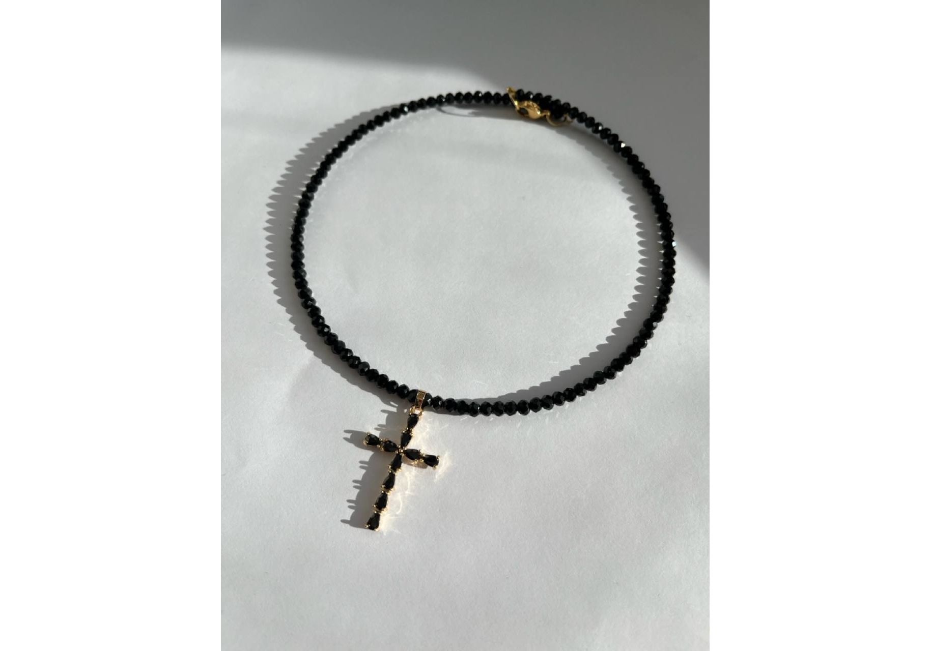 Чокер на жорсткій основі з чорного ювелірного скла з хрестиком в золотому кольорі Fayna jewelry