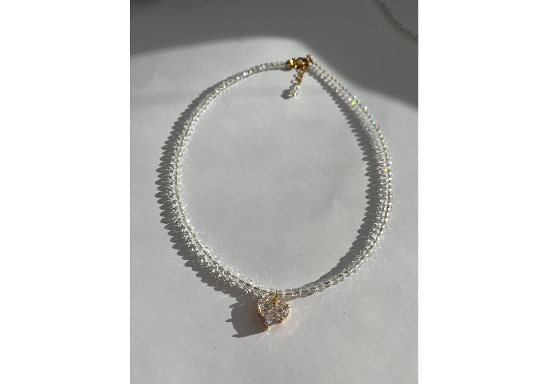 Кольє з прозорого ювелірного скла в золотому кольорі з підвіскою серце Fayna jewelry