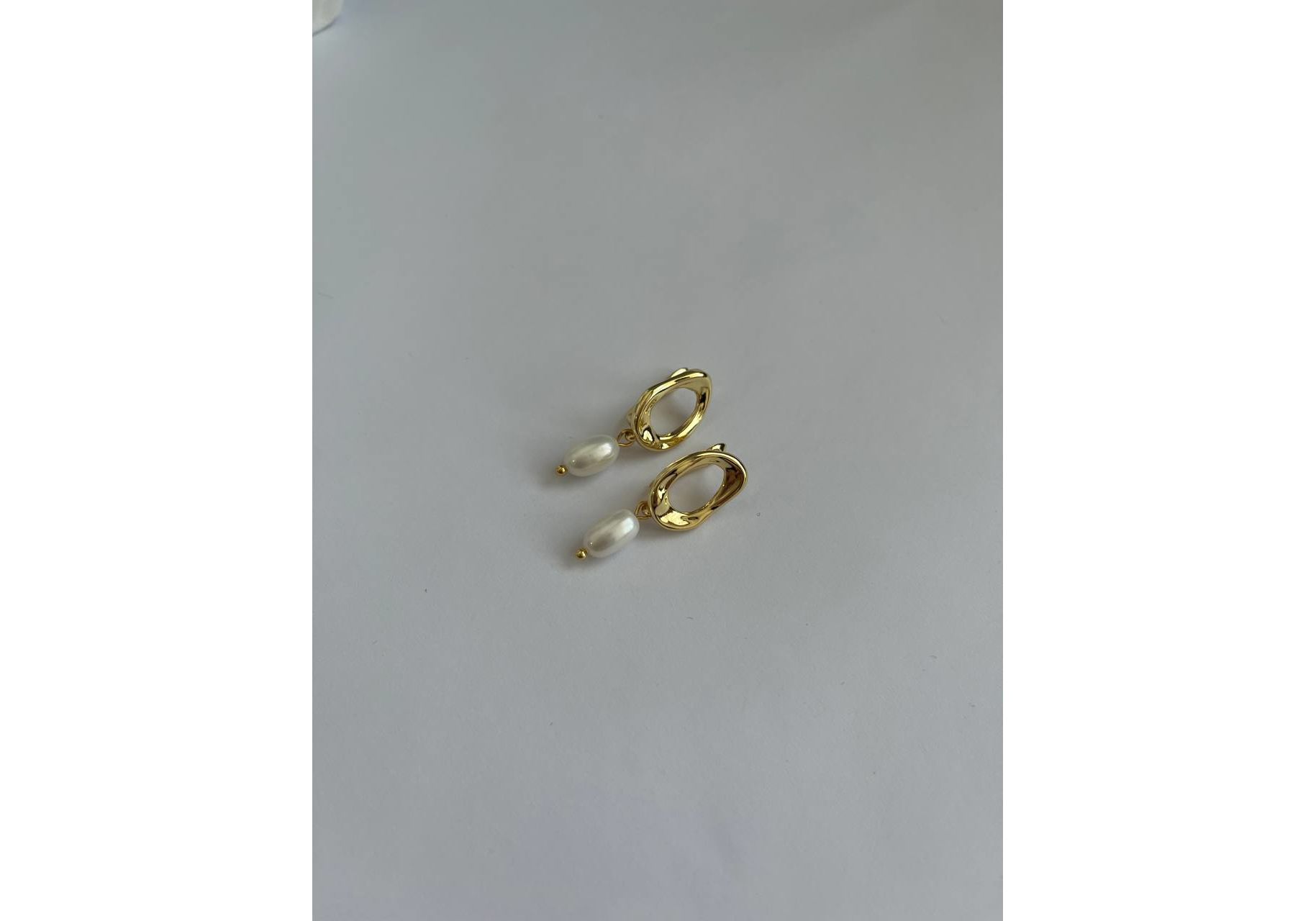 Сережки з натуральними перлами маленькими в формі рис в золотому кольорі Fayna jewelry