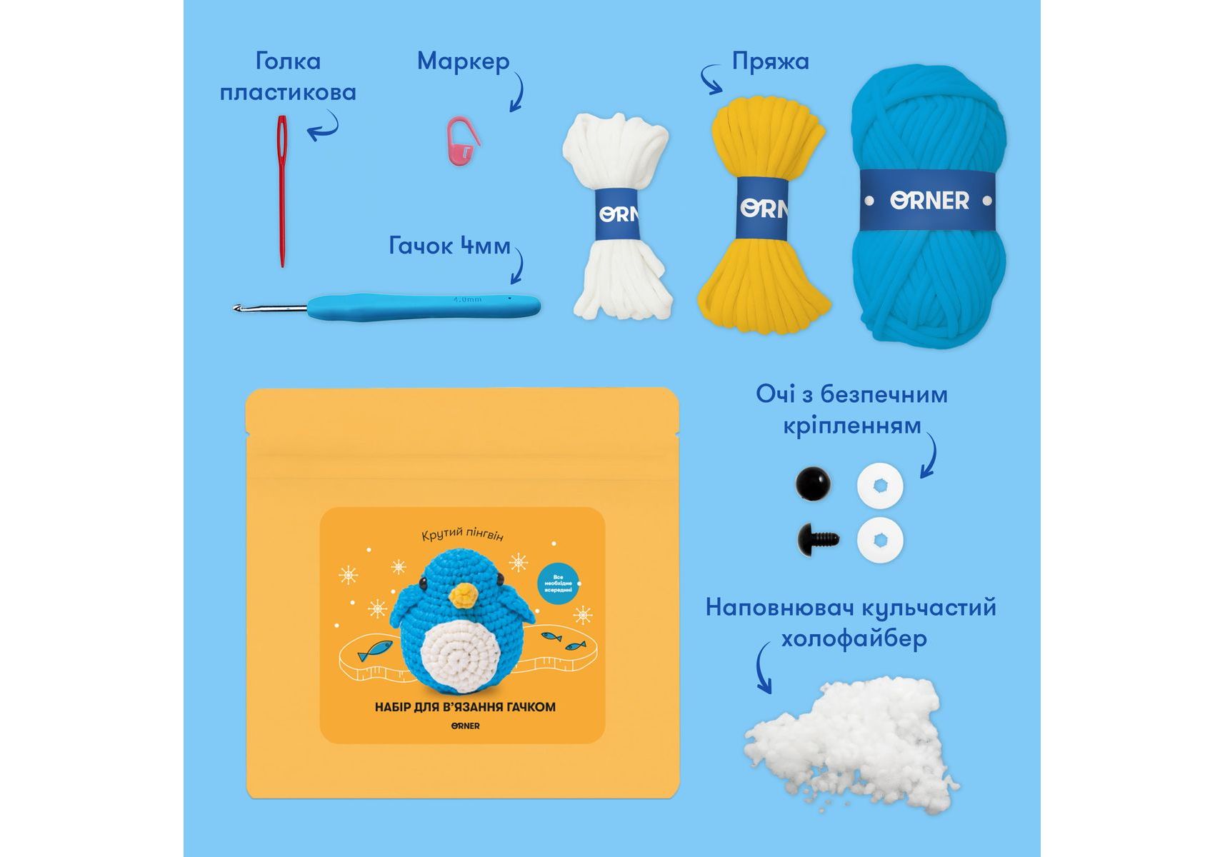 Ми створили набори для в'язання крючком, з яким у вас точно все вийде! Новачки та не тільки будуть в захваті — і від процесу, і від результату. Для зручності в кожному наборі є все необхідне: пряжа, крючок, маркер для відмітки рядків, пластикова голка, наповнювач і очі з безпечним кріпленням. А результатом буде чудова іграшка, яка стане вашим особистим талісманом. Обирайте набір душею та серцем і даруйте собі чи рідним спокій, задоволення від процесу та м'яку тваринку, створену власноруч!