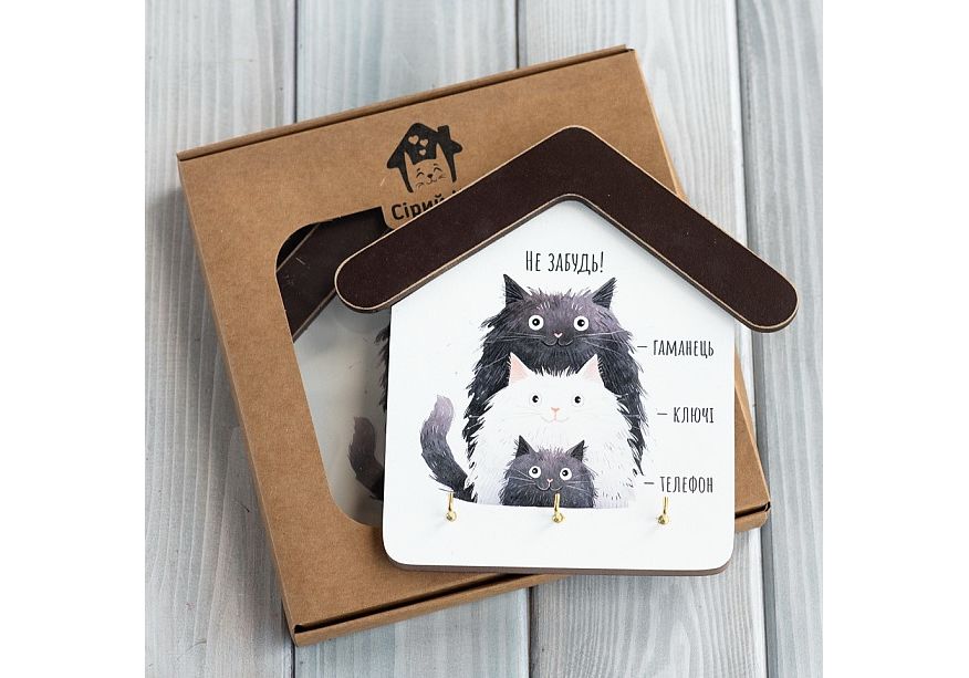 Ключниця будиночок "Не забудь! Сім'я котиків" Wood Posters