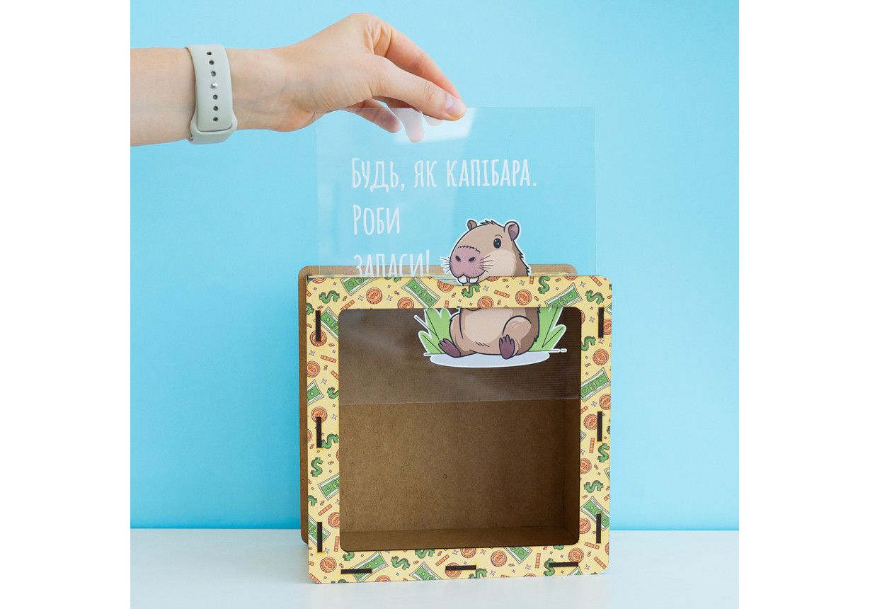 Скарбничка "Капібара" Розмір: 19.5*19.5*11.5 см Матеріал: HDF деревоволокниста плита високої щільності Покриття: УФ - друк