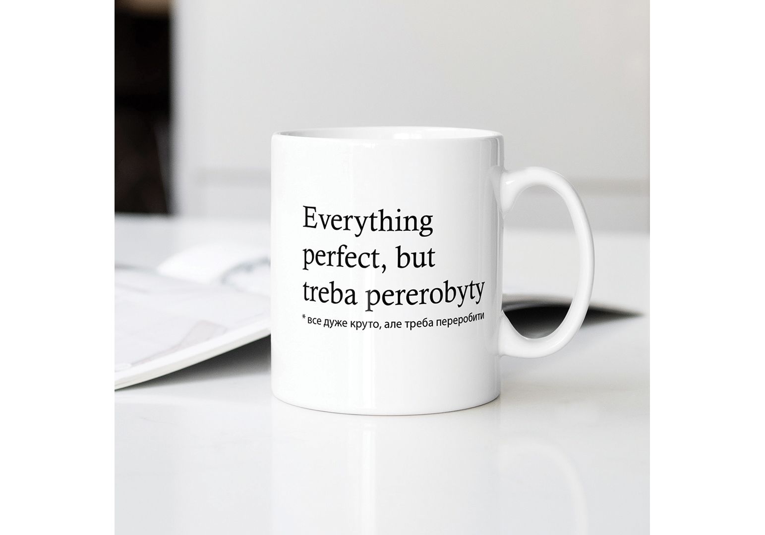 Ти працював (вйо.ував) весь тиждень над якоюсь задачею. Задоволений, скидаєш її на затвердження... і уявляєш, як всі будуть восхваляти і носити тебе на руках, керівник виписує премію, а твоє фото вже в рамці "Кращий співробітник року"... і тут, ти отримуєш меседж і просинаєшся. "Все круто, але треба переробити". Якщо тобі знайома така ситуація, то в тебе обов'язково має бути ця чашка. Можливо, вона допоможе уникнути таких відповідей, а може й ні! Та вона точно допоможе підняти настрій тобі та оточуючим.