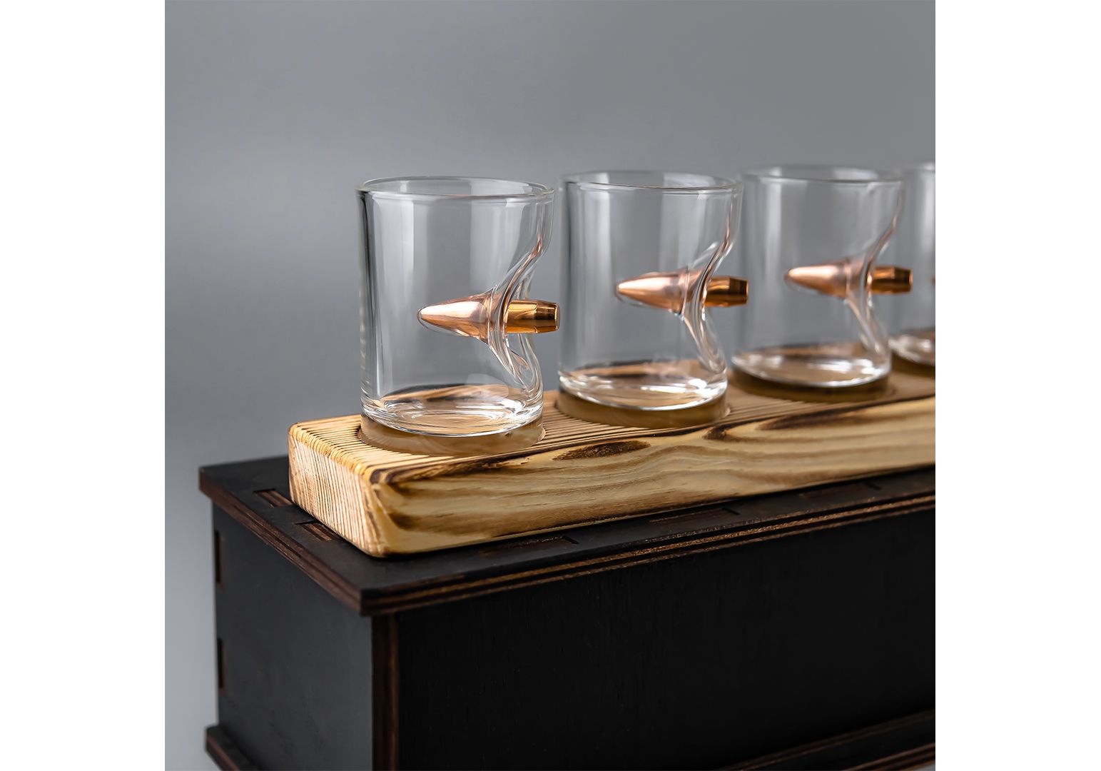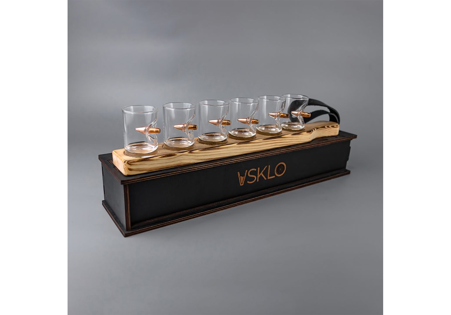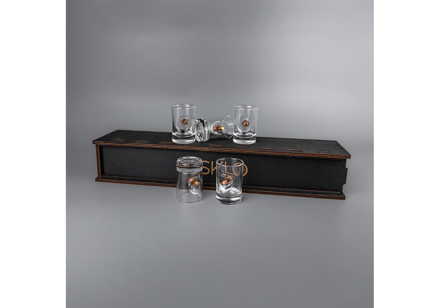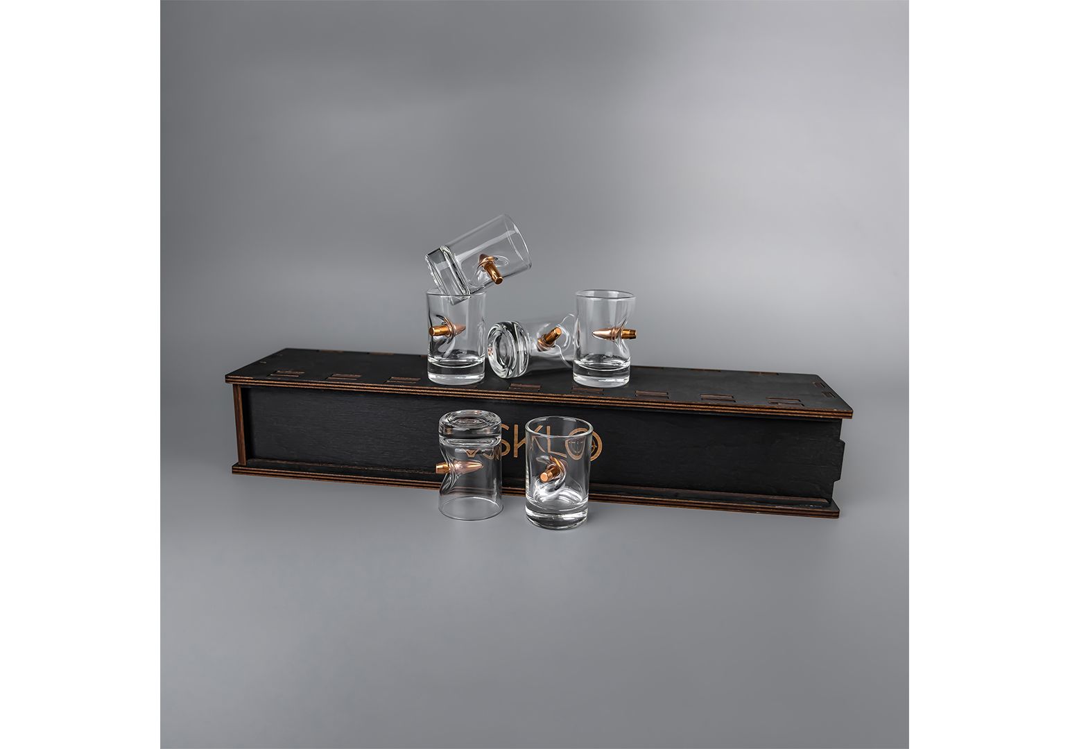Набір чарок 6 шт зі справжніми кулями - це справжній витвір мистецтва, зроблена нашими майстрами, щоб дарувати Вам найприємніші враження з перших секунд використання! З твердістю запевняємо, що всі вироби від VSKLO унікальні у своєму виконанні, а головна їх особливість - Вони з Характером! Об’єм: 55мл Матеріал: Скло Матеріал предмету: Латунь