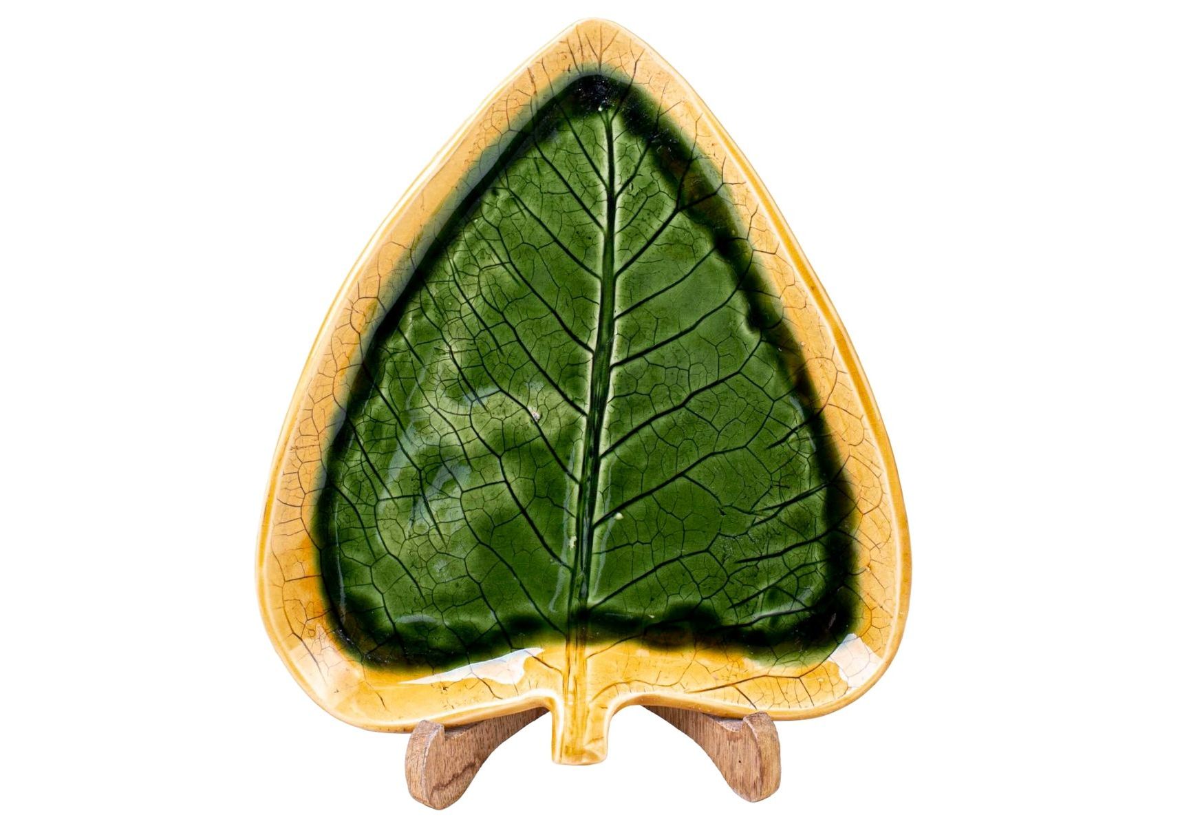 Листок Хоста 24 см Зелений з обідком Покутська кераміка