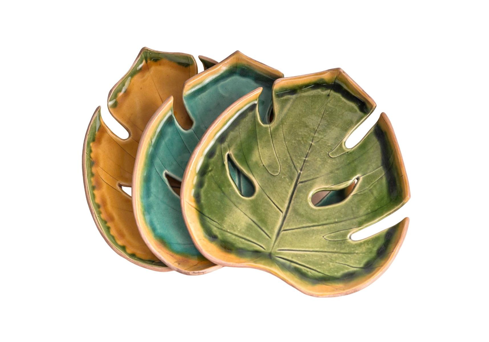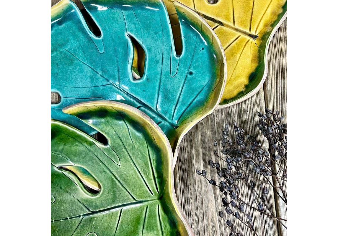 Тарілки Монстера Флора вироблені вручну українськими керамістами за формою живих рослин. Для виробництва використовується натуральна українська глина. Поливане покриття екологічне та безпечне для щоденного користування і розігрівання у мікрохвильовці чи духовці. Керамічні вироби не рекомендуємо мити у посудомийних машинах для кращого збереження кольору