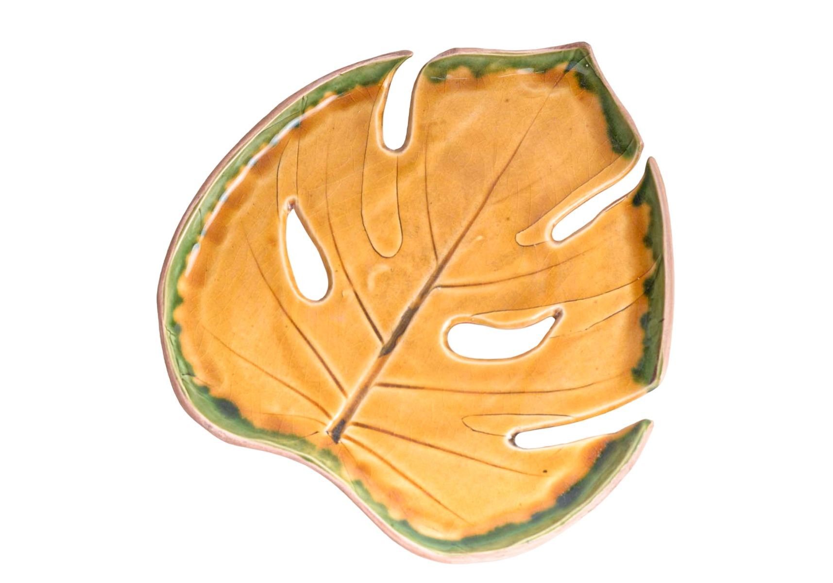Листок Монстера 20 см Жовтий з обідком Покутська кераміка