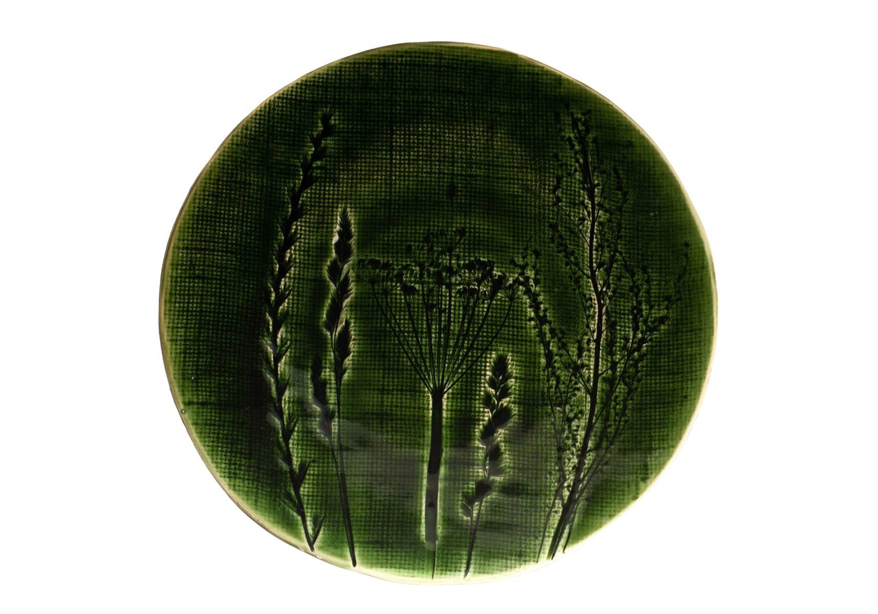 Тарілка 26 см Зелена Різнотрав'я Мішковина Покутська кераміка
