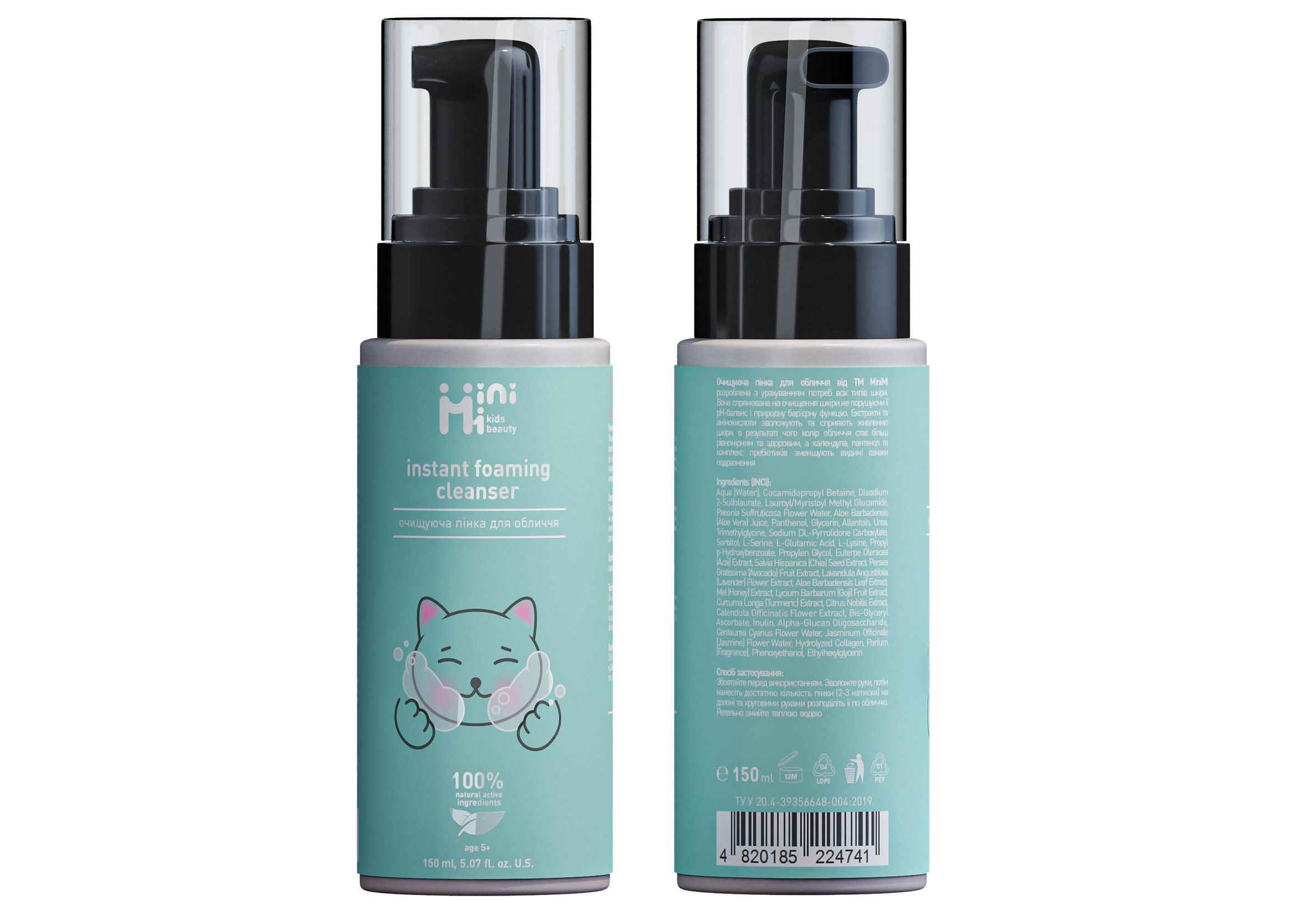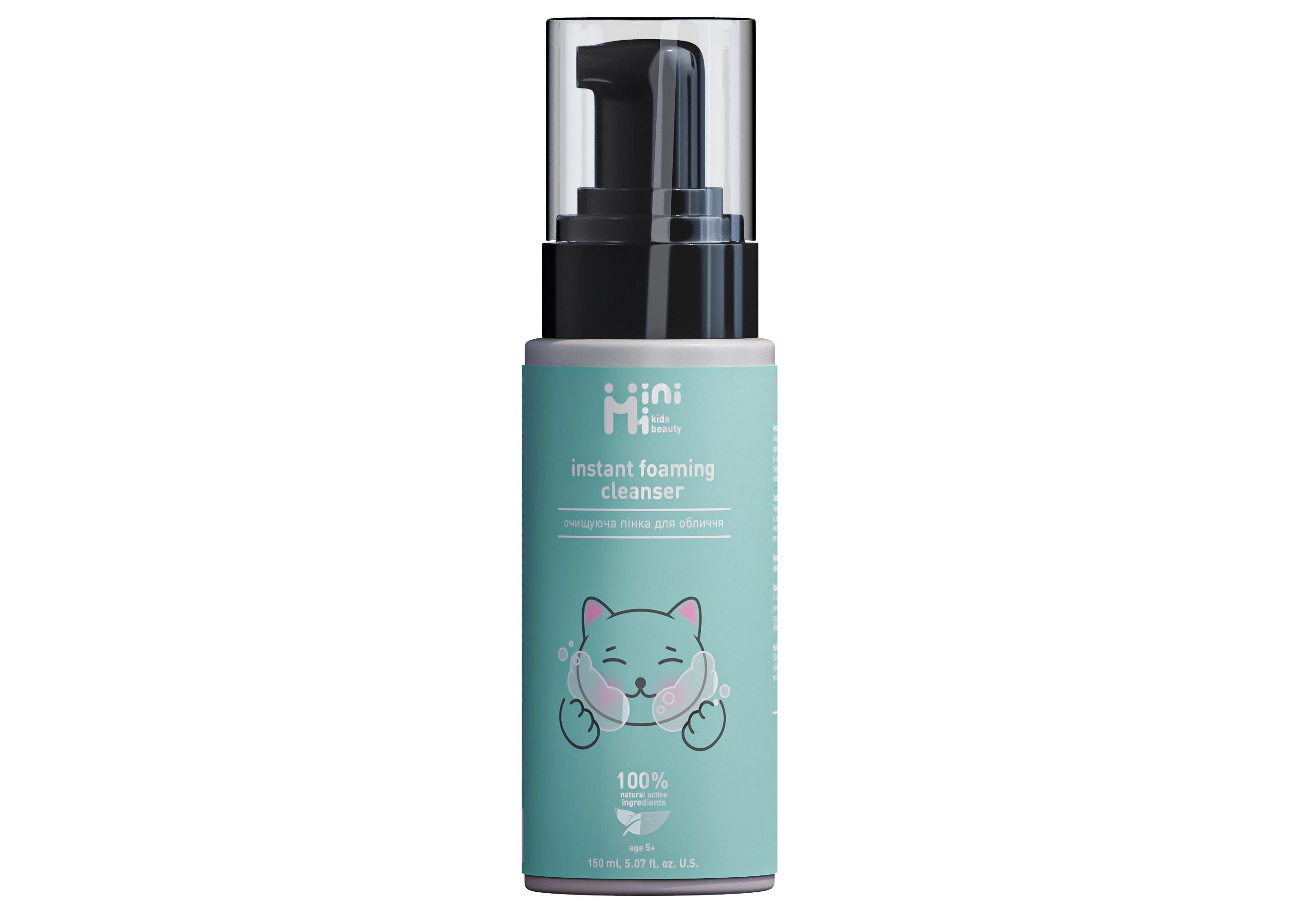 Молода шкіра підлітків так само піддається забрудненню навколишнього середовища і потребує надійного очищення. З дорослішанням дівчата мріють мати власну косметику, а ділити дорослі засоби з мамою тільки нашкодить юній шкірі. Косметологи бренду MiniMi розробили очищувальну пінку спеціально для юних модниць. Засіб м’якіший за будь-яке дитяче мило, тому забезпечить делікатне та ефективне очищення обличчя. Особливості MiniMi Kids Beauty Instant Foaming Cleanser: - дбайливо очищує чутливу шкіру від всіх забруднень та надлишку себуму; - залишає відчуття ідеальної чистоти та свіжості; - пом’якшує, зволожує, заспокоює та захищає шкіру від агресивних чинників навколишнього середовища; - має приємний аромат і легко змивається; - не подразнює очі та не видаляє корисні олії з поверхні шкіри; - проводить антиоксидантну дію шкірного покриву; - створює захисний бар’єр епідермісу.