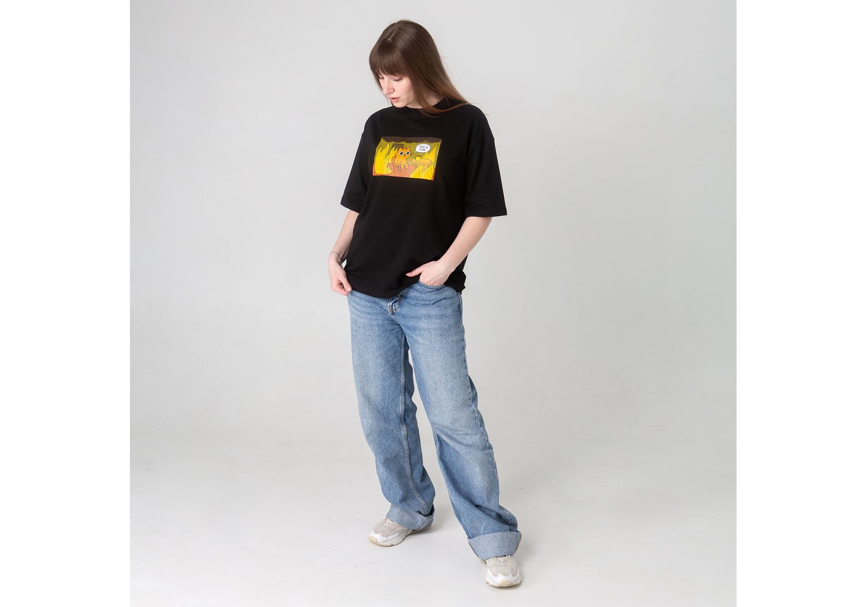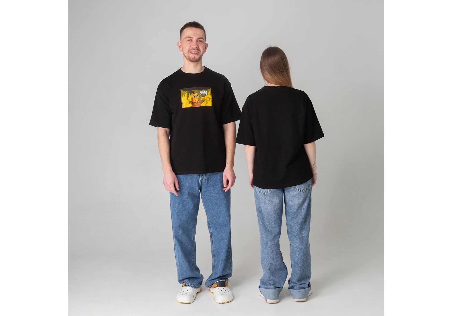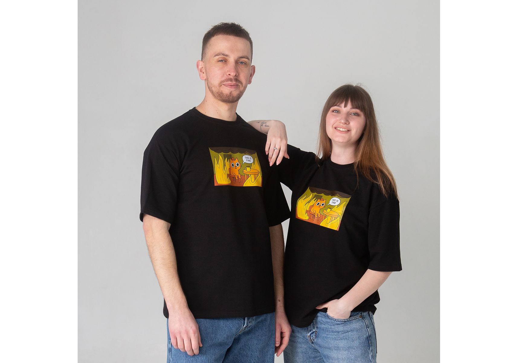 Футболка оверсайз з принтом кота This is Fine (чорна) Kitek Wear