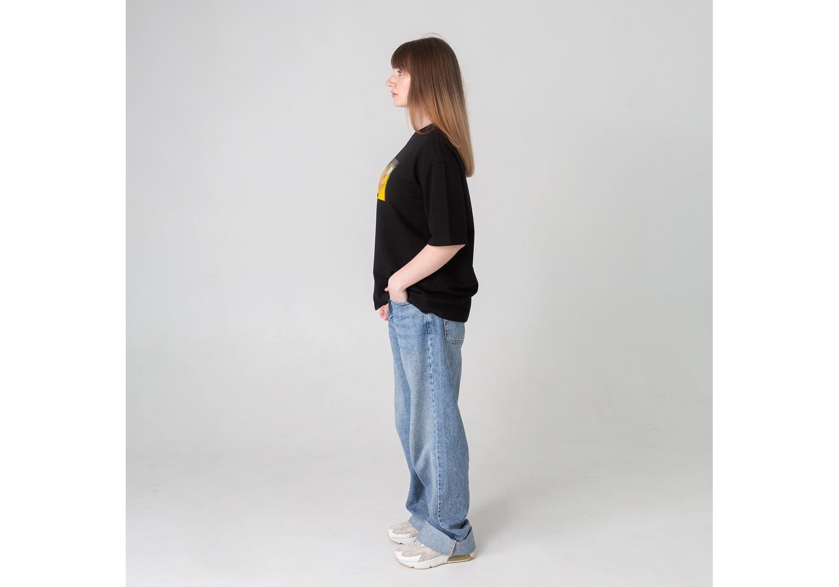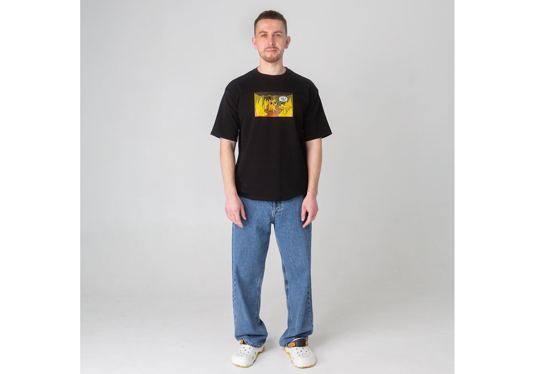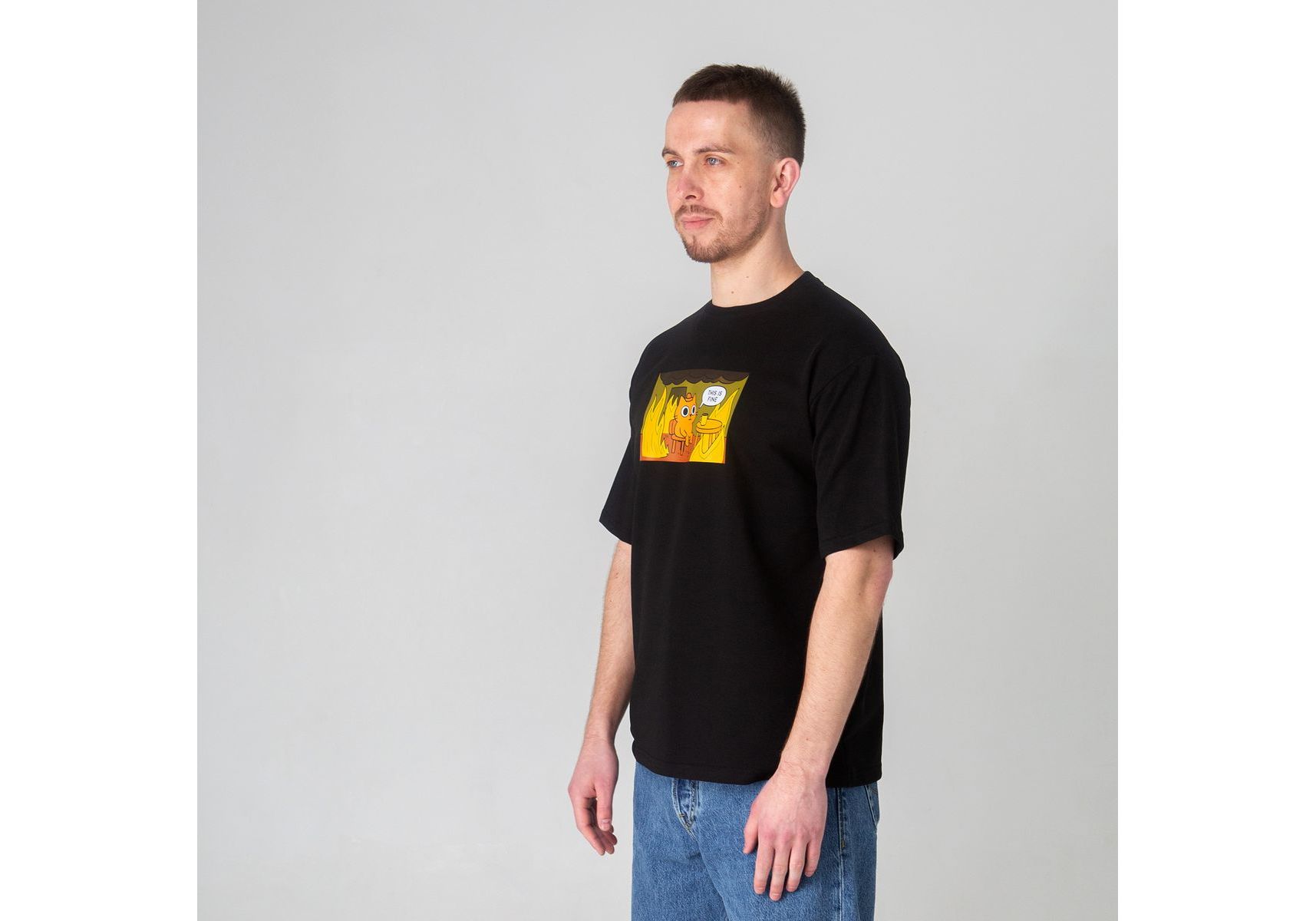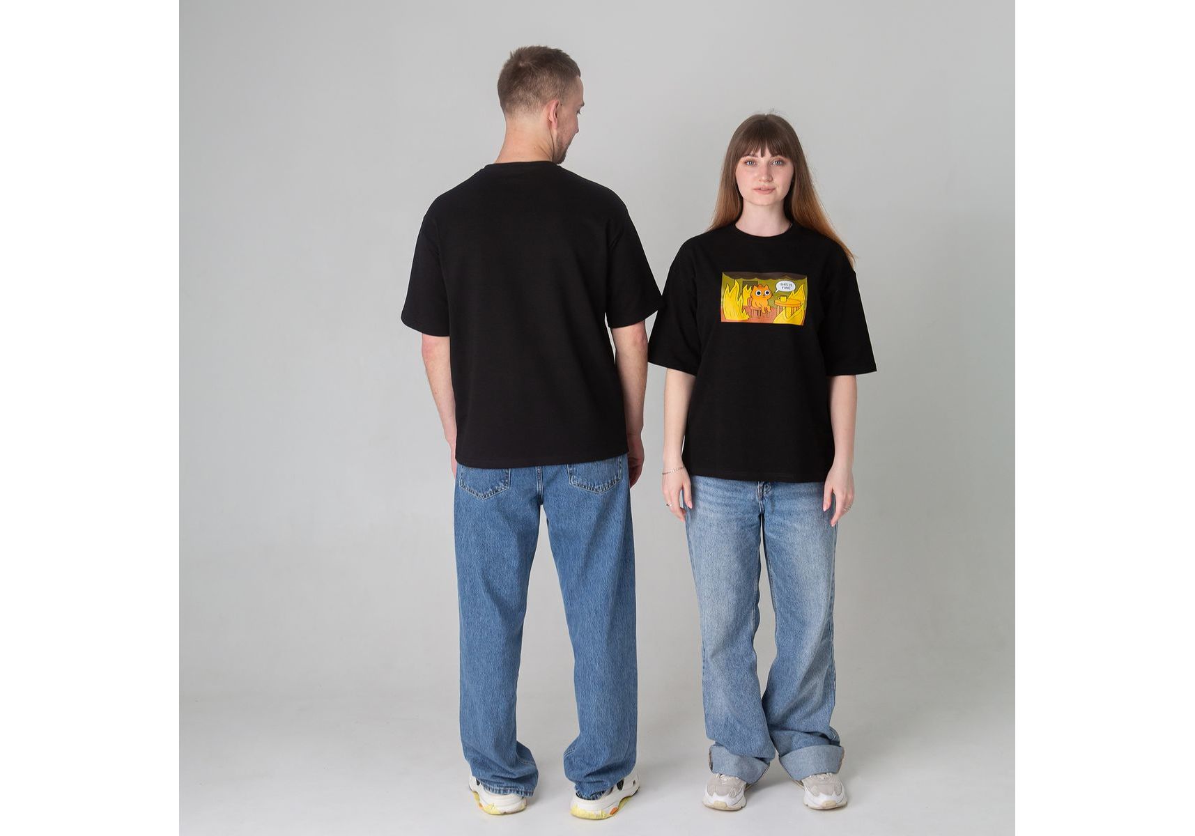 Футболка оверсайз з принтом кота This is Fine (чорна) Kitek Wear