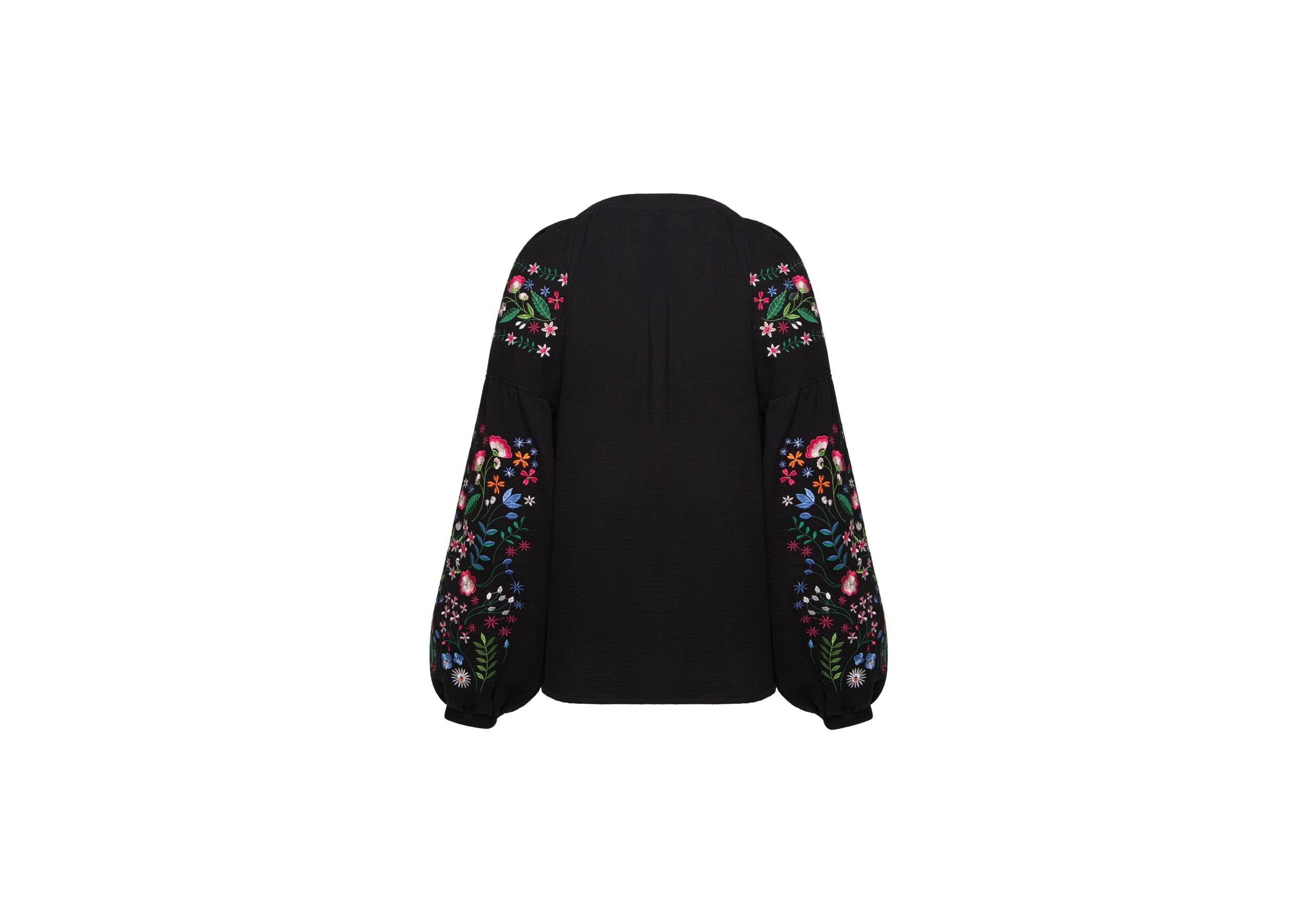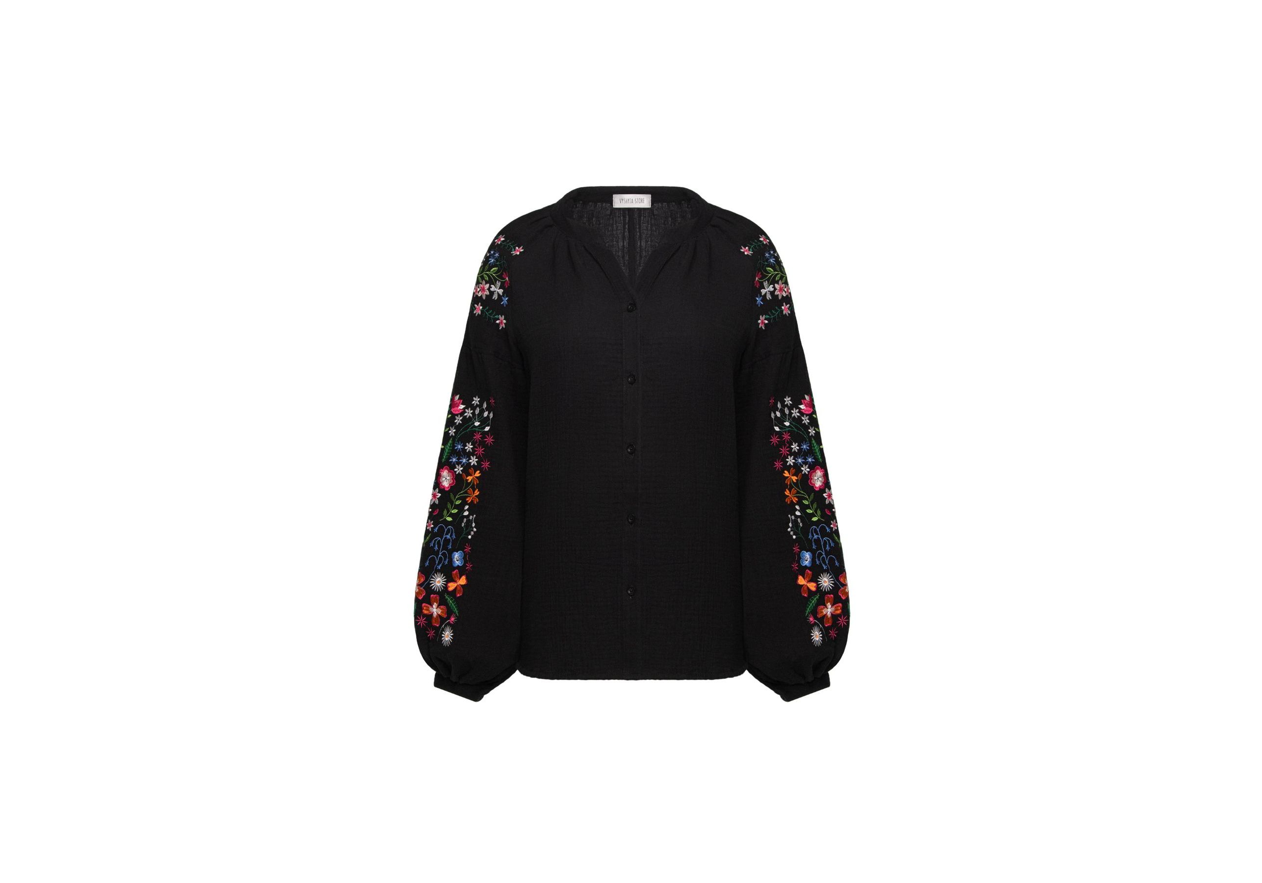 Бавовняна сорочка з польовими квітами чорна Vyshyta