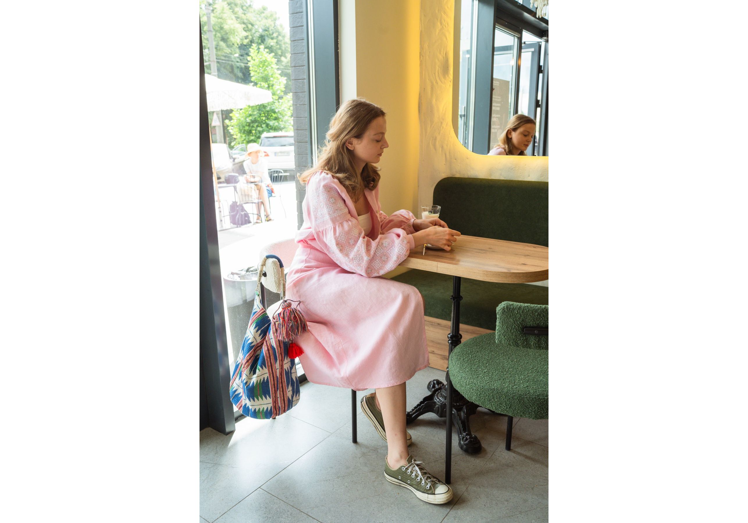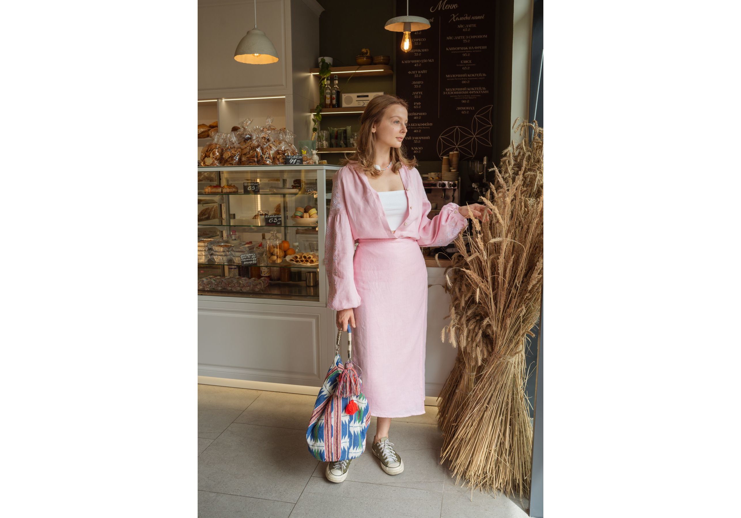 Мінімалістична лляна вишита блуза Зоя рожева Vyshyta