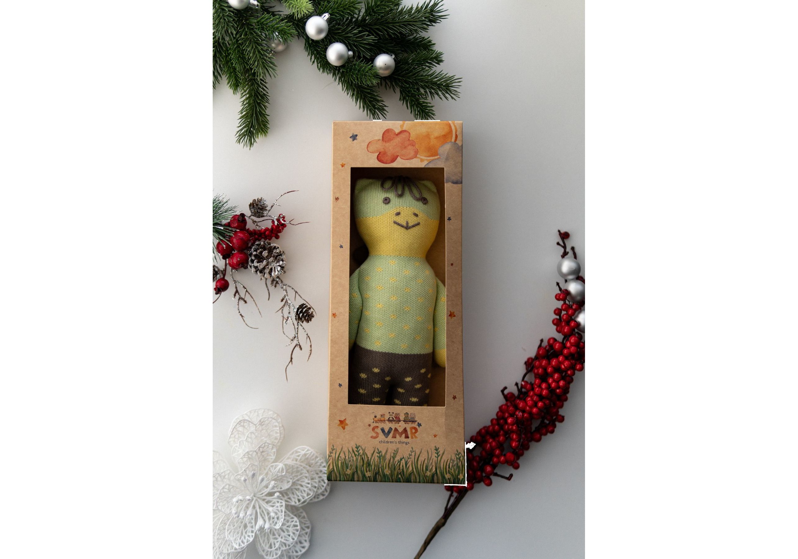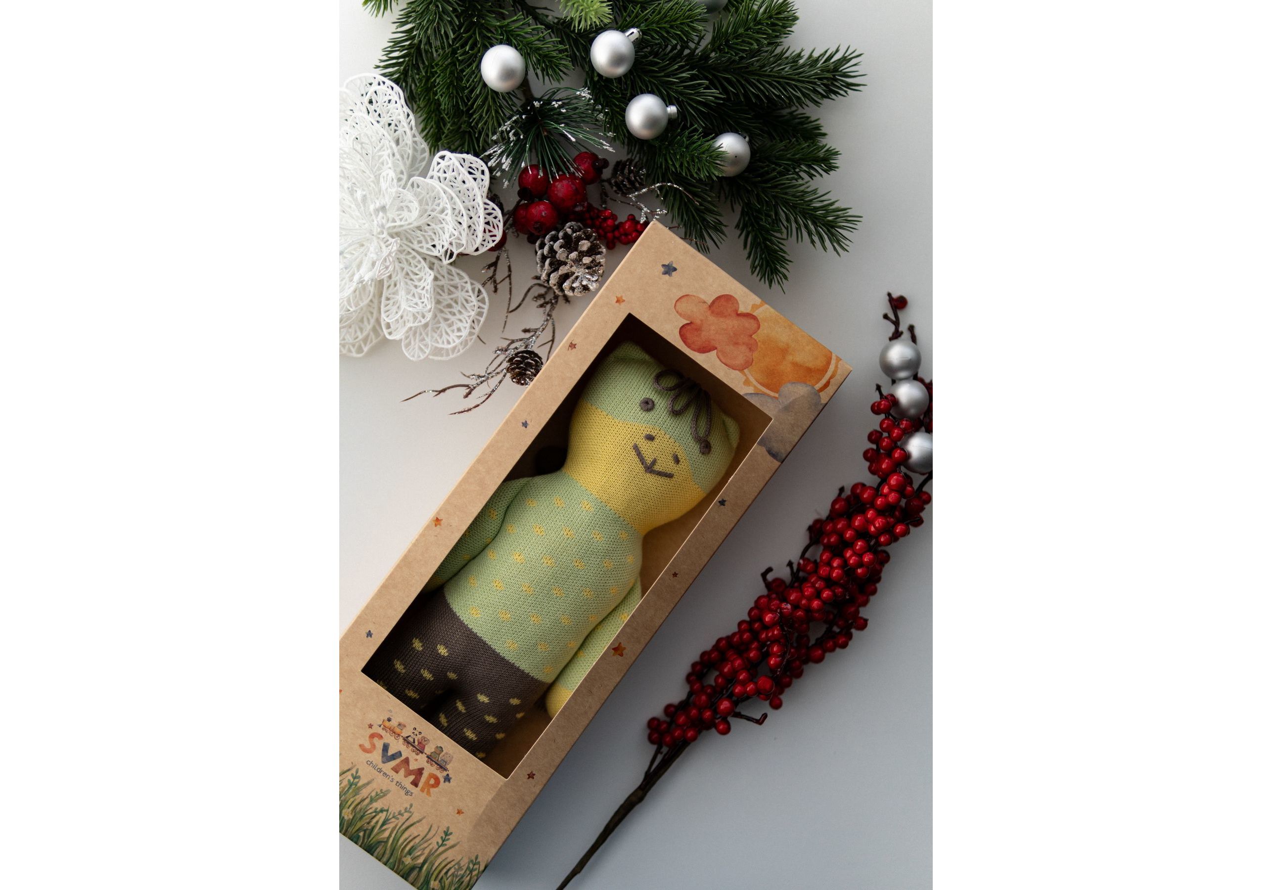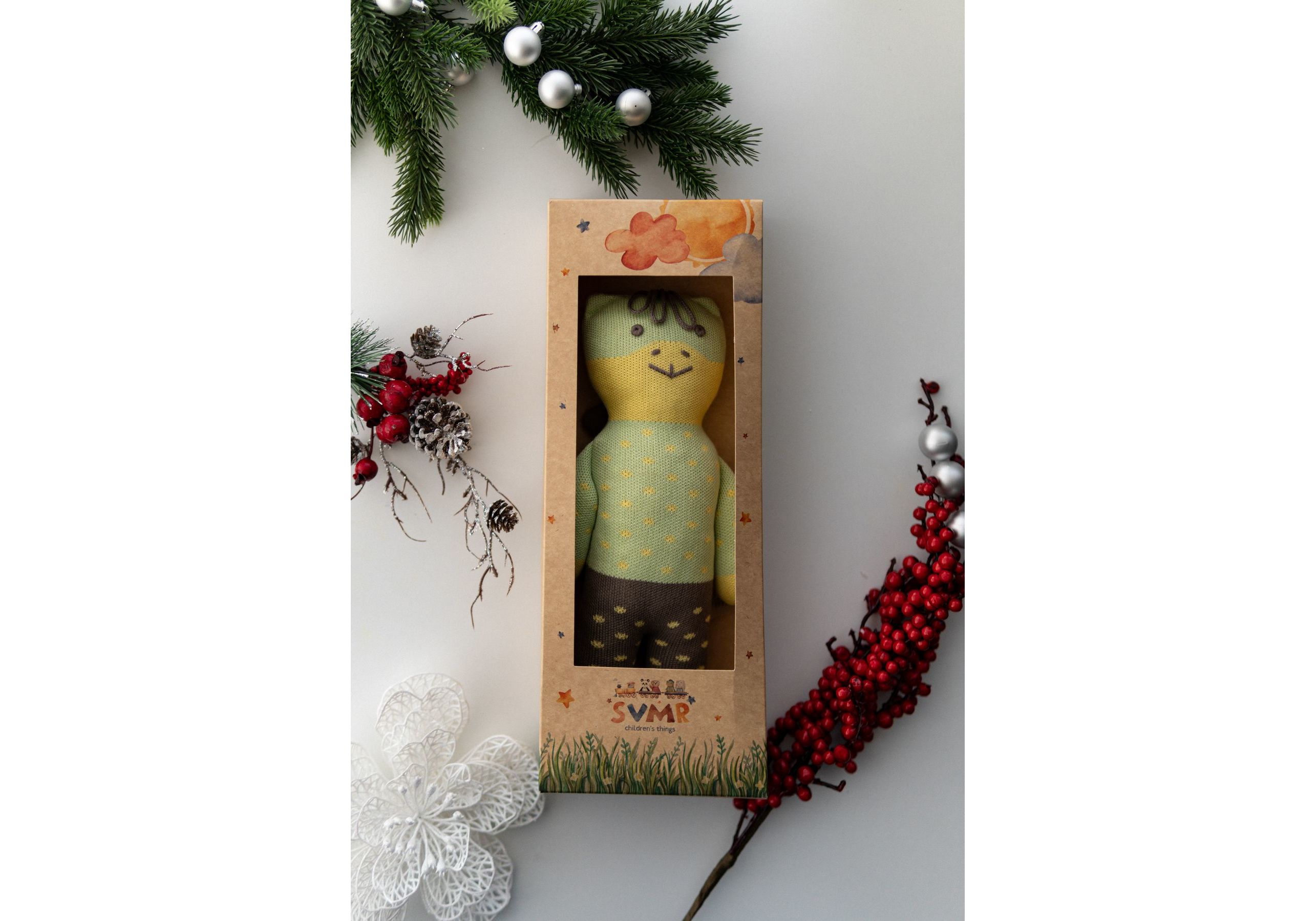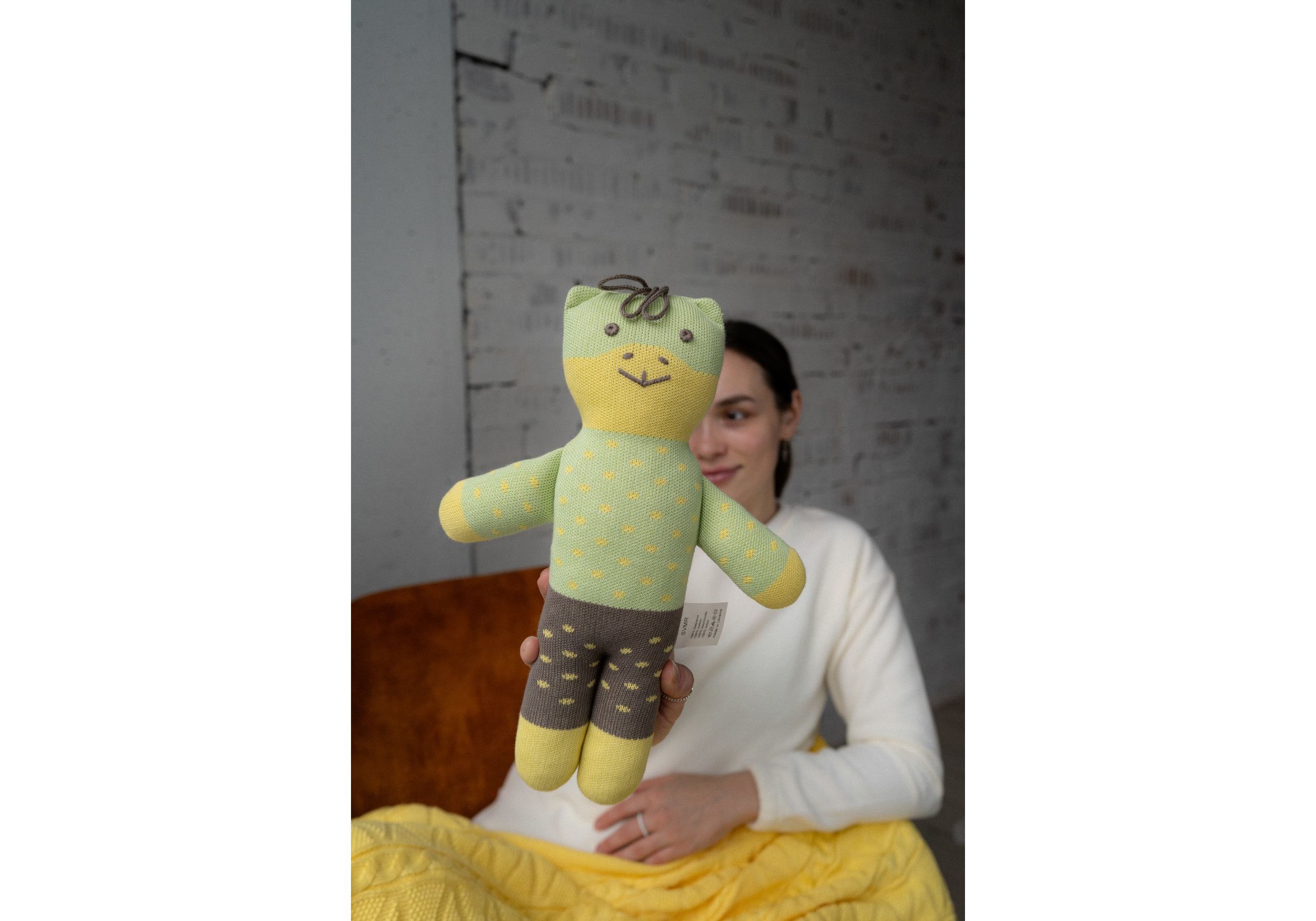 Новый украинский бренд SVMR – милые эко- игрушки, а самое главное абсолютно безопасные. Наша команда создала игрушки без отрывных и мельчайших деталей и без использования пластика. Они заботливо связаны из 100% хлопка, гипоаллергенны, а глазки и носики с любовью вышиты руками наших мастериц. Погрузитесь в мир, где каждый стежок рассказывает уникальную историю, а каждая деталь излучает тепло и очарование. Наши игрушки ручной работы – больше, чем просто игрушкa; это ворота в царство воображения и бесконечных объятий. У наших уникальных игрушек есть имена, характеры и свои истории, приключения. С ними охотно забавляются не только дети, но и взрослые. Они отлично смотрятся в детской комнате и на диване в гостиной. SVMR – это уникальная украинская авторская игрушка, которая дарит не только любовь и радость Вам и Вашему ребенку, но и спокойствие и уют в Вашем доме.