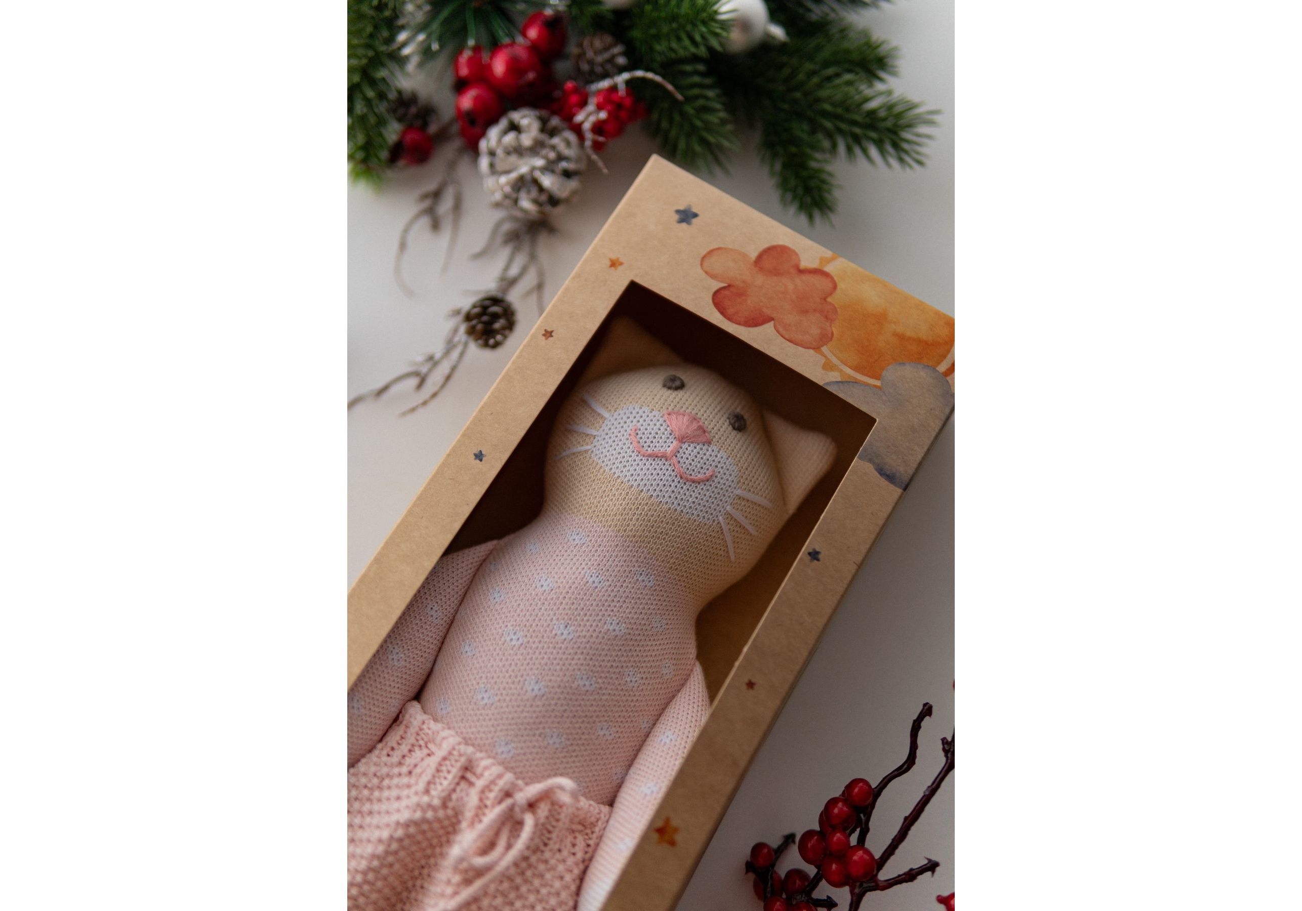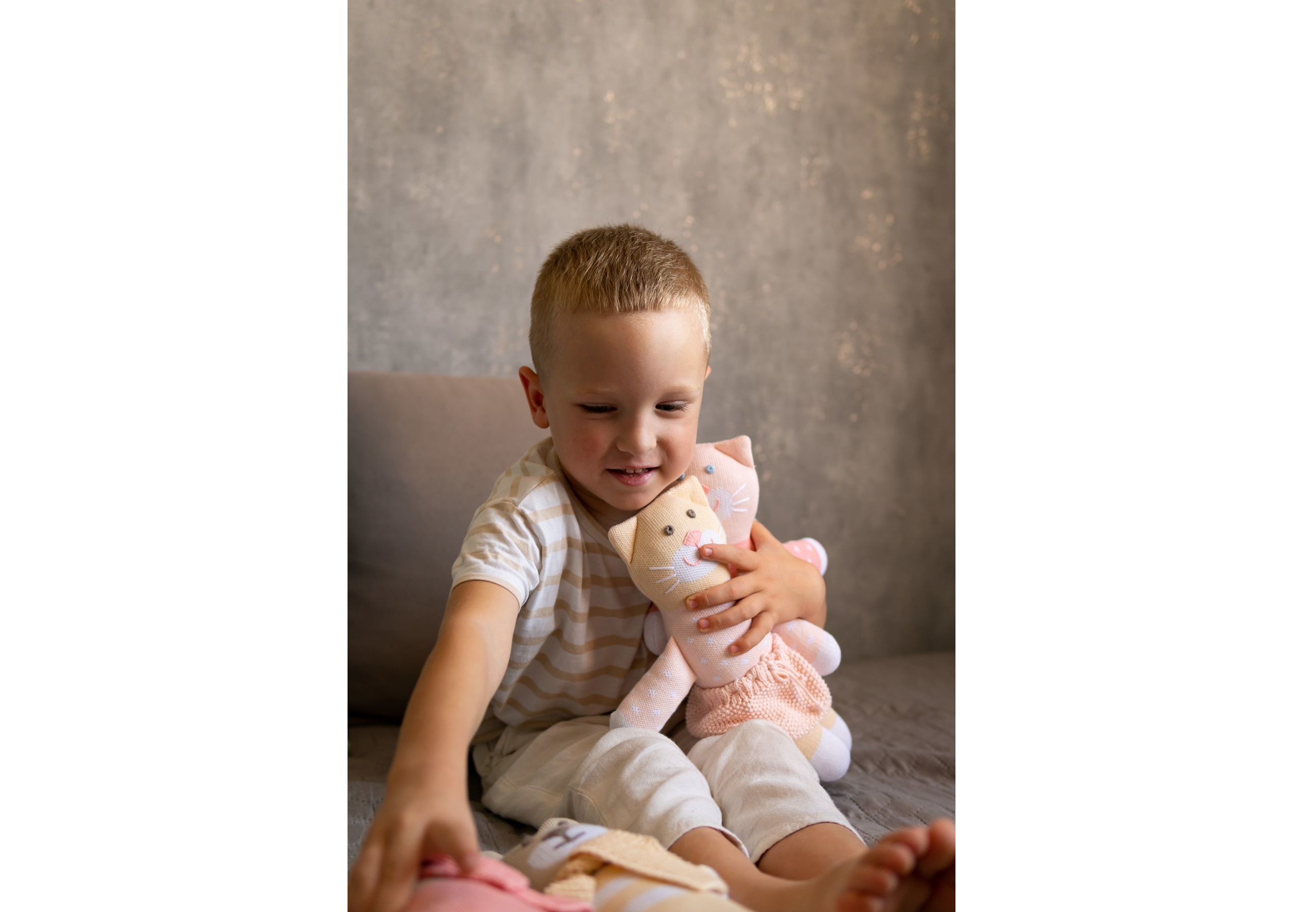 М'яка еко- іграшка ручної роботи Котик Тіна бежевий 32 см SVMR