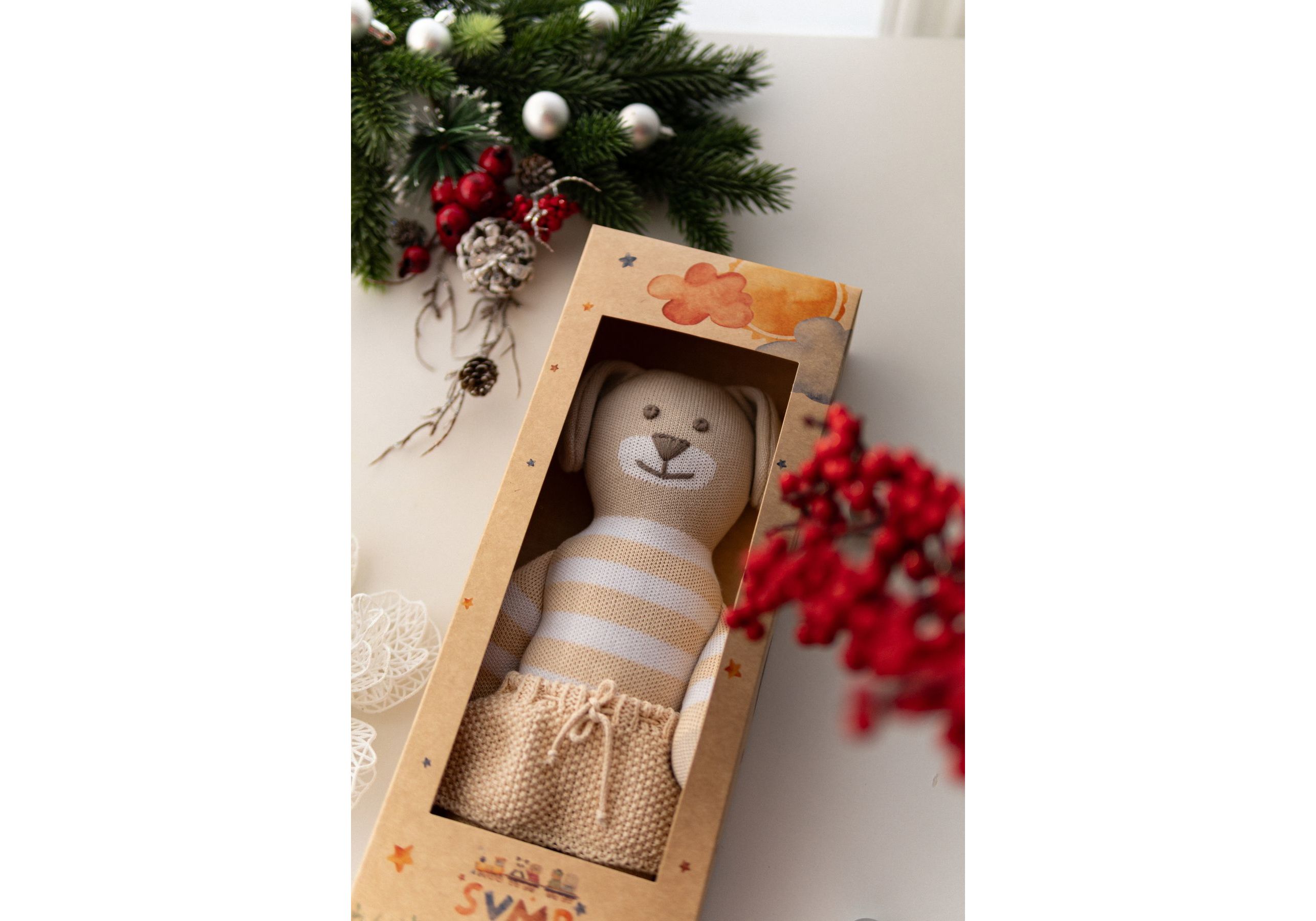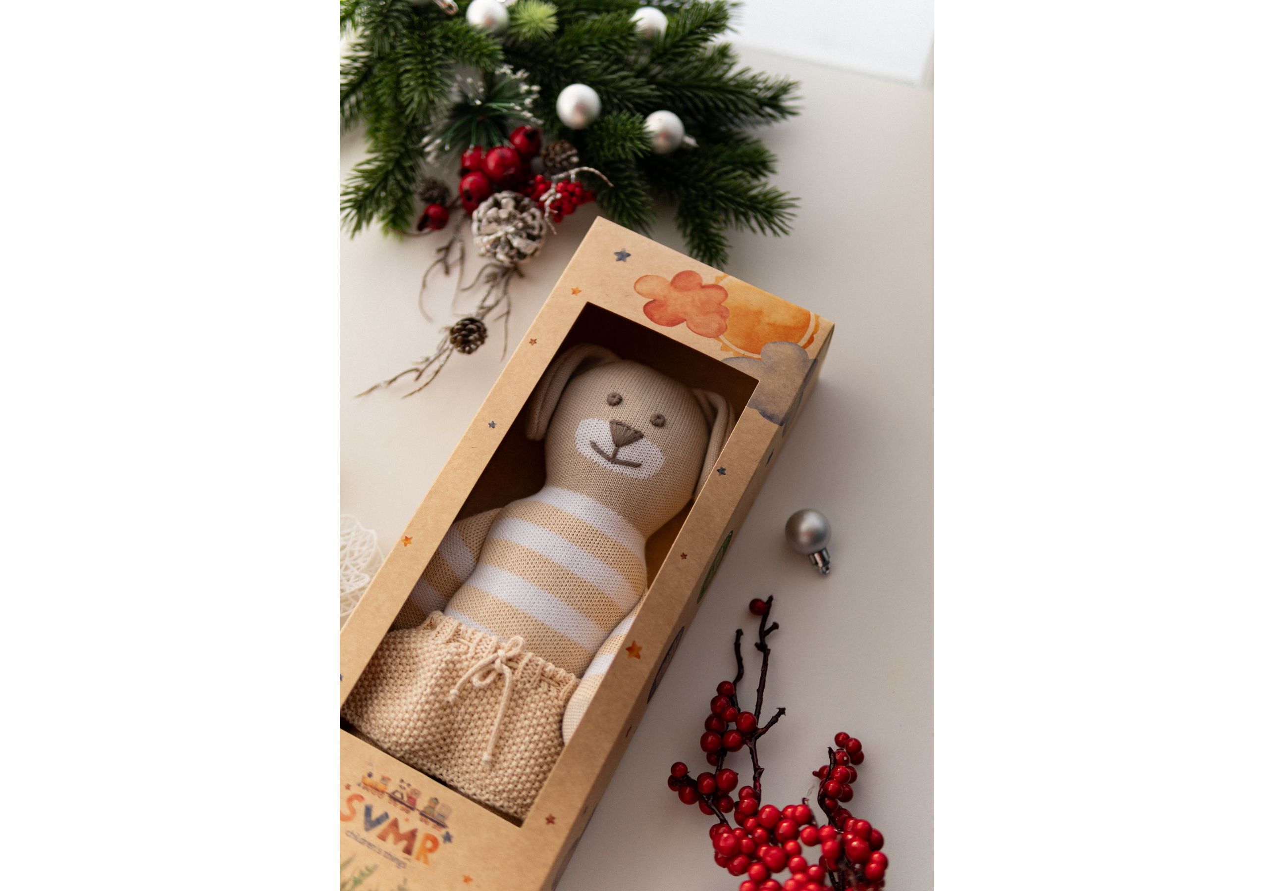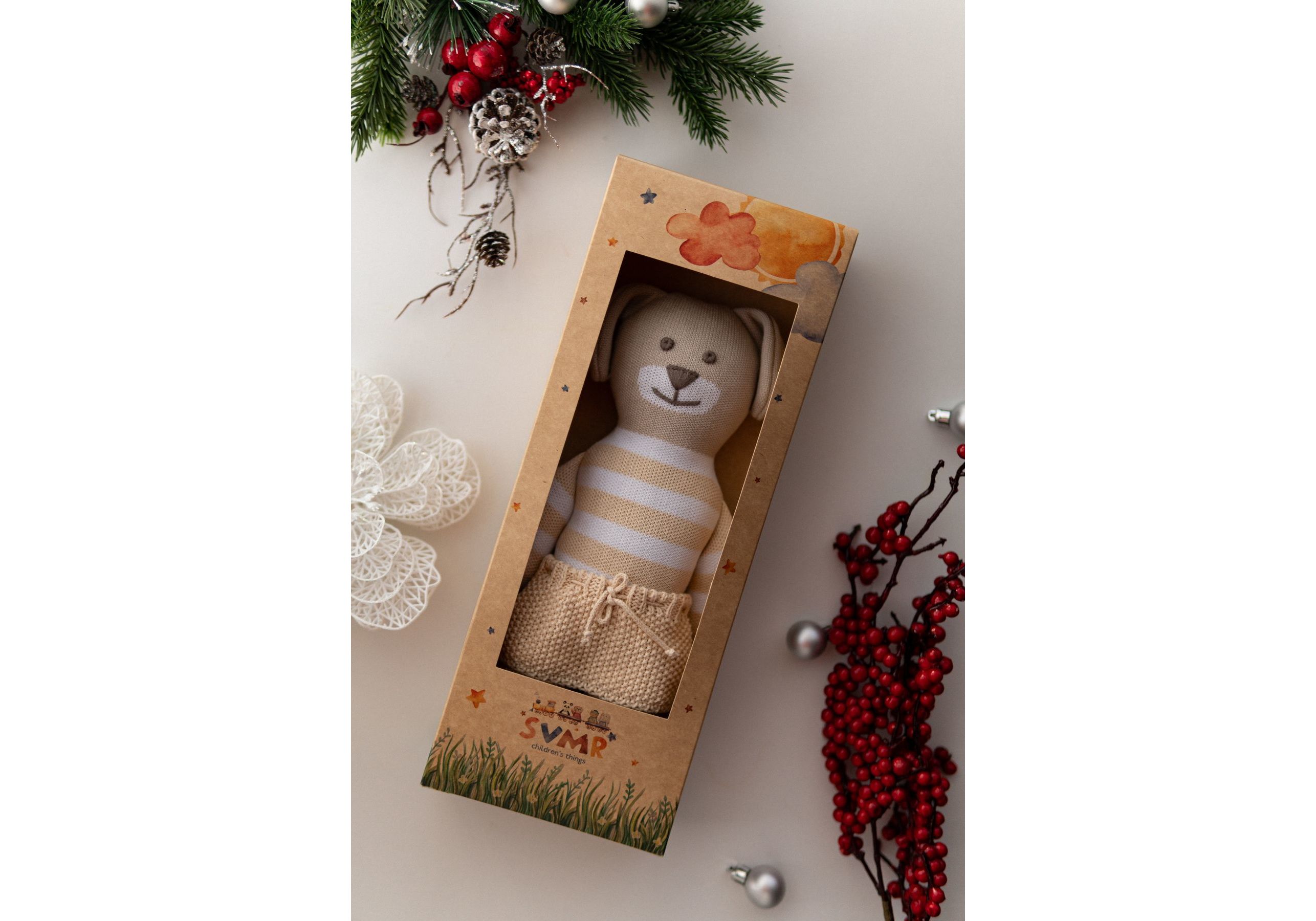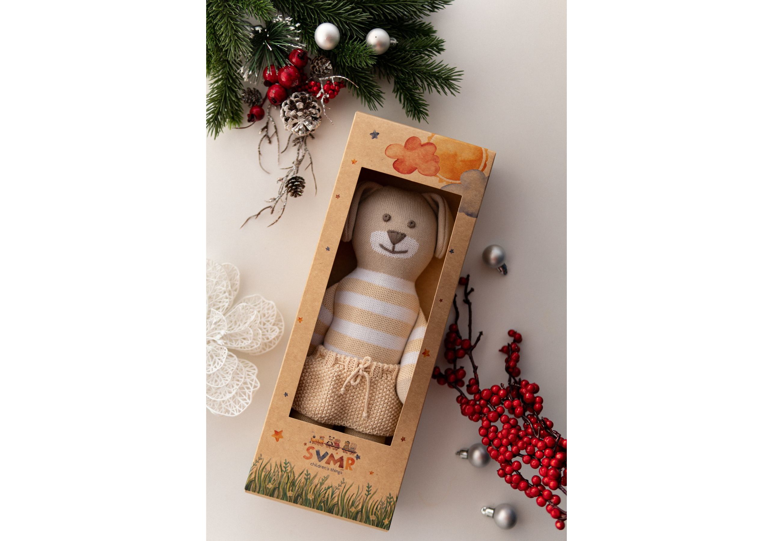 Новый украинский бренд SVMR – милые эко- игрушки, а самое главное абсолютно безопасные. Наша команда создала игрушки без отрывных и мельчайших деталей и без использования пластика. Они заботливо связаны из 100% хлопка, гипоаллергенны, а глазки и носики с любовью вышиты руками наших мастериц. Погрузитесь в мир, где каждый стежок рассказывает уникальную историю, а каждая деталь излучает тепло и очарование. Наши игрушки ручной работы – больше, чем просто игрушкa; это ворота в царство воображения и бесконечных объятий. У наших уникальных игрушек есть имена, характеры и свои истории, приключения. С ними охотно забавляются не только дети, но и взрослые. Они отлично смотрятся в детской комнате и на диване в гостиной. SVMR – это уникальная украинская авторская игрушка, которая дарит не только любовь и радость Вам и Вашему ребенку, но и спокойствие и уют в Вашем доме.
