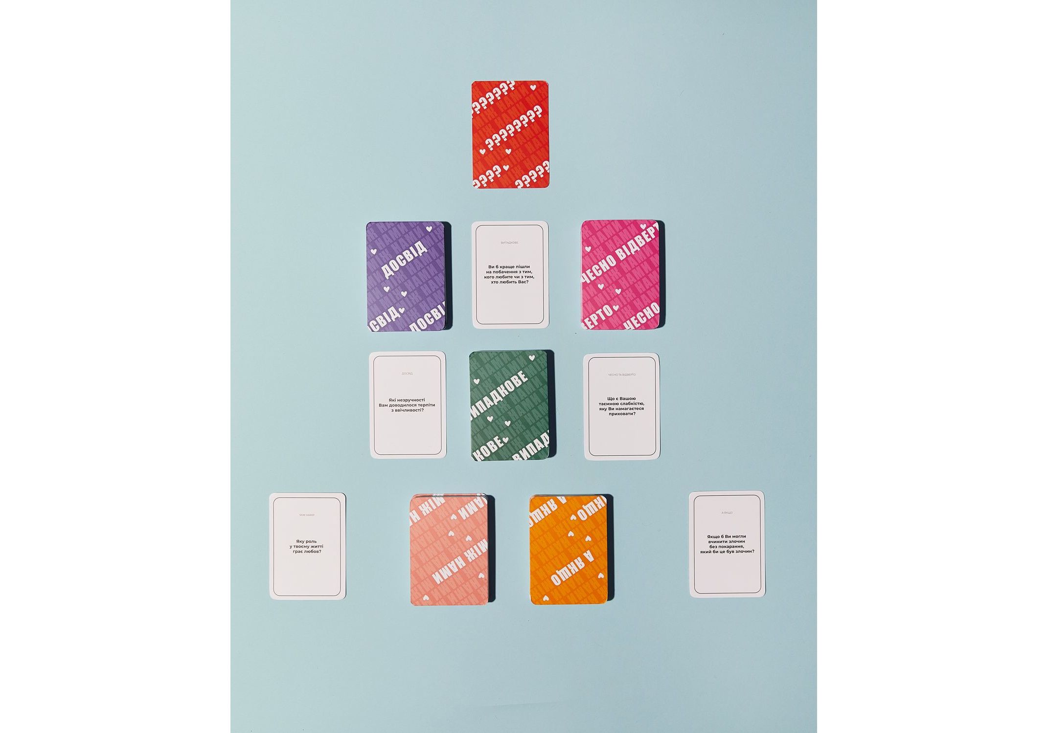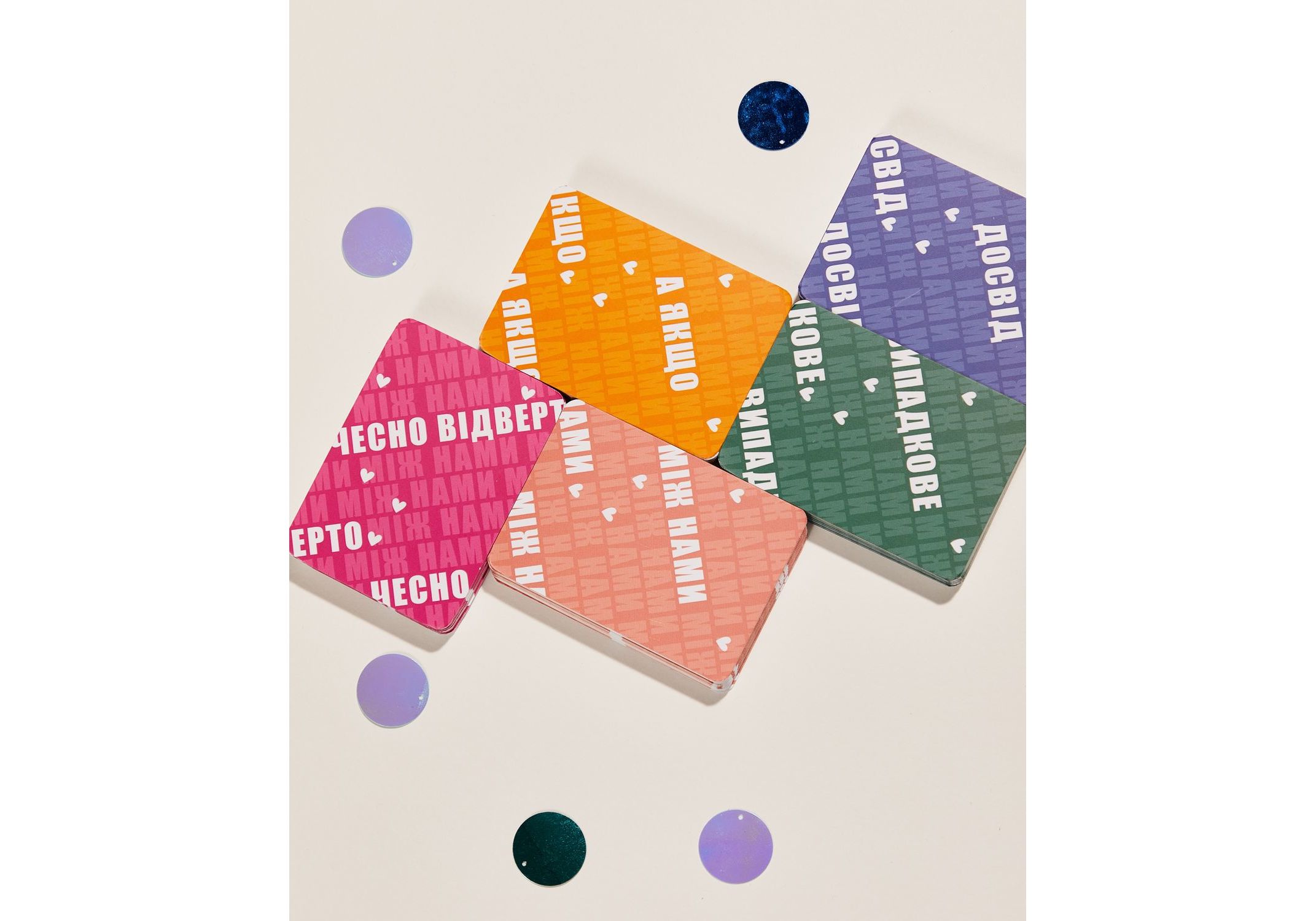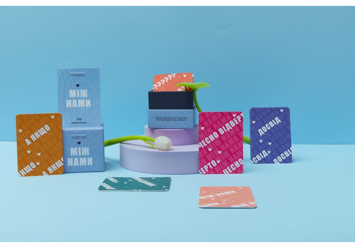 "ПОДЕЛИТЕСЬ С БЛИЗКИМИ СВОИМИ МЕЧТАМИ, ПЛАНАМИ И СТРАХАМИ Настольная игра, которая поможет вам провести вечер по-особенному и найти общий язык со своими друзьями или новыми знакомыми. Игра содержит универсальные вопросы, которые позволяют вам узнать больше о ценностях, страхах и переживаниях других людей. Она может быть полезной также для того, чтобы разобраться со своими переживаниями и открыться для новых идей и перспектив. ВЫВЕДИТЕ ОТНОШЕНИЯ С БЛИЗКИМИ НА НОВЫЙ УРОВЕНЬ Вот три причины, почему игра "Между Нами" может быть полезной для Вас. 01. Улучшение общения Отличный способ провести вечер по-особенному. Правильные вопросы откроют собеседников с другой стороны. Вы научитесь слышать и понимать людей лучше. Больше живого общения - меньше времени в экране. 02. Укрепление взаимопонимания Бывает такое, что встретили человека и не знаете о чем говорить? Гарантируем, после игры в "Между Нами" у Вас всегда найдется "несколько" вопросов, чтобы начать содержательный разговор с кем-либо 03. Здоровые отношения Мы собрали в игре универсальные вопросы, которые можно использовать в жизни. Определить свои ценности и разобраться со страхами и переживаниями"