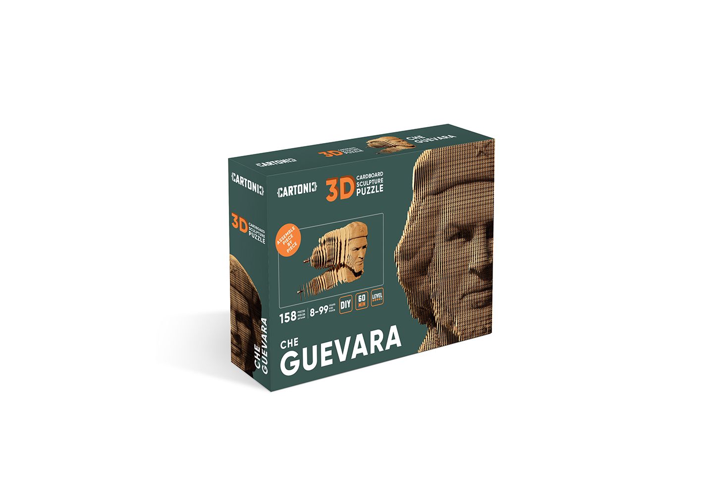 ЩО ТАКЕ CARTONIC? ЗD пазли Cartonic — це простий та екологічний спосіб створити власний взірець картонного мистецтва. На тебе чекає готовий набір для покрокової збірки відомої постаті чи об’єкту своїми руками. Це буде легко як 1-2-3. Під час створення ти буквально зануришся всередину культової фігури. А коли закінчиш – то зможеш зробити свій артоб'єкт ще унікальнішим та розфарбувати його, та насолоджуватись ним як декором вдома. Але маємо попередити: щойно ти збереш цей пазл, тобі може знадобитись новий, тому що в цьому процесі важко зупинитись. ЧОМУ ЦЕ ІКОНА? Партизан та революціонер, який носив найвідоміший берет у світі. Че вірив у соціалізм та став одним із лідерів Кубинської революції 1959 року. А історики досі сперечаються, чи він більше романтичний герой, чи «м?ясник з Ла-Кабаньї». Він таки «досяг багато, але втратив усе» — спробуй пробратися в його голову.
