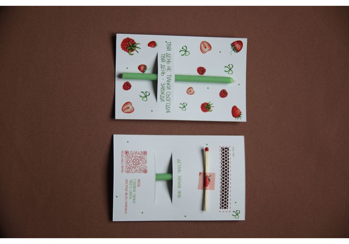 Іноді для теплих слів не потрібно багато. Достатньо маленького жесту, який створить атмосферу. Ця листівка — це той самий варіант. Усередині ви знайдете натуральну свічку з бджолиного воску, сірник та чіркало, щоб одразу запалити мрію. Запаліть свічку, загадайте бажання або просто насолодіться моментом. Ідеально підходить як доповнення до подарунка або як самостійний знак уваги для близької людини.