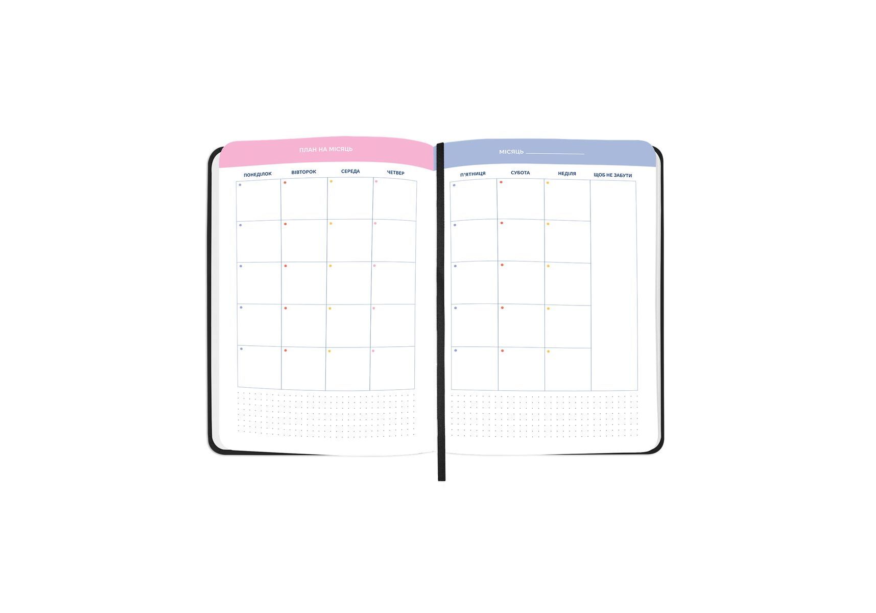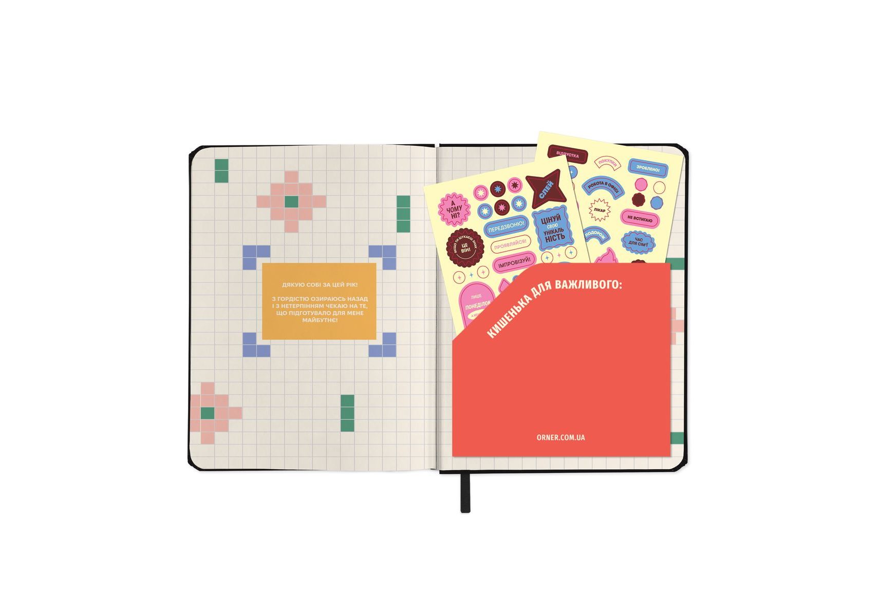 Яскраві, практичні, зручні, функціональні — нові недатовані планери від ORNER вже в повній готовності допомагати організовувати ваші плани: грандіозно-великі і кавово-маленькі! Ось чим наповнені новенькі планери: 12 яскравими сторінками-розподілювачами з мотивуючими фразами додатковими розворотами, завдяки яким планування відчувається як в атмосферному кіно (планери мають колесо балансу, план цілей на рік, дошку візуалізації бажань та сторінки для запису фільмів, книг, подкастів та серіалів) сторінками для саморефлексії (планер містить мотивуючий лист на початку, лист вдячності — в кінці, а кожен місяць містить сторінки з запитаннями до себе) сторінками для планування у оновленому горизонтальному вигляді (планер недатований, тож почати можна хоч завтра!) 2 аркушами фанових стікерів у комплекті, завдяки яким навіть нудні зум-коли планувати приємніше