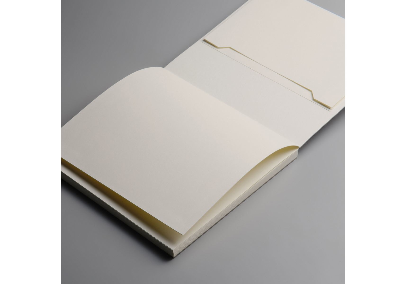 Це – наший фірмовий квадратний скетчбук з потовщеним папером у чорному оформленні. Часом називаємо його «малювальник». В ньому можна писати, а можна не писати. Можна замалювати кожну сторінку, бо там папір товстий і витримає всю гуаш на світі. В цілому має 120 таких сторінок, а також тверду обкладинку для всього витримування, а ще резинку для тримання, і вбудований конверт для зберігання, і розкривається він на 180 градусів для намальовування та записування. Який він: - 210 мм х 210 мм; - 120 сторінок шведського паперу з молочним відтінком; - Міцнючий папір – 170г/м?; - Обкладинка товщиною 1,8 мм - Вікдритий корінець, що дає змогу відкрити скетчбук легко на 180 градусів; - Гумка та конвертик позаду для дрібничок та листівок.