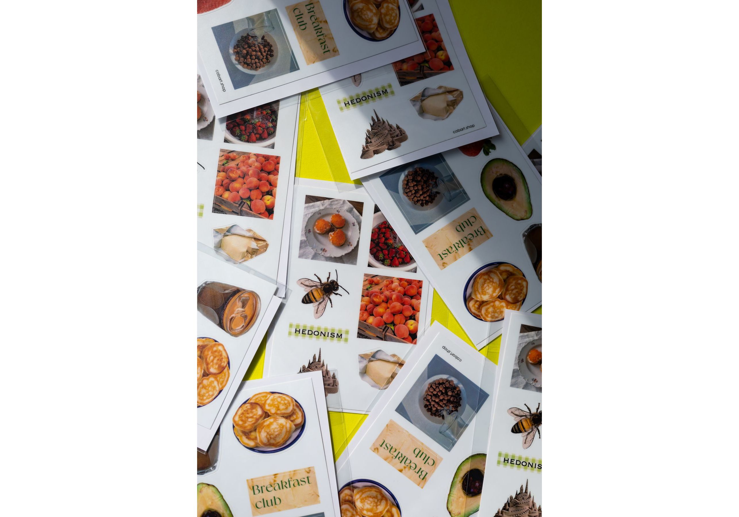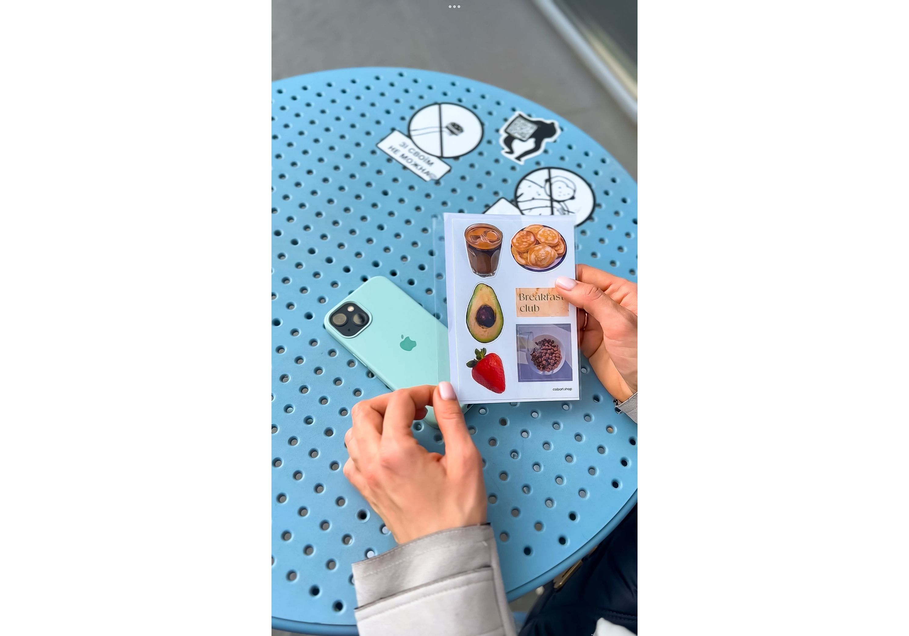 Набор стикеров Breakfast – это наклейки на виниловой основе, размером а6. Они устойчивы к износу и не повреждают гаджеты.