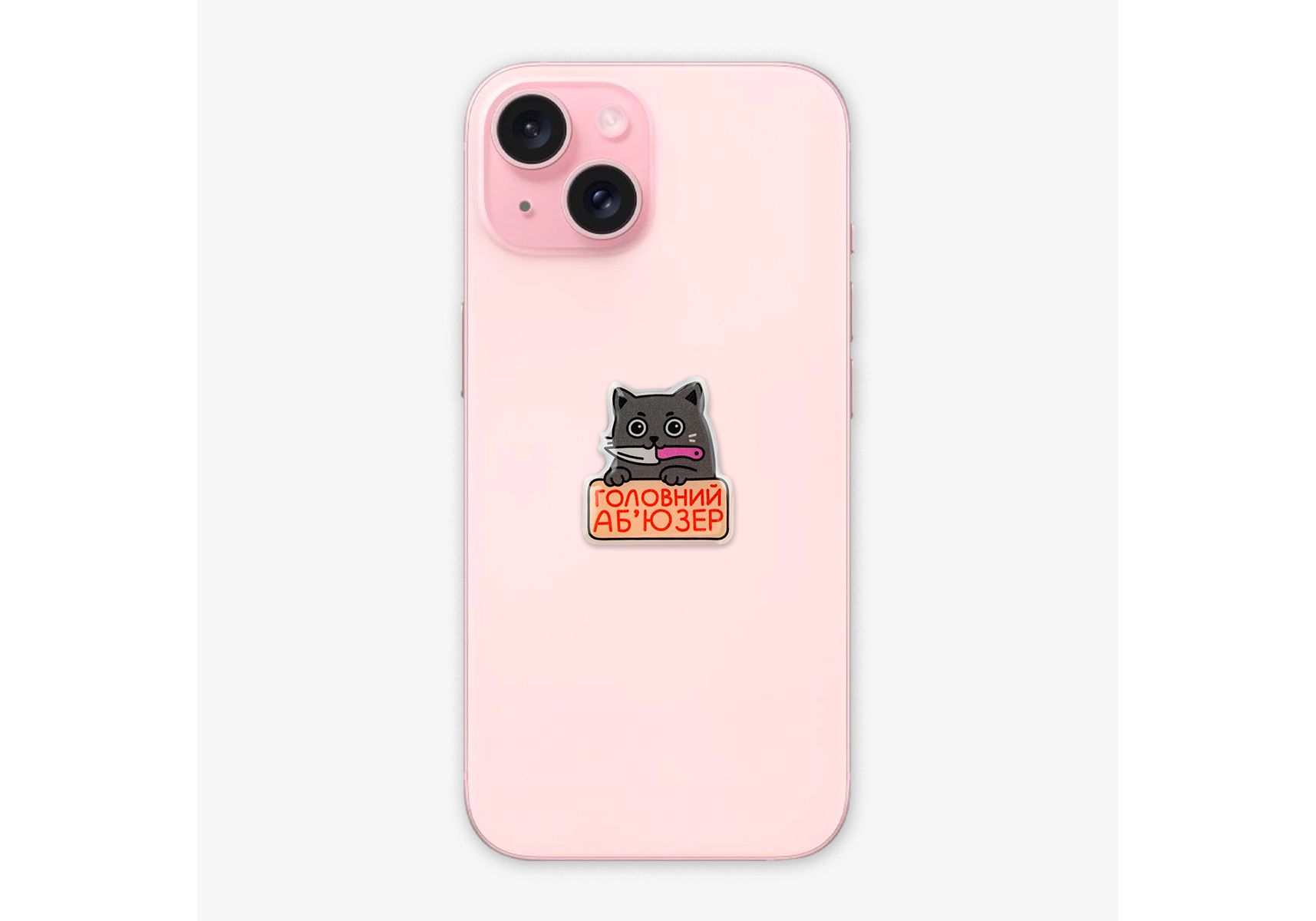 Об’ємний стікер «Головний аб’юзер» — чорний гумор і котик з ножем у головній ролі. Має рельєфну форму, зносостійкий і міцно тримається на ноутбуках, мобільних телефонах, дзеркалах, блокнотах та інших гладких поверхнях.