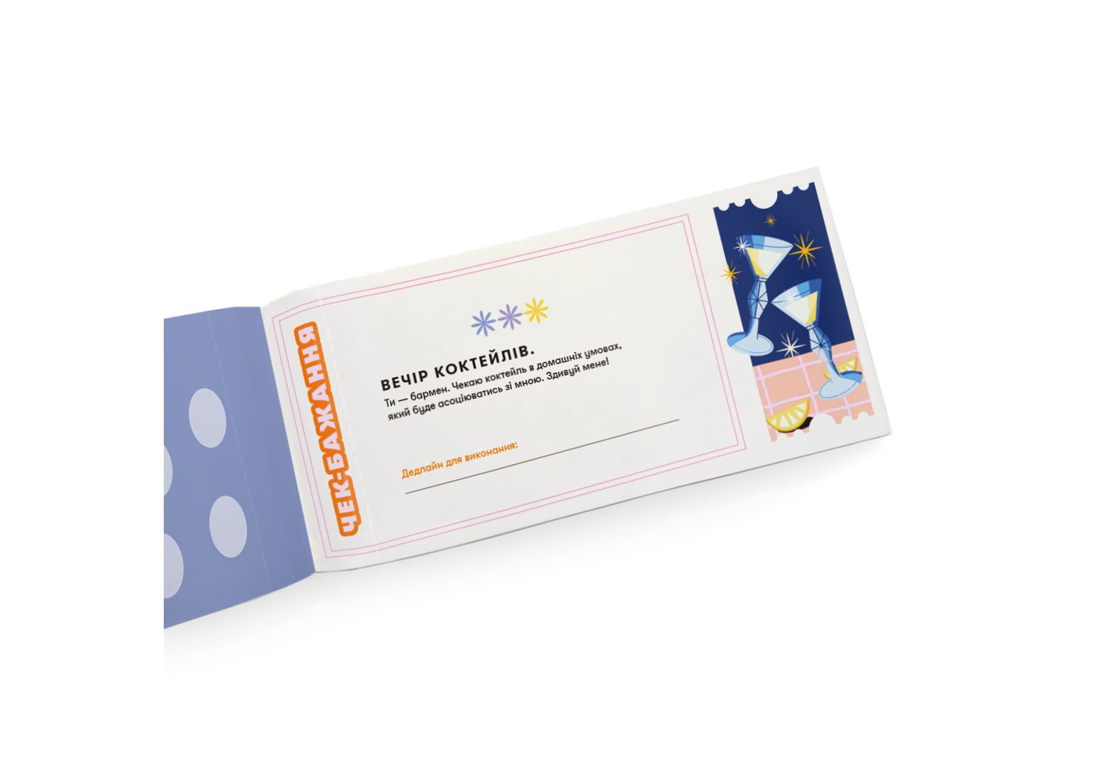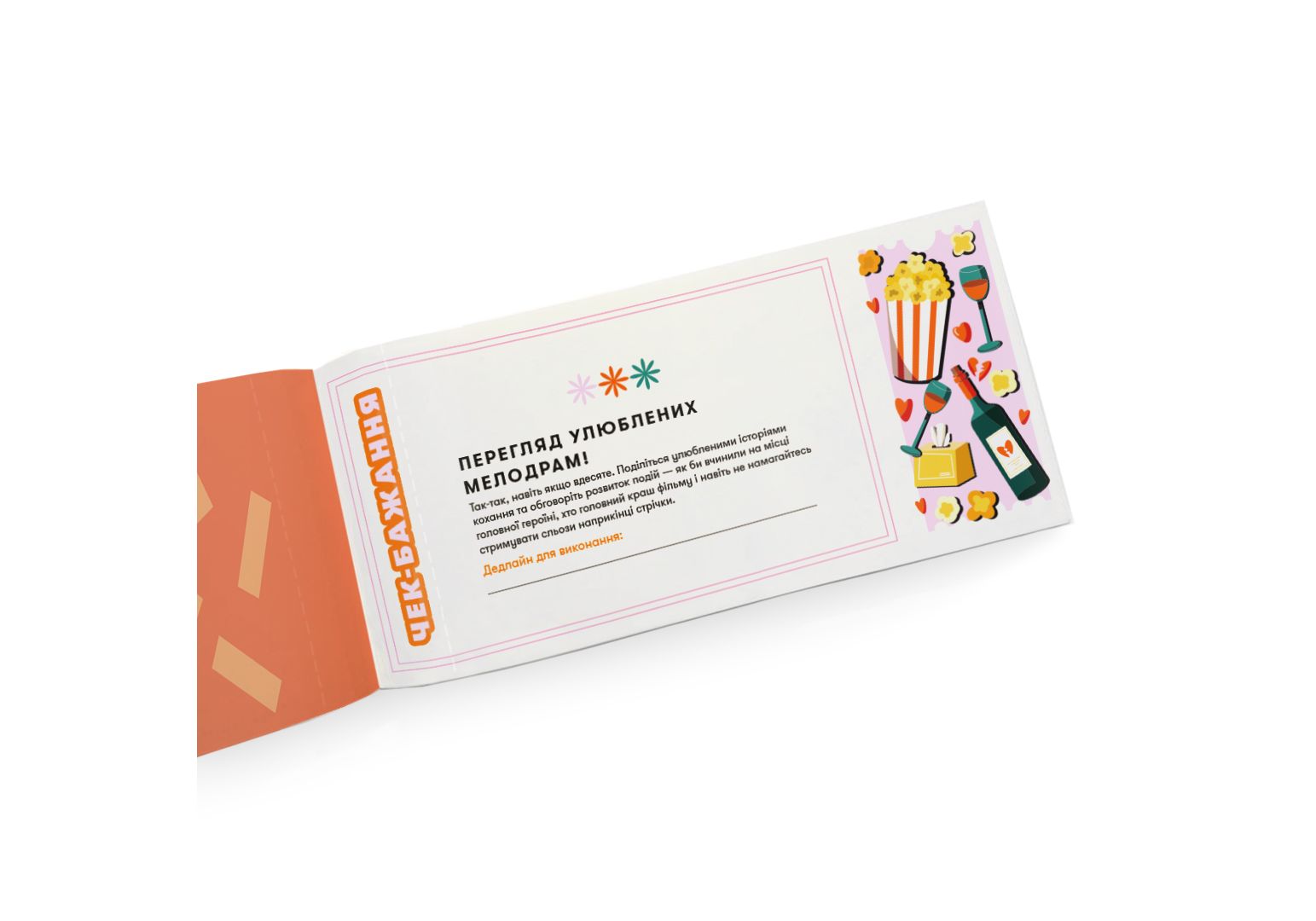 Чековая книга желаний «Для подруг» — 32 чека на задачи, которые помогут вам с лучшей подружкой прожить минимум 32 идеальных girl's moments! 32! Именно столько крутых идей для ваших девичьих посиделок мы придумали. Там и посещение совместного мастер-класса, и вечер мелодрам, а также исполнение тренда с подарками по цвету. Многое, но мы не будем очень спойлерить ??