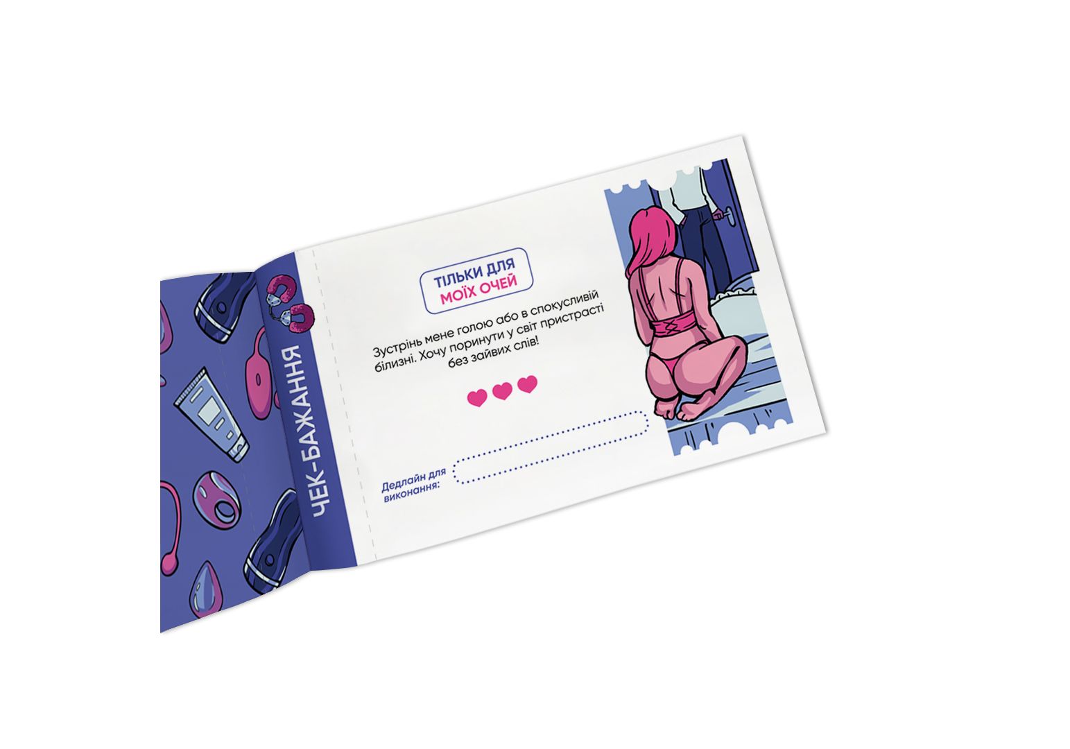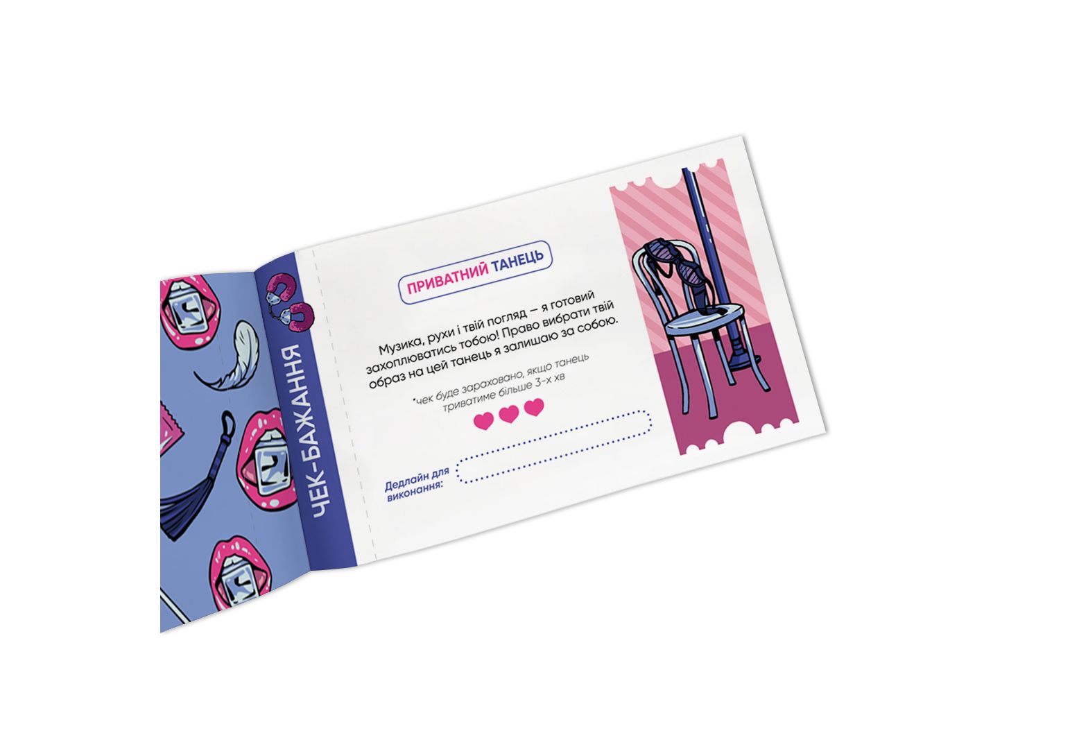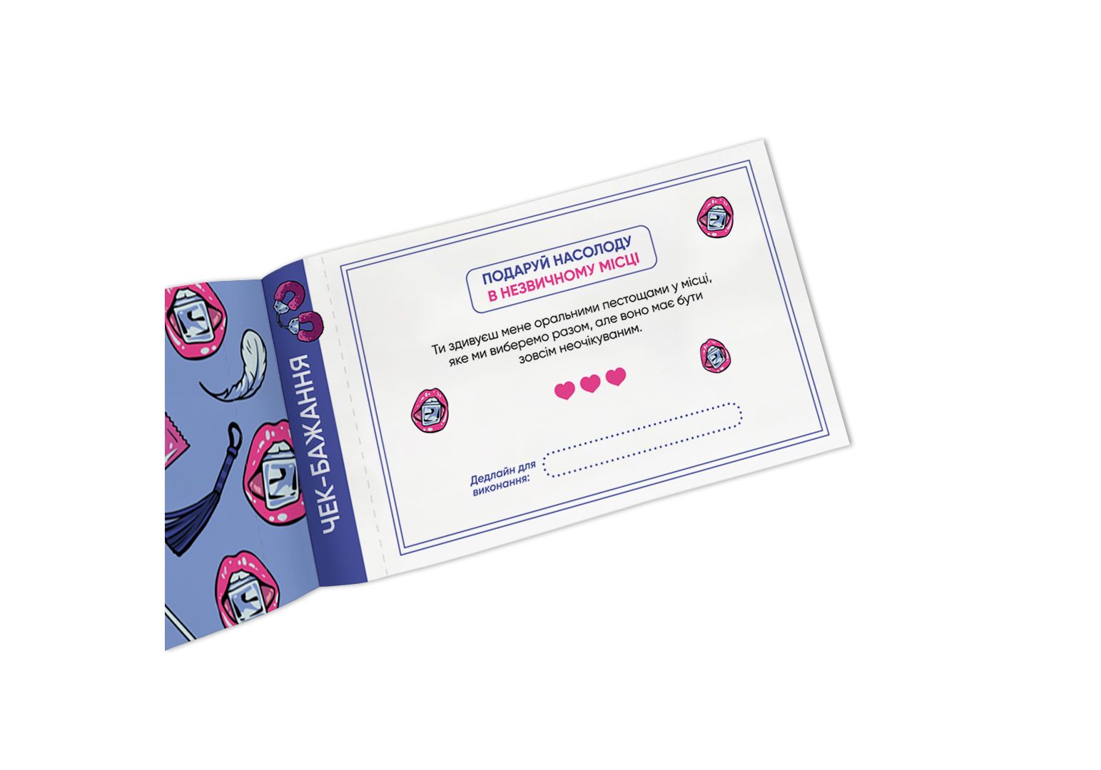 Чековая книга желаний для него Искушение" - 32 чека на сексуальные задачи, которые подарят вашей половинке настоящее наслаждение! От спонтанных любовных игр до билета на 5 схваток — эти чеки созданы, чтобы добавить в огонь вашей любви капельку горючего."