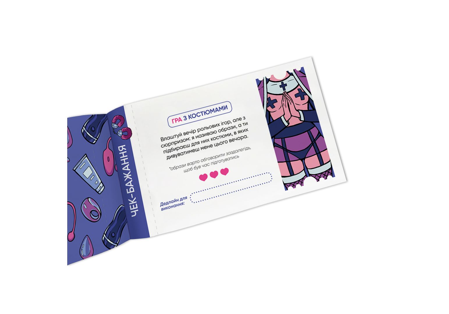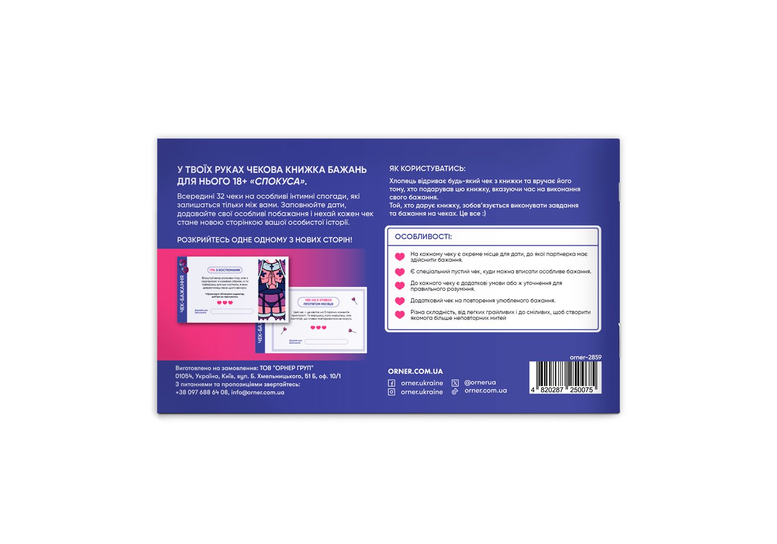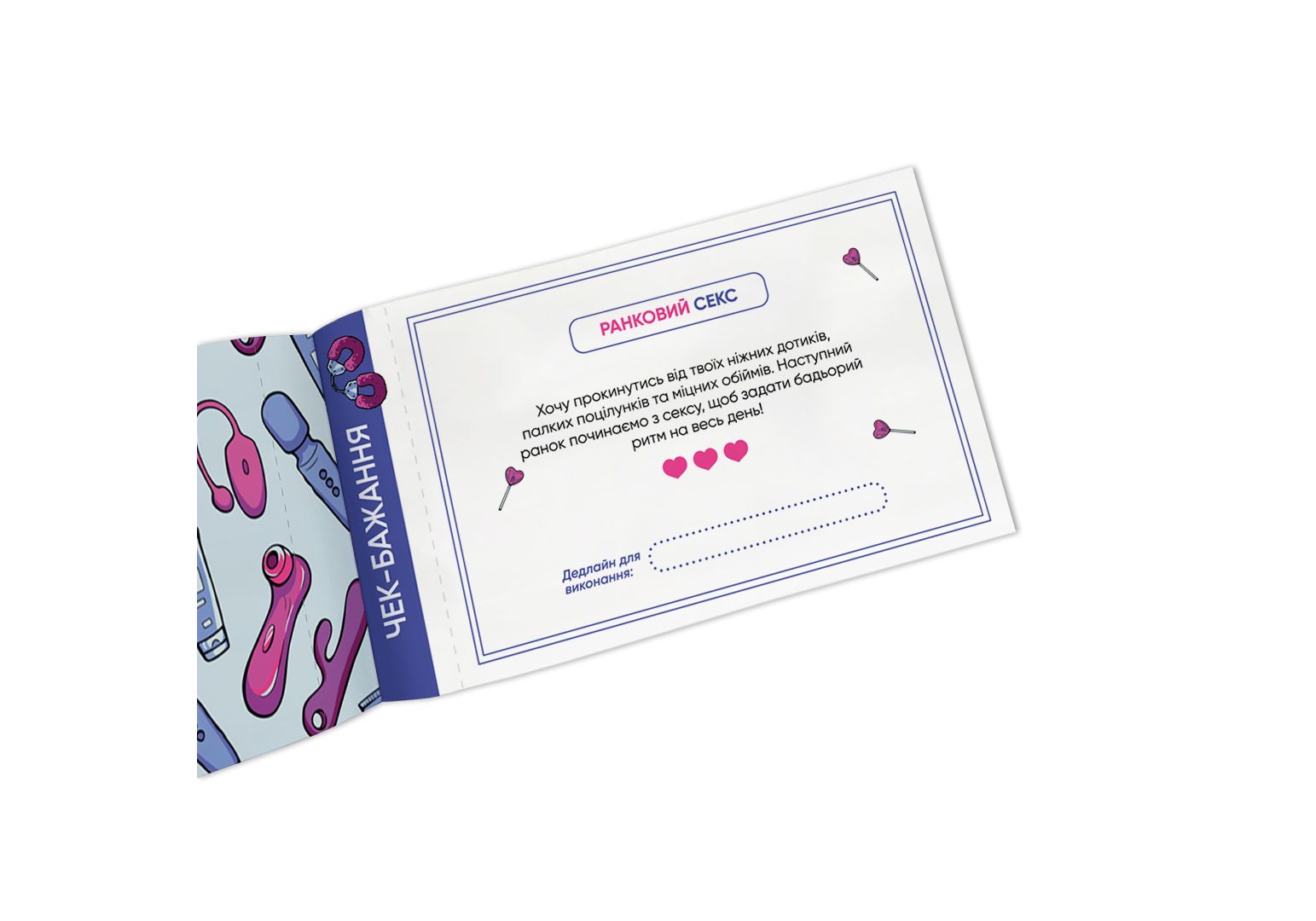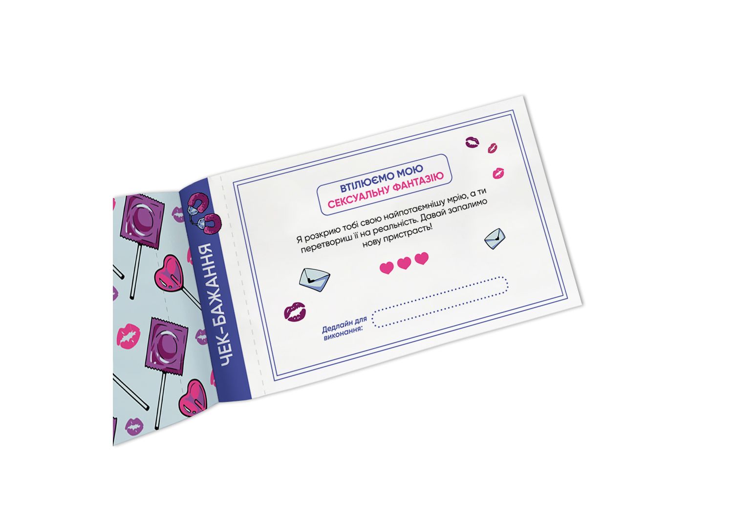Чековая книга желаний для него Искушение" - 32 чека на сексуальные задачи, которые подарят вашей половинке настоящее наслаждение! От спонтанных любовных игр до билета на 5 схваток — эти чеки созданы, чтобы добавить в огонь вашей любви капельку горючего."