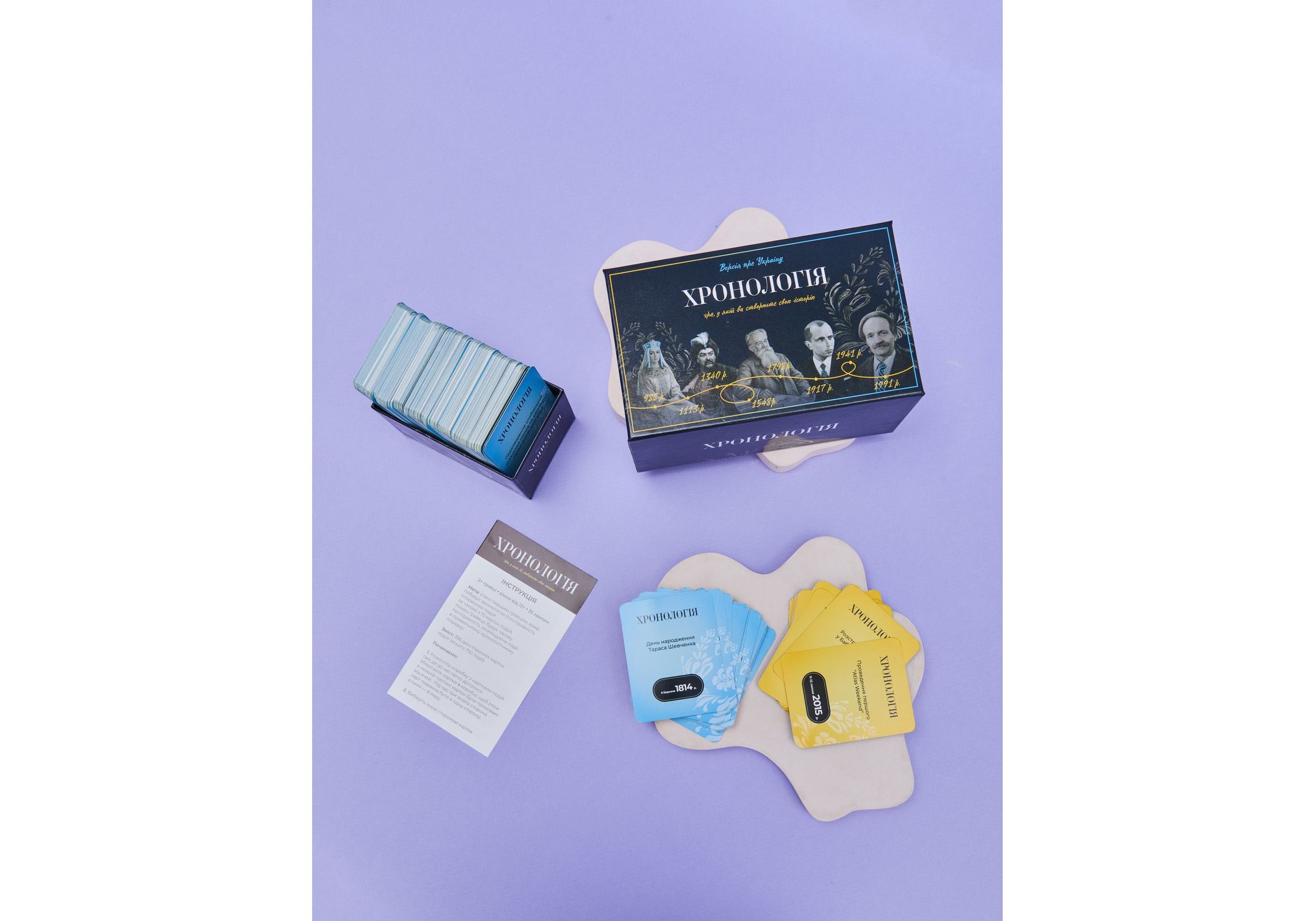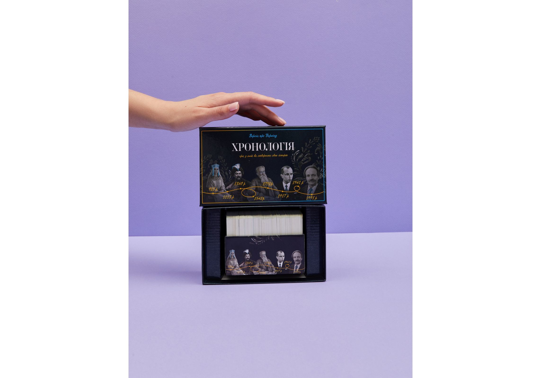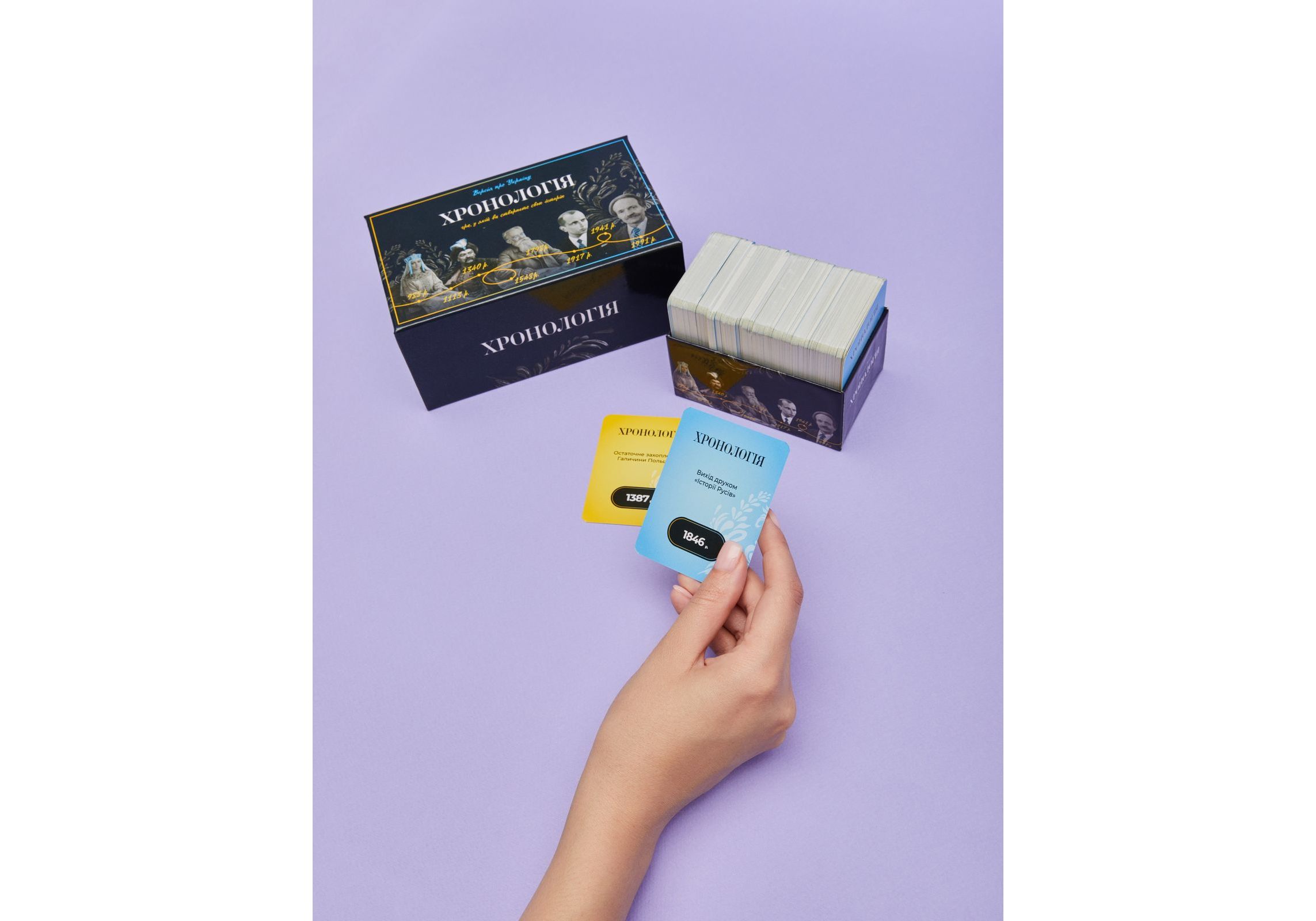 "ИГРАЙ И УЛУЧШАЙ СВОИ ЗНАНИЯ Игра поможет вам открыть для себя до сих пор неизвестные факты о нашей Родине и найти новые векторы для дискуссий. Благодаря глубокому анализу прошлого, игроки смогут лучше понять, что ждет Украину в будущем. Предложите своим близким провести увлекательный семейный вечер, где вы сможете вместе играть в эту игру и узнавать о важных исторических событиях, повлиявших на нашу страну. "Хронология" станет прекрасным дополнением к вашему вечеру и позволит получить новые знания и впечатления. УЛУЧШИТЕ УРОВЕНЬ ЗНАНИЙ ПО ИСТОРИИ УКРАИНЫ Вот три причины, почему игра "Хронология" может быть полезной для Вас 01. Узнайте о ключевых исторических датах и событиях Игра содержит 396 двусторонних карт на общую сумму 792 факта по истории Украины. Отгадайте, где и в какой временной последовательности происходит каждое историческое событие. Первый игрок, который построит хронологию из 10 событий, побеждает! 02. Откройте для себя до сих пор неизвестные факты о нашей Родине Хронология - это простой, увлекательный, обучающий и интересный способ узнать об истории нашего государства. Игра поможет найти новые векторы для дискуссий и лучше понять, что ждет Украину в будущем через глубокий анализ ее прошлого. 03. Совместите приятное с полезным Чем больше Вы играете, тем больше знаете. Проведите семейный вечер за живым общением и с пользой."